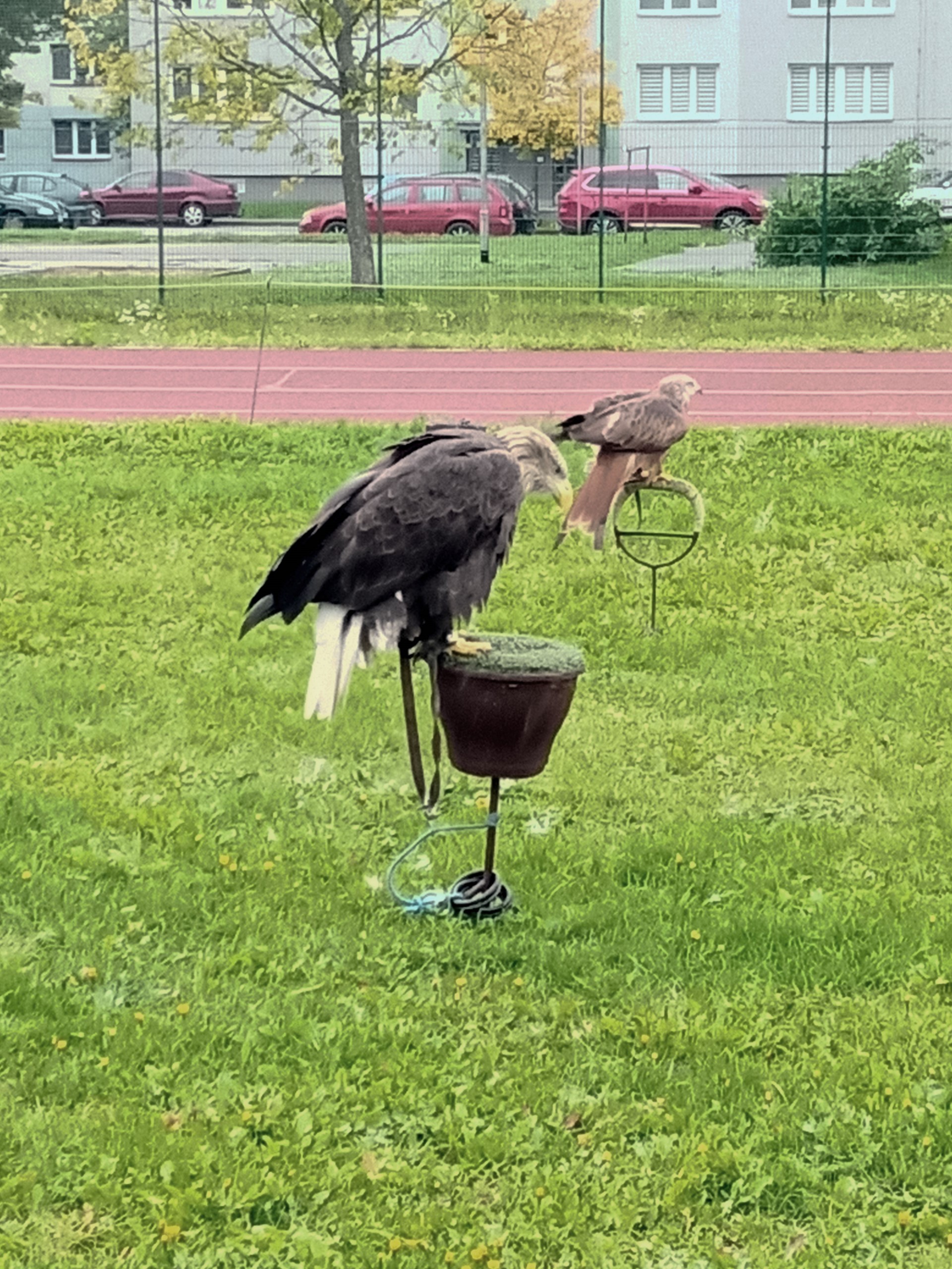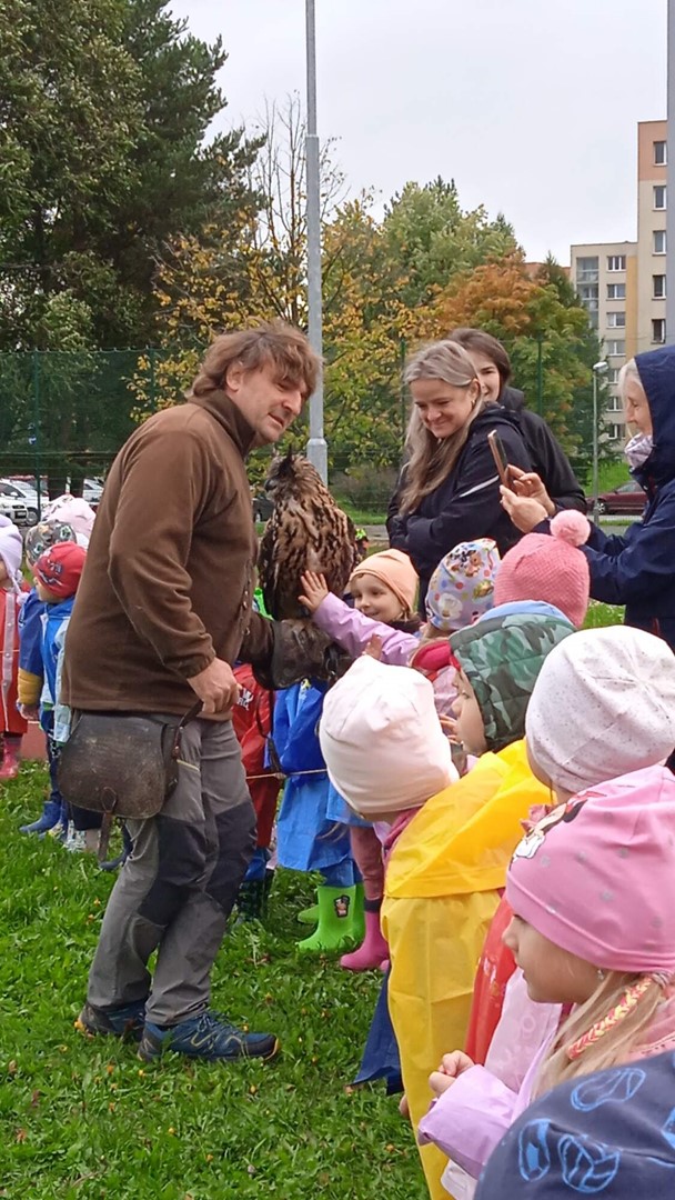 Nejpozornější žáci byli za správné odpovědi na otázky sokolníků odměněni fotkami a stali se zároveň dobrovolníky, kterým přistávali dravci na ruku. Všem se setkání s dravci líbilo a těší se na další návštěvu.