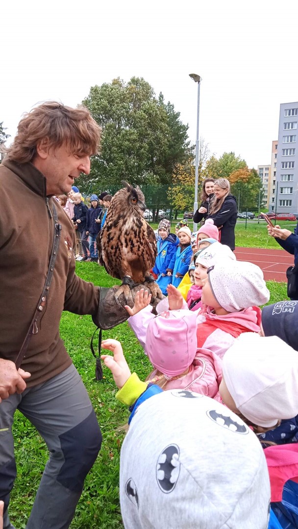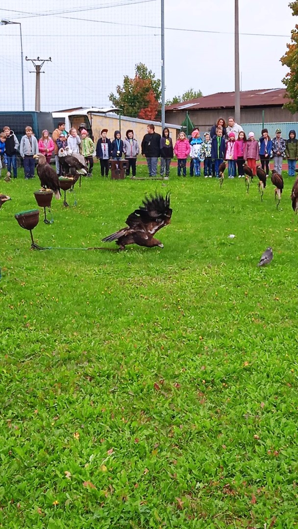 První říjnové pondělí nás navštívili dravci sokolníků ze společnosti Seiferos. Žáci obou stupňů základní školy a také děti z mateřské školy si mohli na venkovním hřišti prohlédnout dravce a sovy od těch nejmenších až po největší orly a supy.