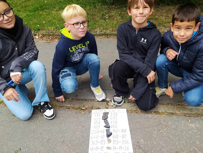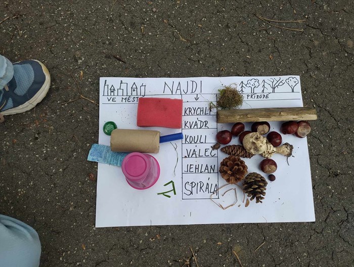 V hodinách matematiky a geometrie se naši žáci vydali na zajímavou cestu za objevováním geometrických tvarů a těles v okolí. Nezůstali pouze u školních lavic, ale vyrazili do města a přírody, kde hledali různé geometrické tvary a tělesa, jako jsou krychle, kvádry, spirály či obdélníky. Při procházkách porovnávali reálné příklady těchto tvarů a těles, a také hledali příklady osové souměrnosti.