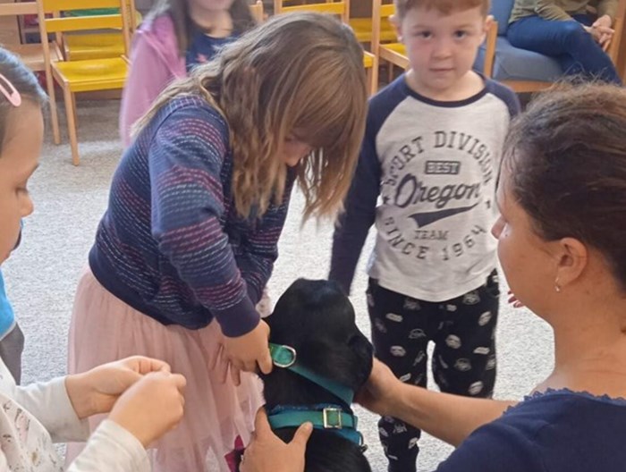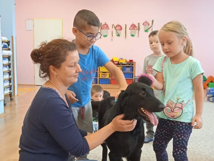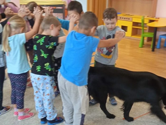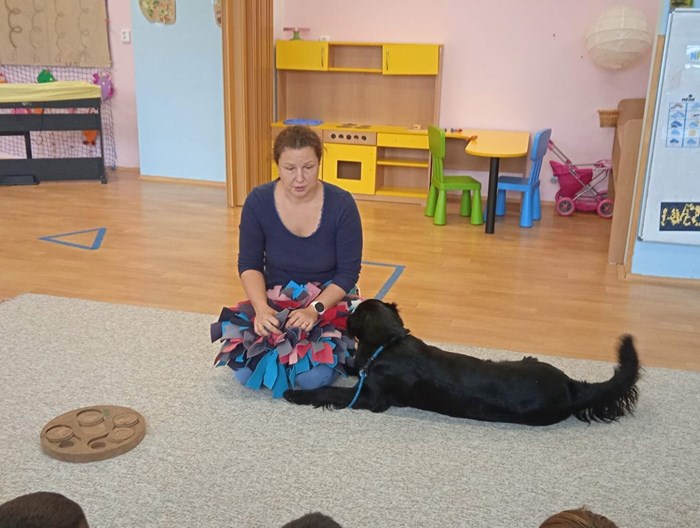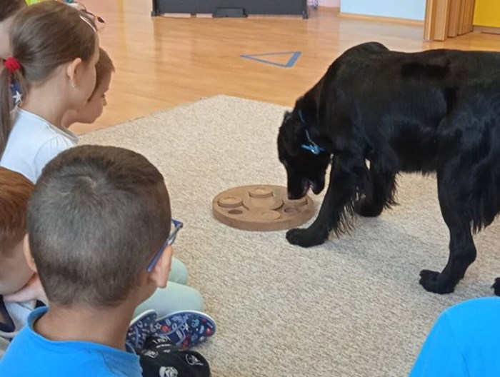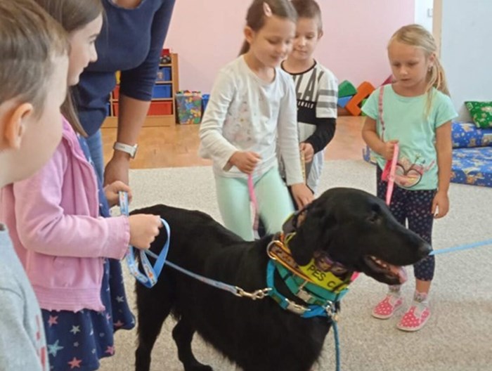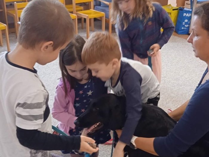 Hledala dobrůtky a míčky, které jsme jí schovávali, kartáčovali jsme její kožíšek. Dozvěděli jsme se také, že chodí pomáhat nemocným lidem.
