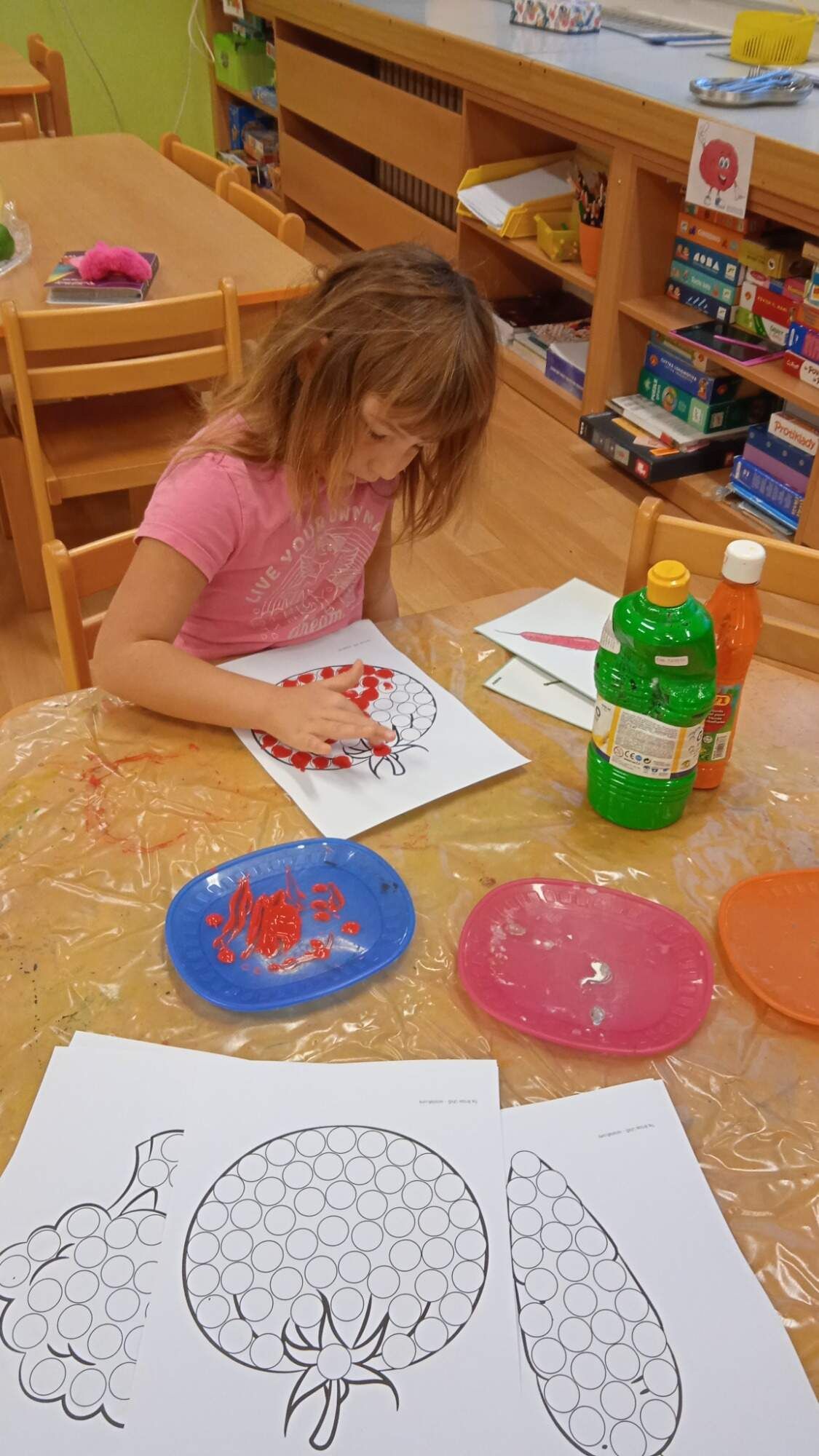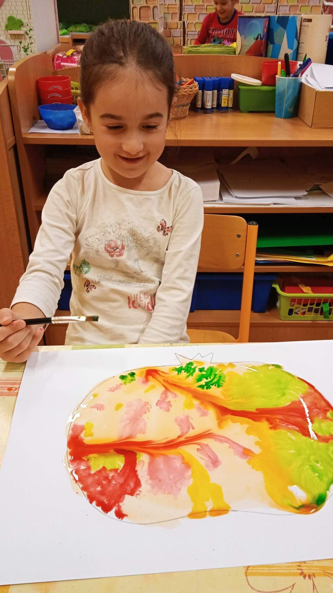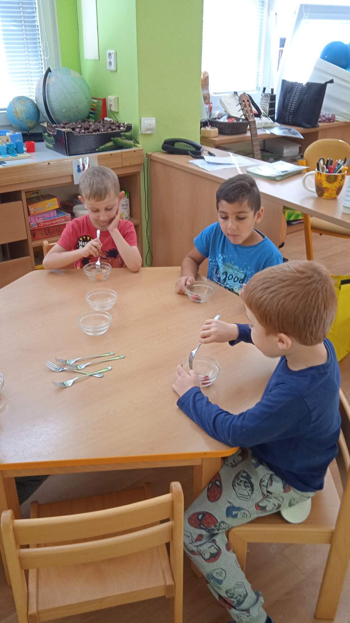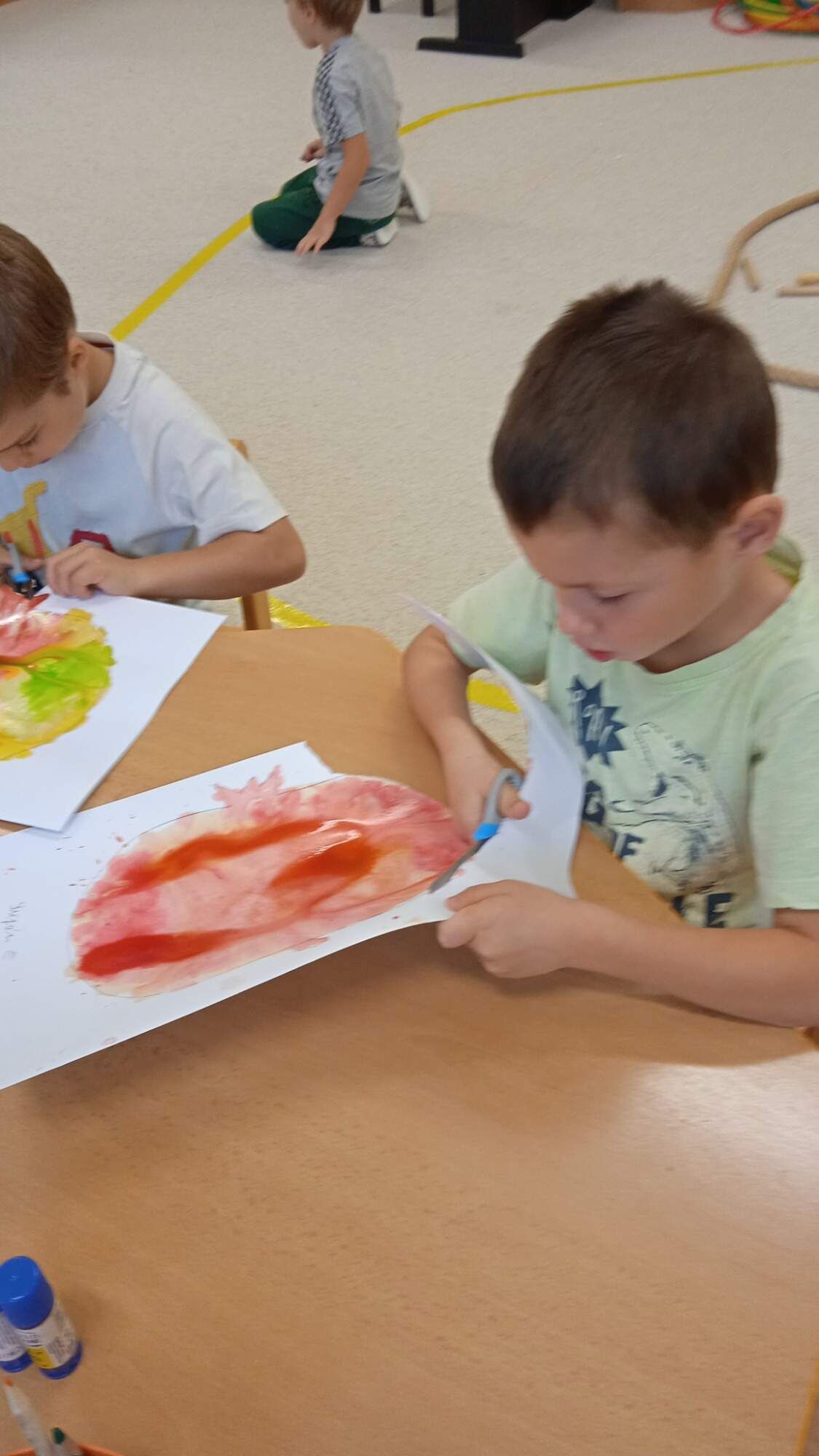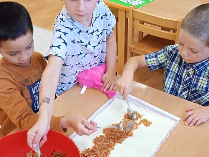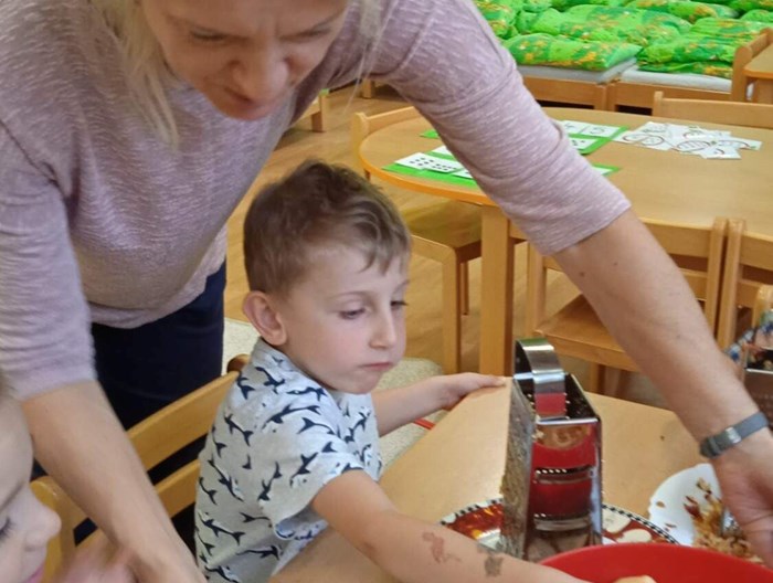 Děti uvolnily ruku při velkoformátové grafomotorice. Upekli jsme jablečný závin, byl výtečný.