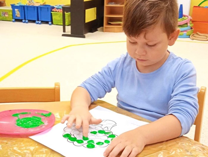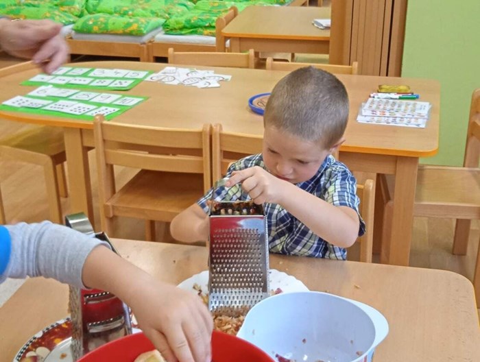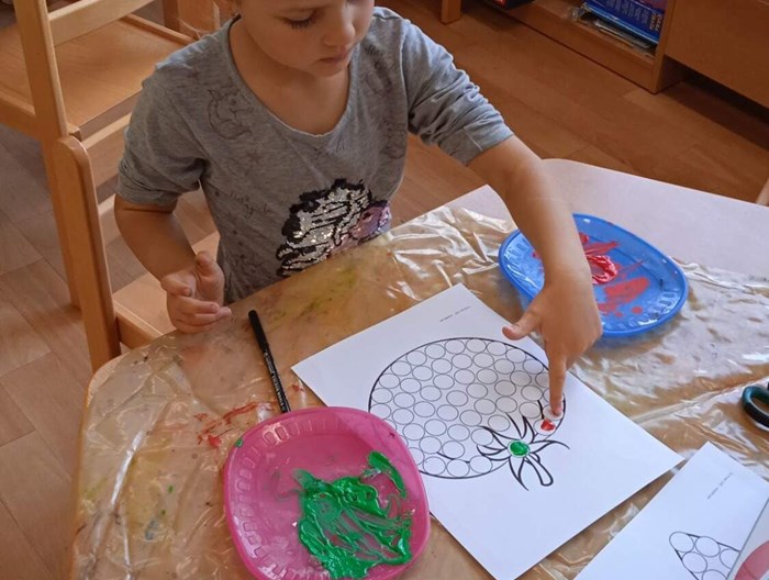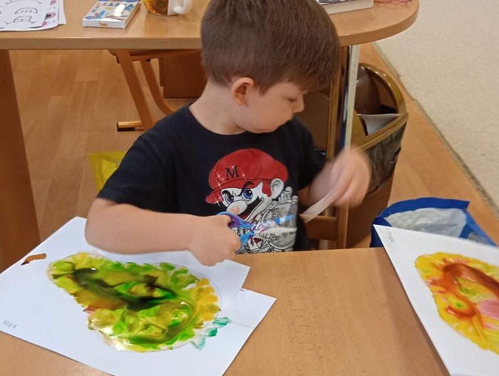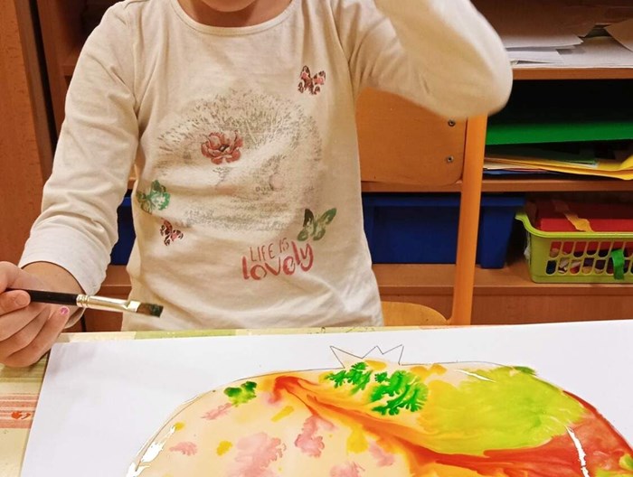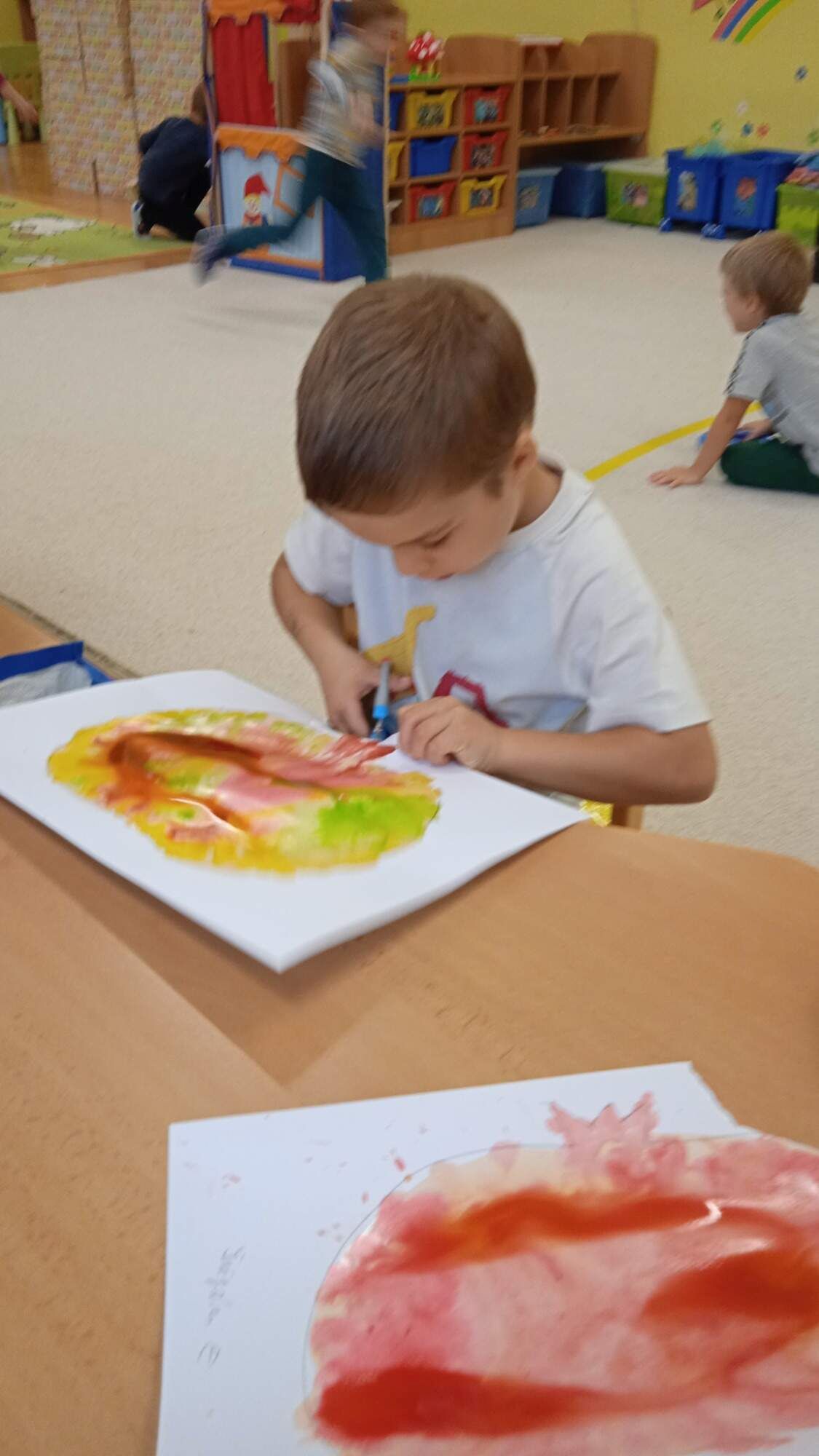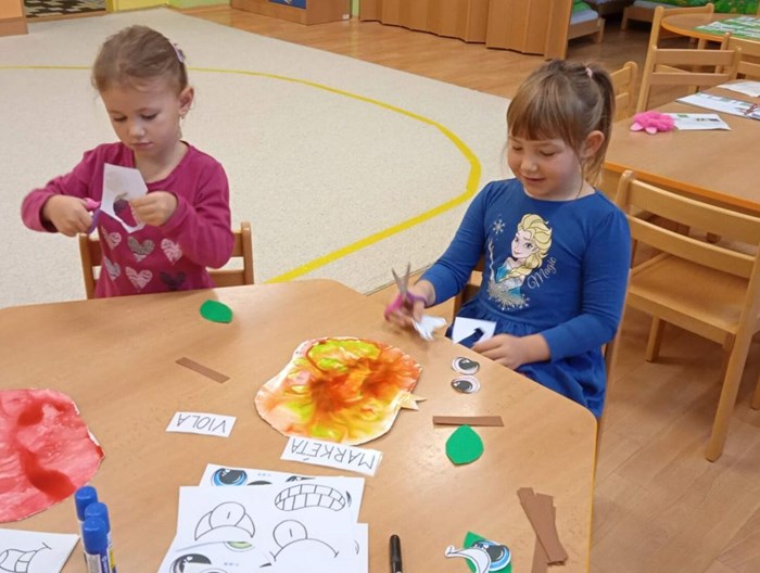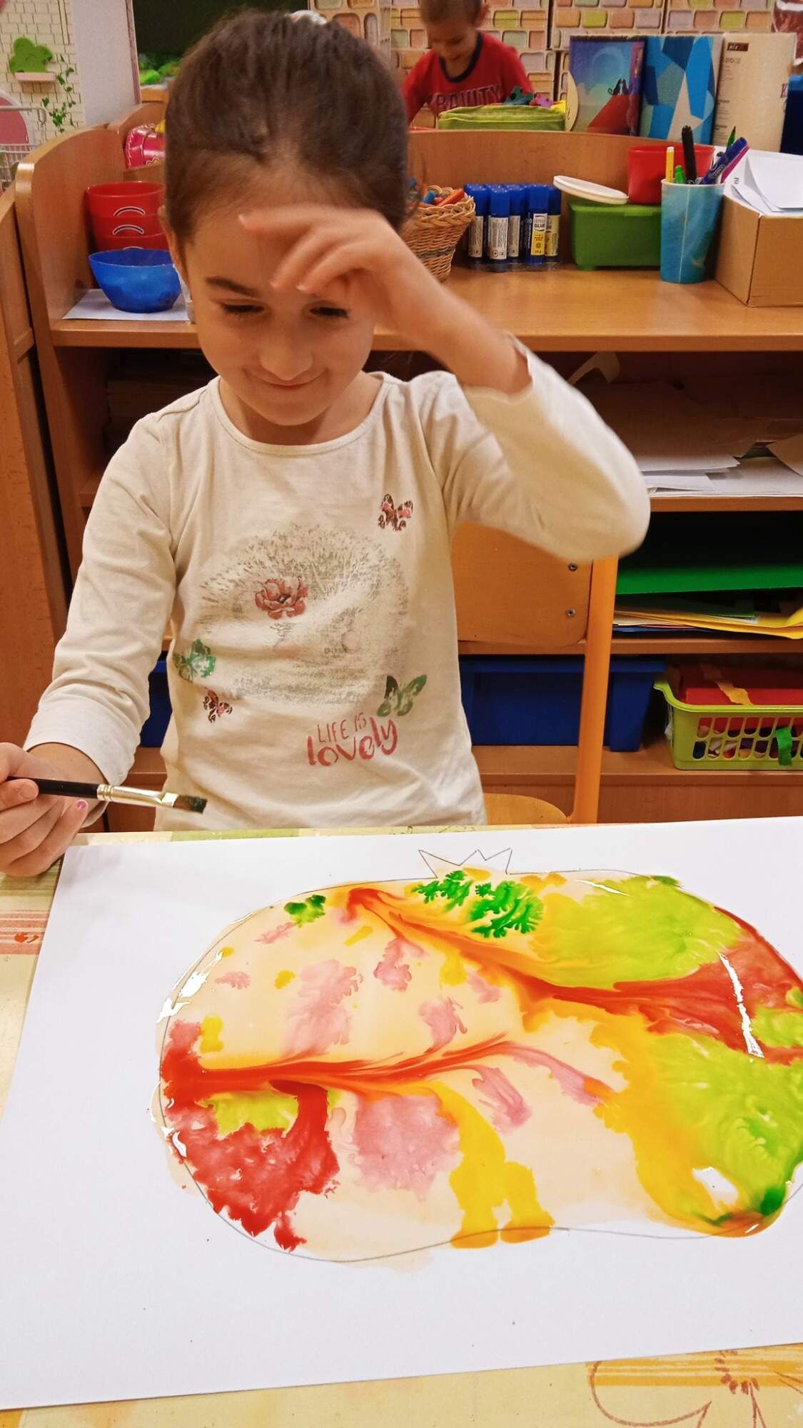 Děti uvolnily ruku při velkoformátové grafomotorice. Upekli jsme jablečný závin, byl výtečný.