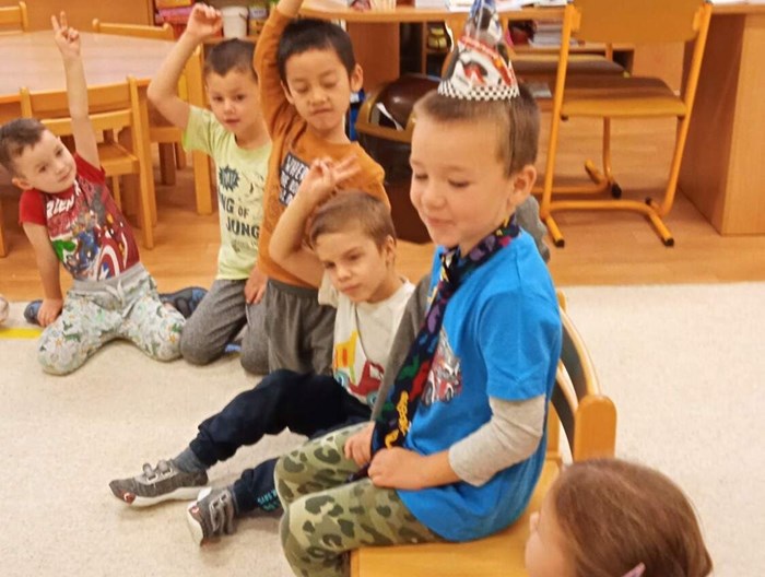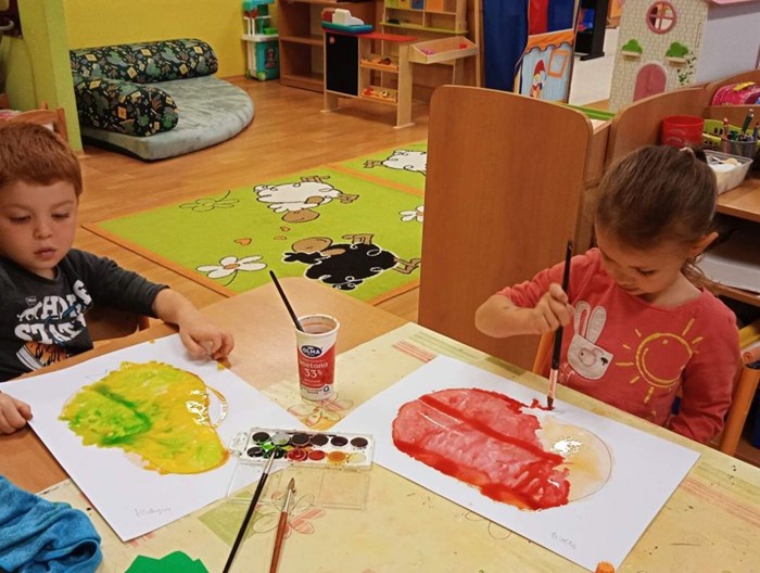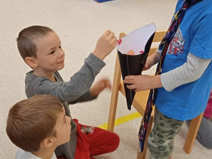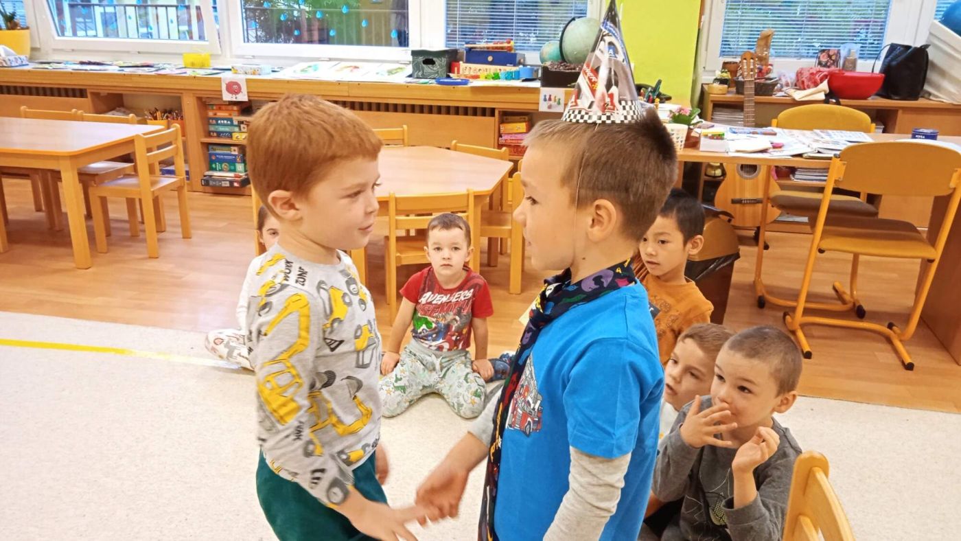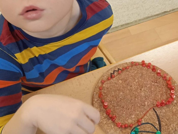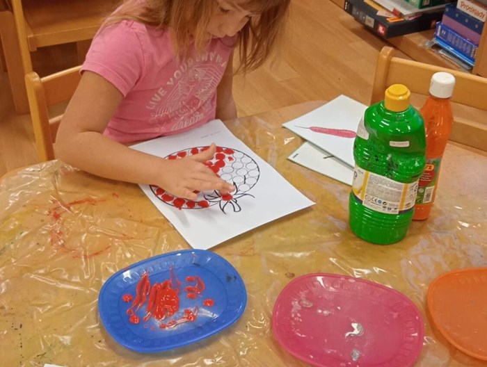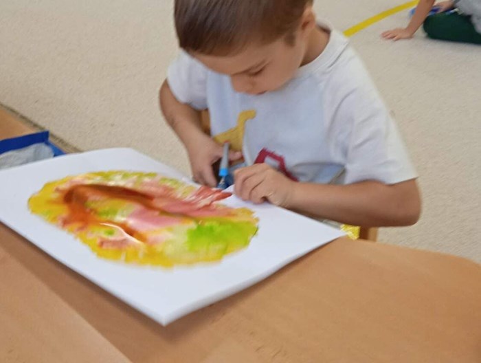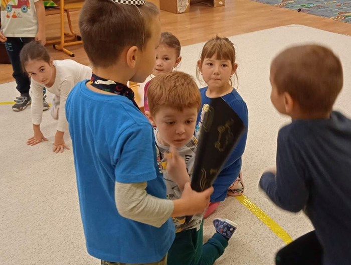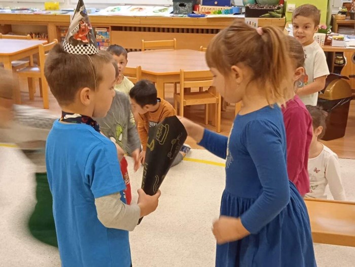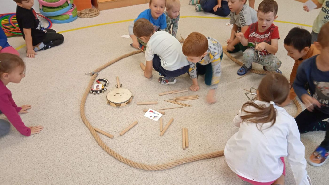 Děti uvolnily ruku při velkoformátové grafomotorice. Upekli jsme jablečný závin, byl výtečný.