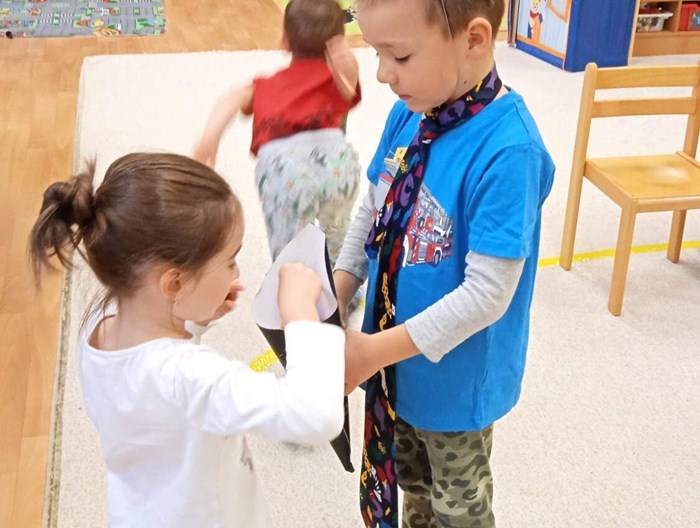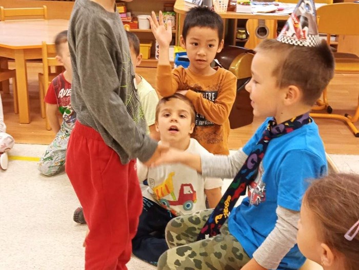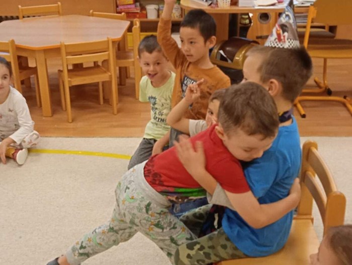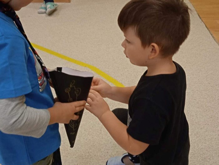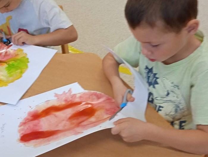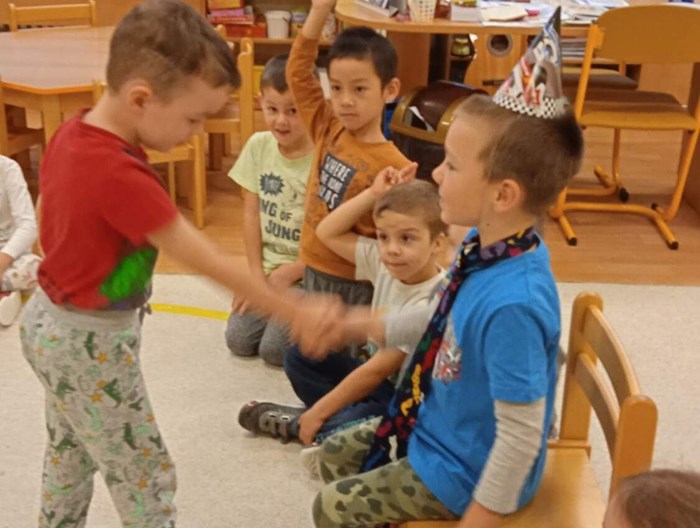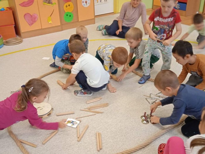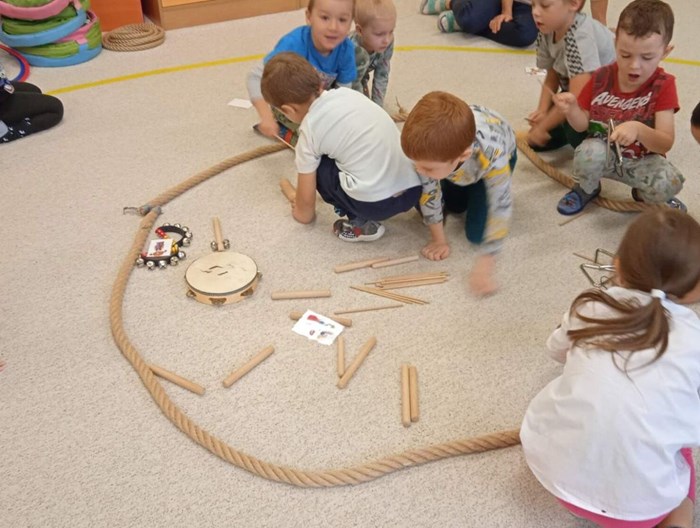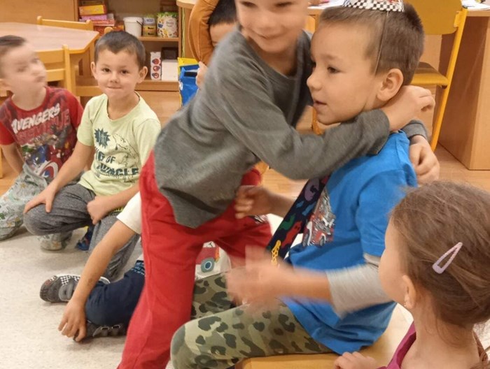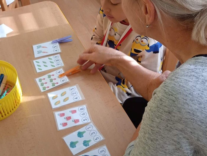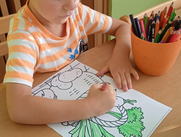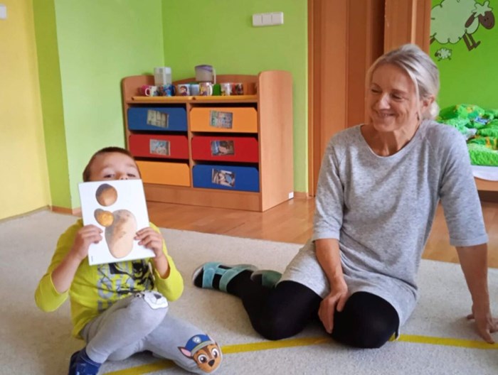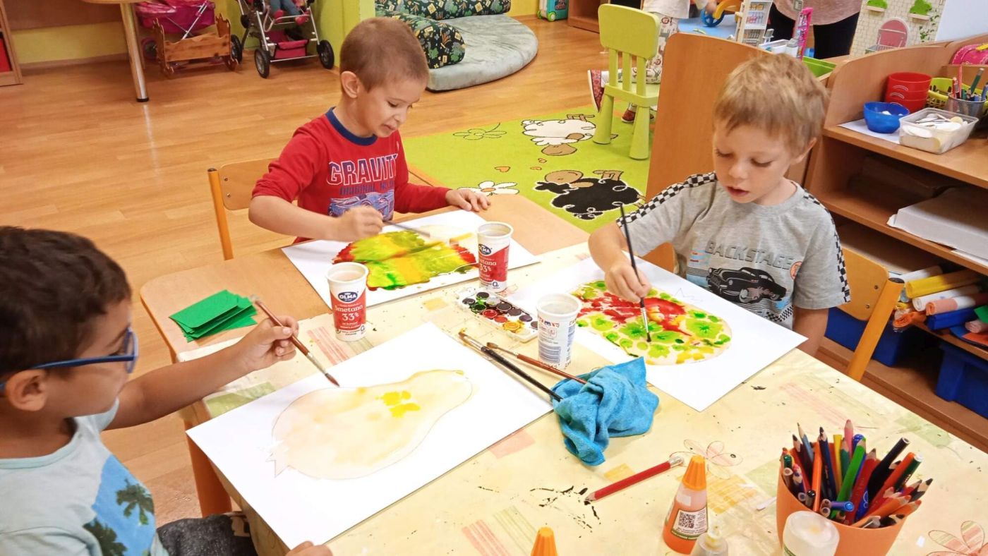 Děti uvolnily ruku při velkoformátové grafomotorice. Upekli jsme jablečný závin, byl výtečný.