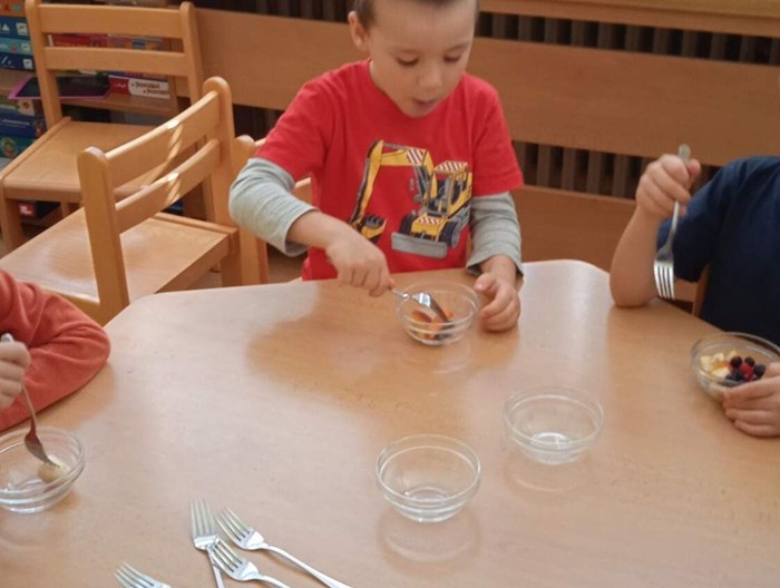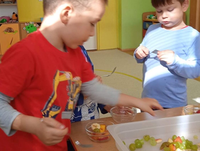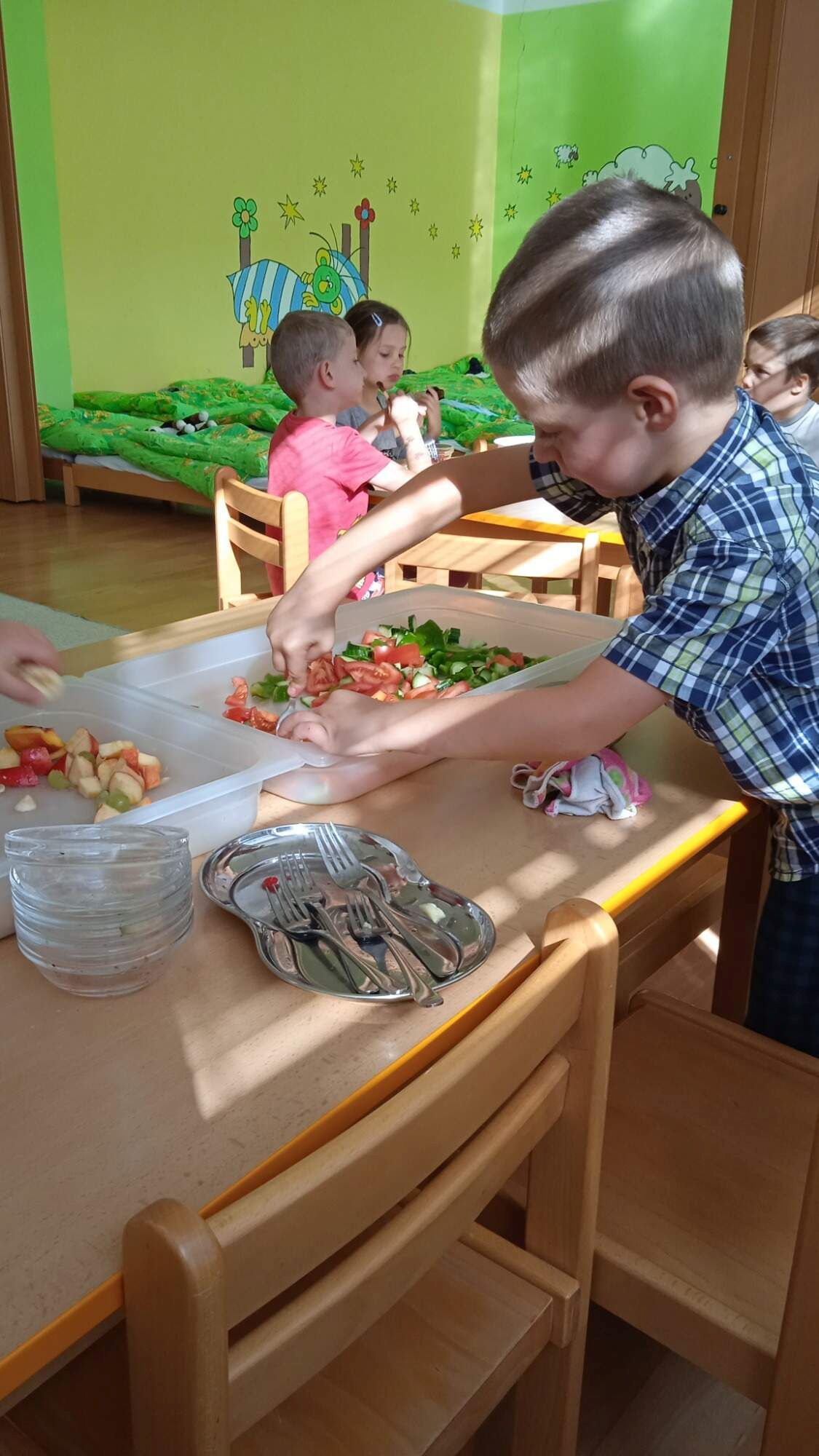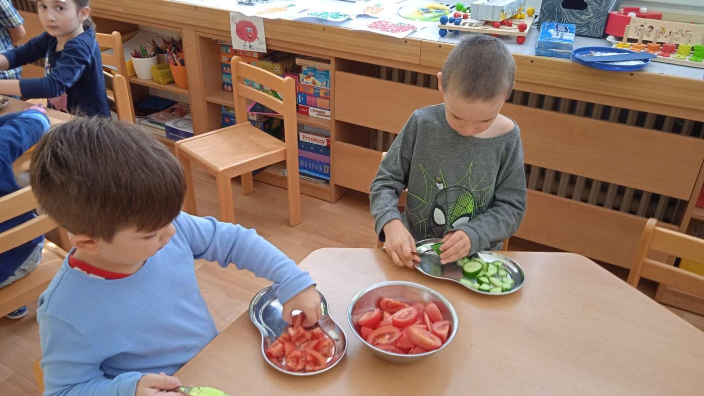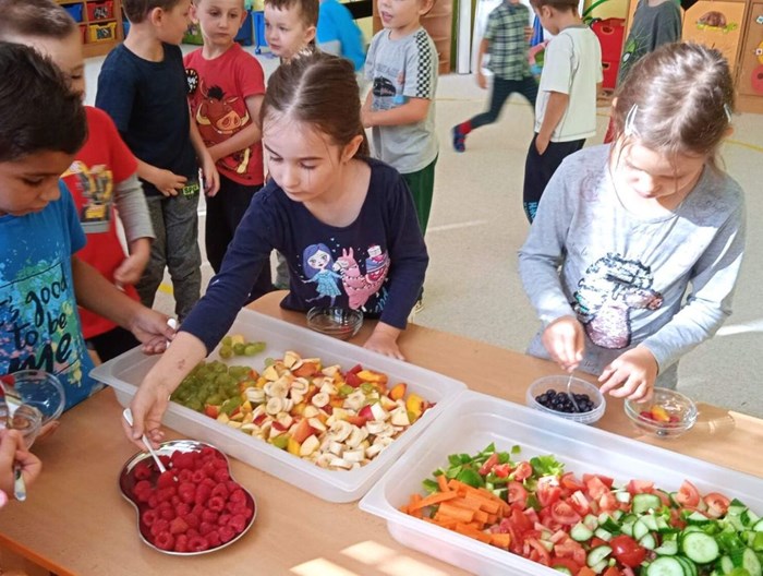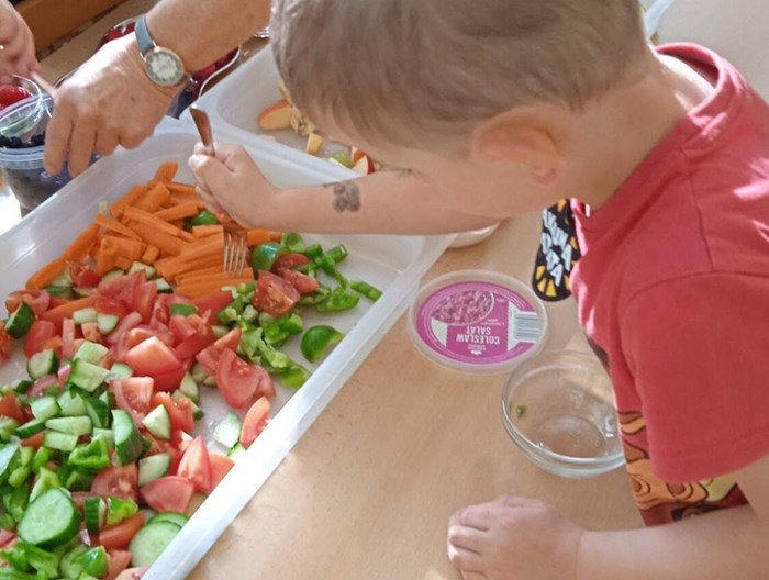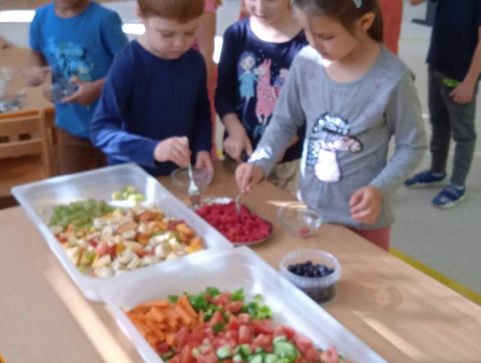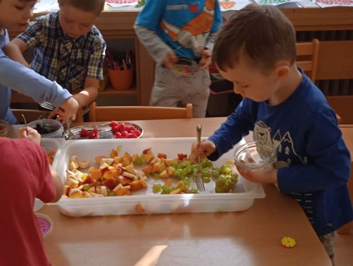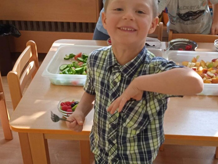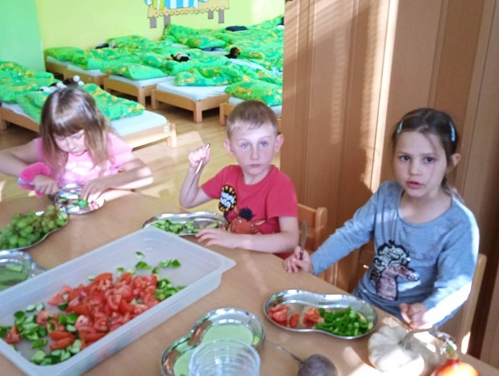 A na závěr si děti vlastnoručně připravily zdravý raut. Všechnu zeleninu a ovoce pokrájely a pak si hrály na restauraci, každý si nakládal podle libosti.