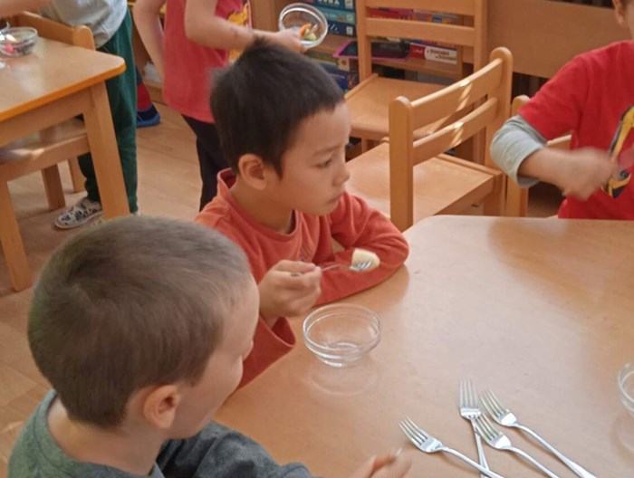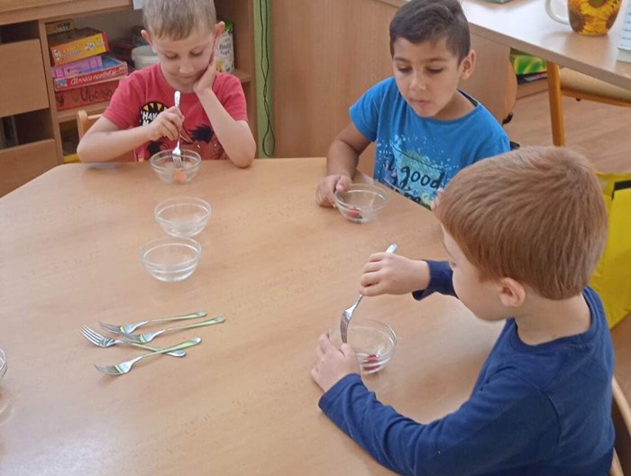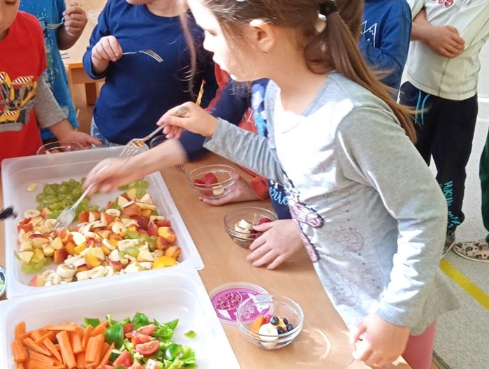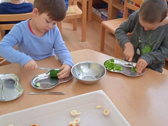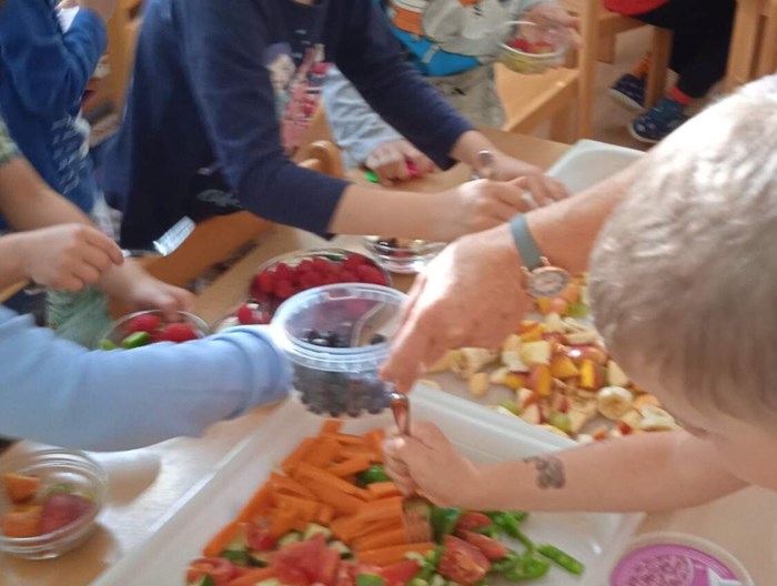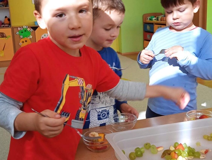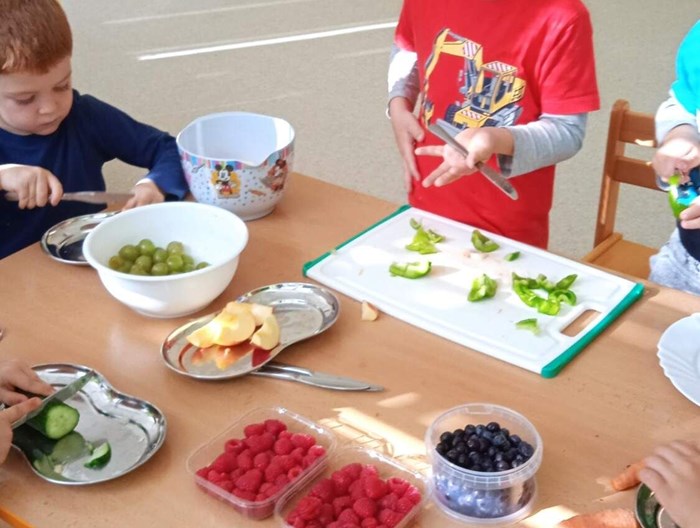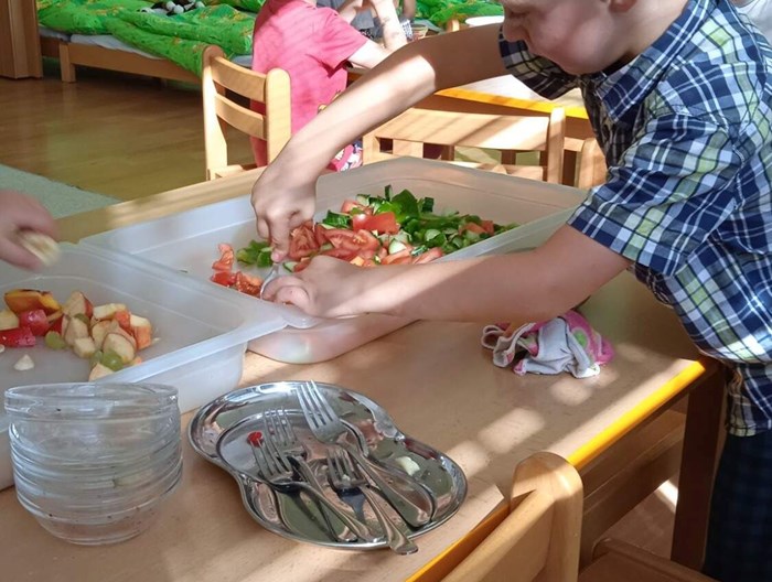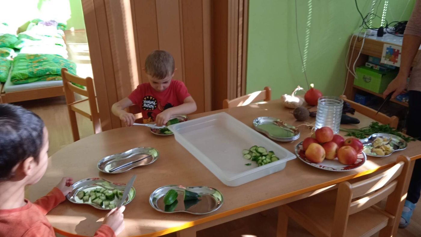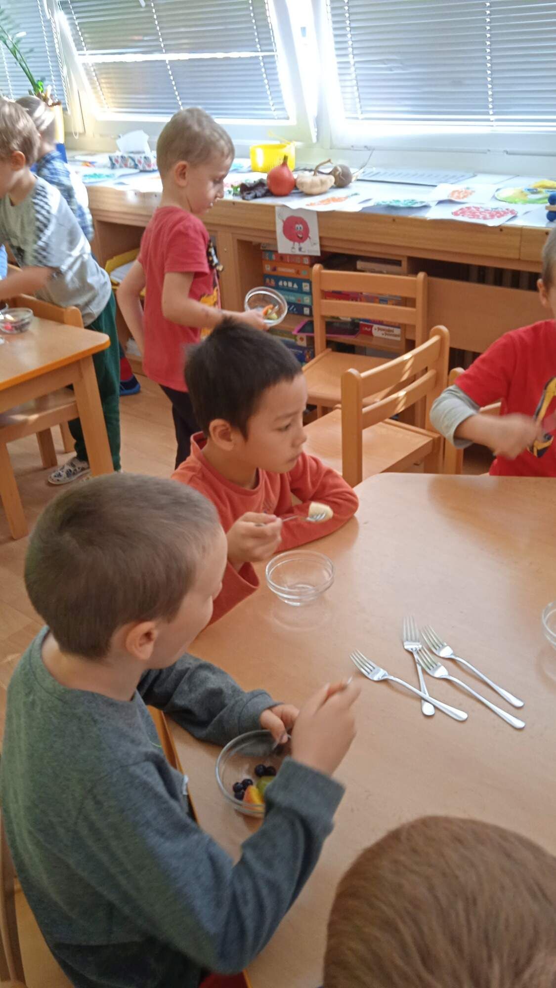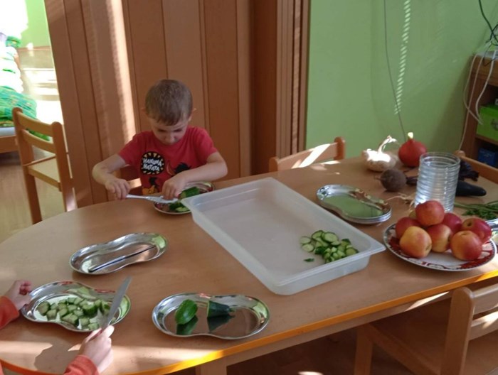 A na závěr si děti vlastnoručně připravily zdravý raut. Všechnu zeleninu a ovoce pokrájely a pak si hrály na restauraci, každý si nakládal podle libosti.