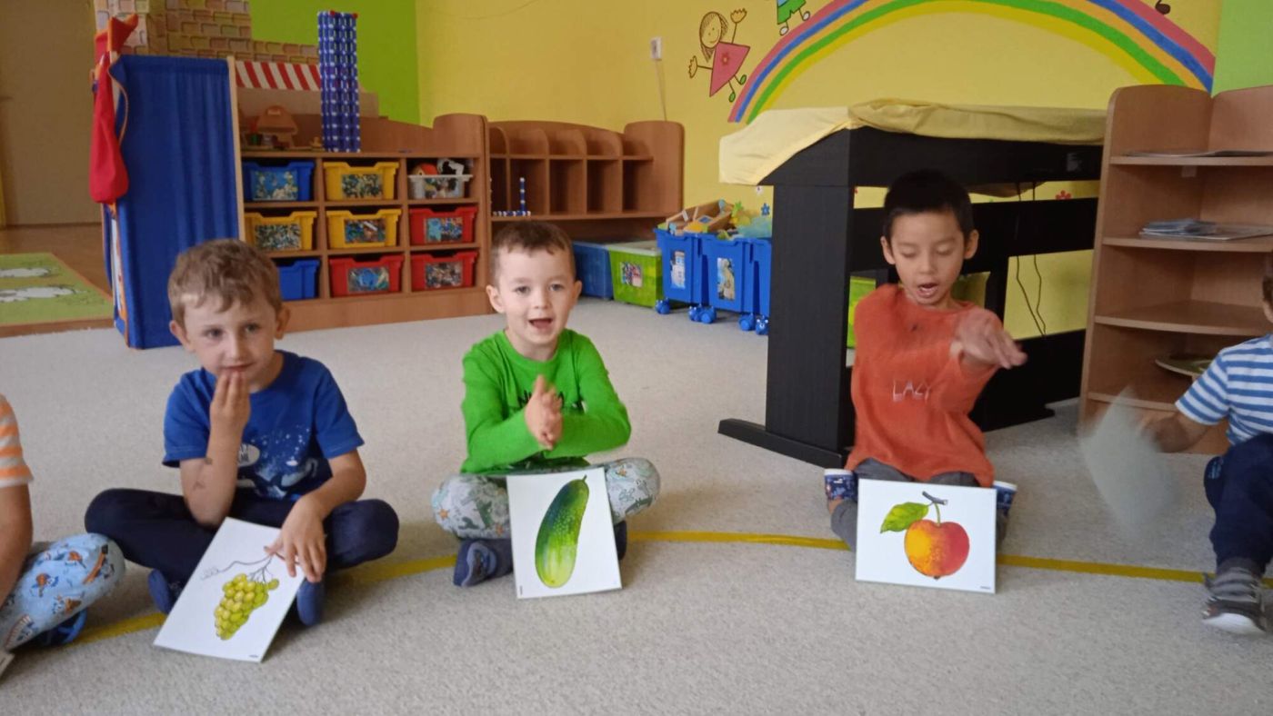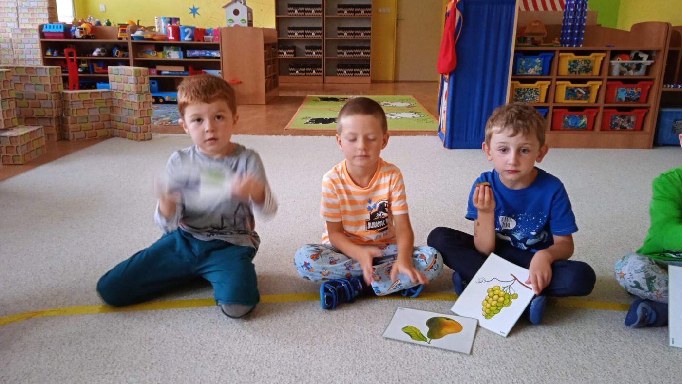 Třetí zářijový týden byl plný ovoce a zeleniny. Vytvořili jsme klovatinová jablka a hrušky, cvičili jsme, zpívali jsme tematické písně, naučili jsme se novou básničku...