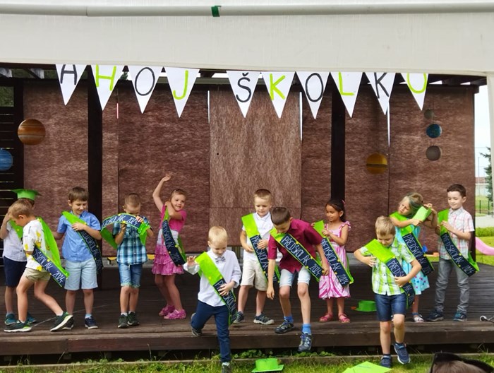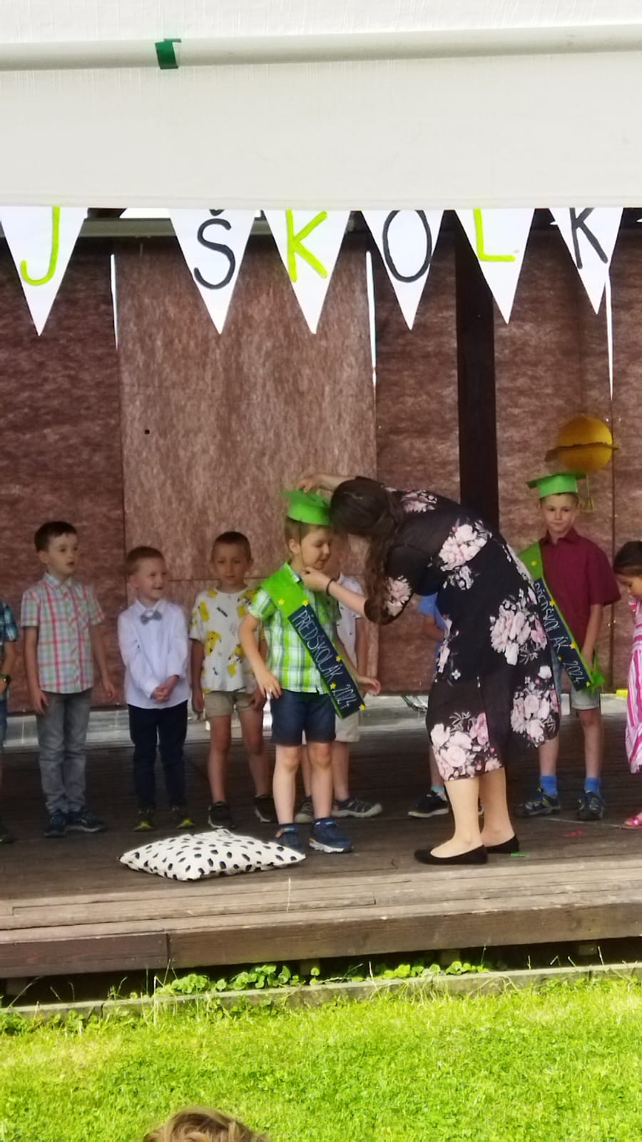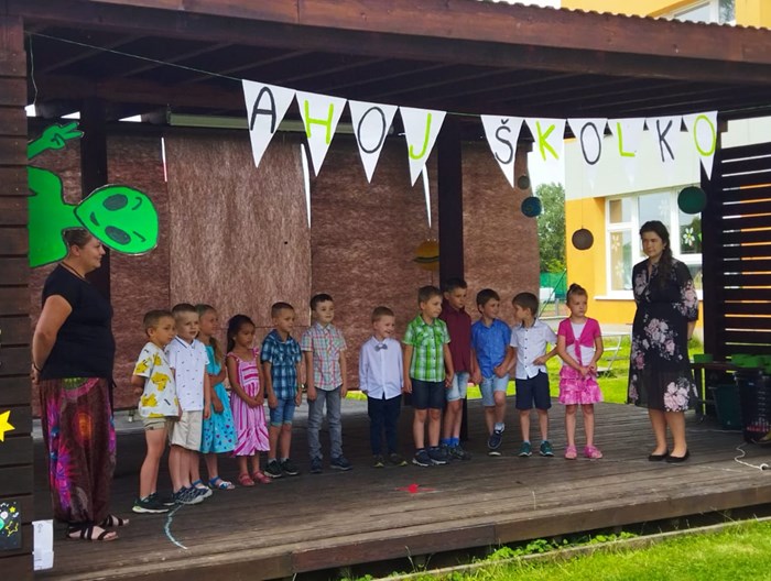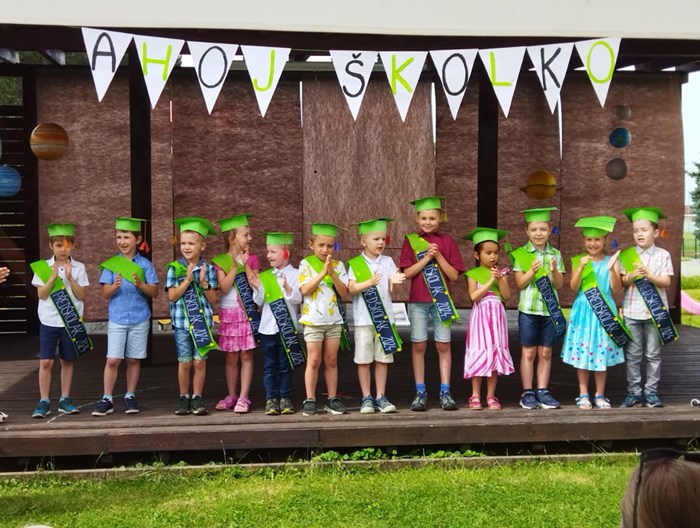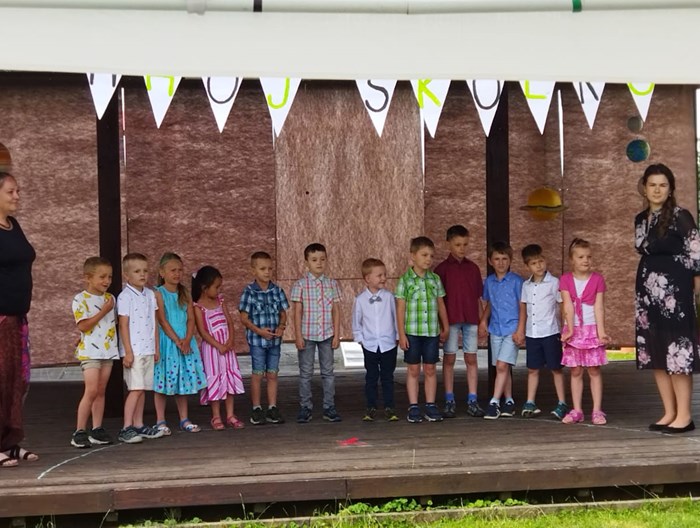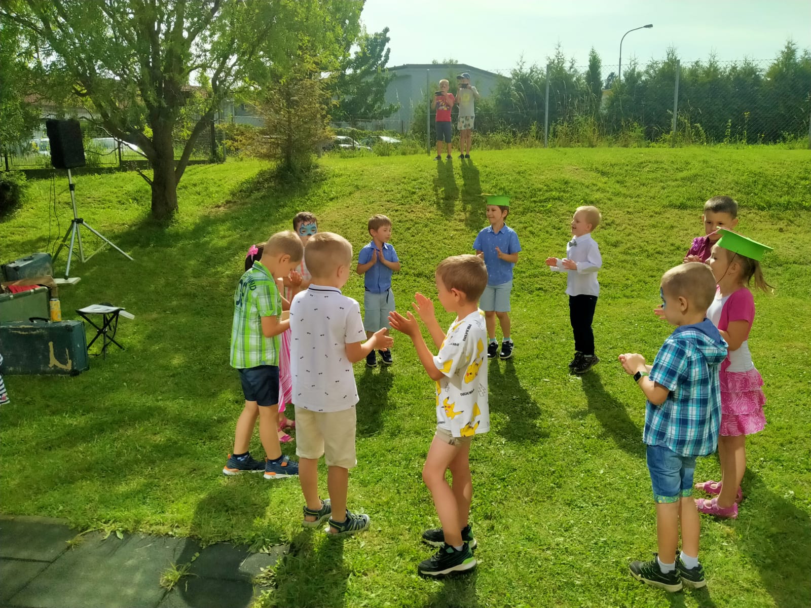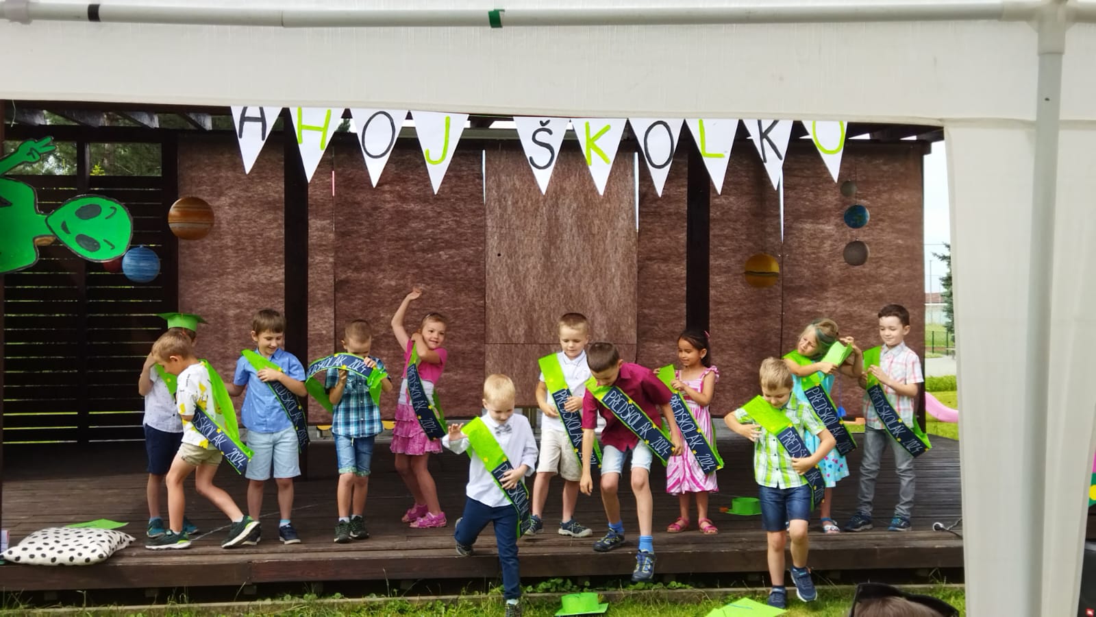 Slavnostní rozloučení s našimi předškoláky proběhlo na školní zahradě. Děti si pro své rodiče připravily hudební vystoupení na rozloučenou.