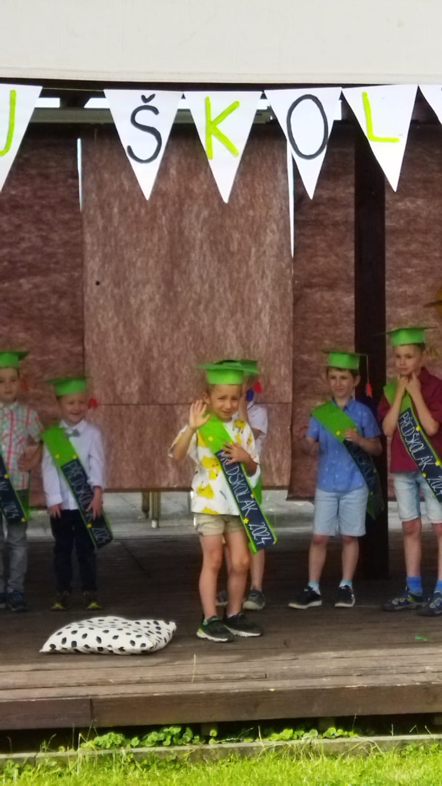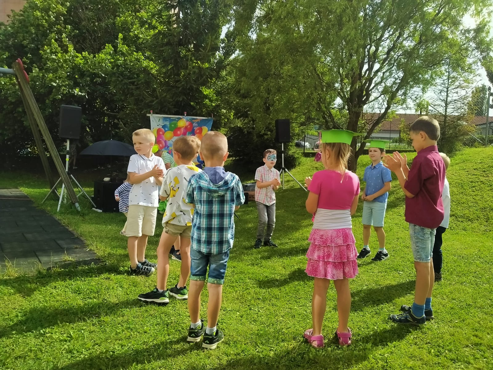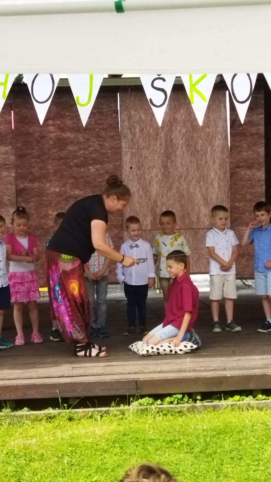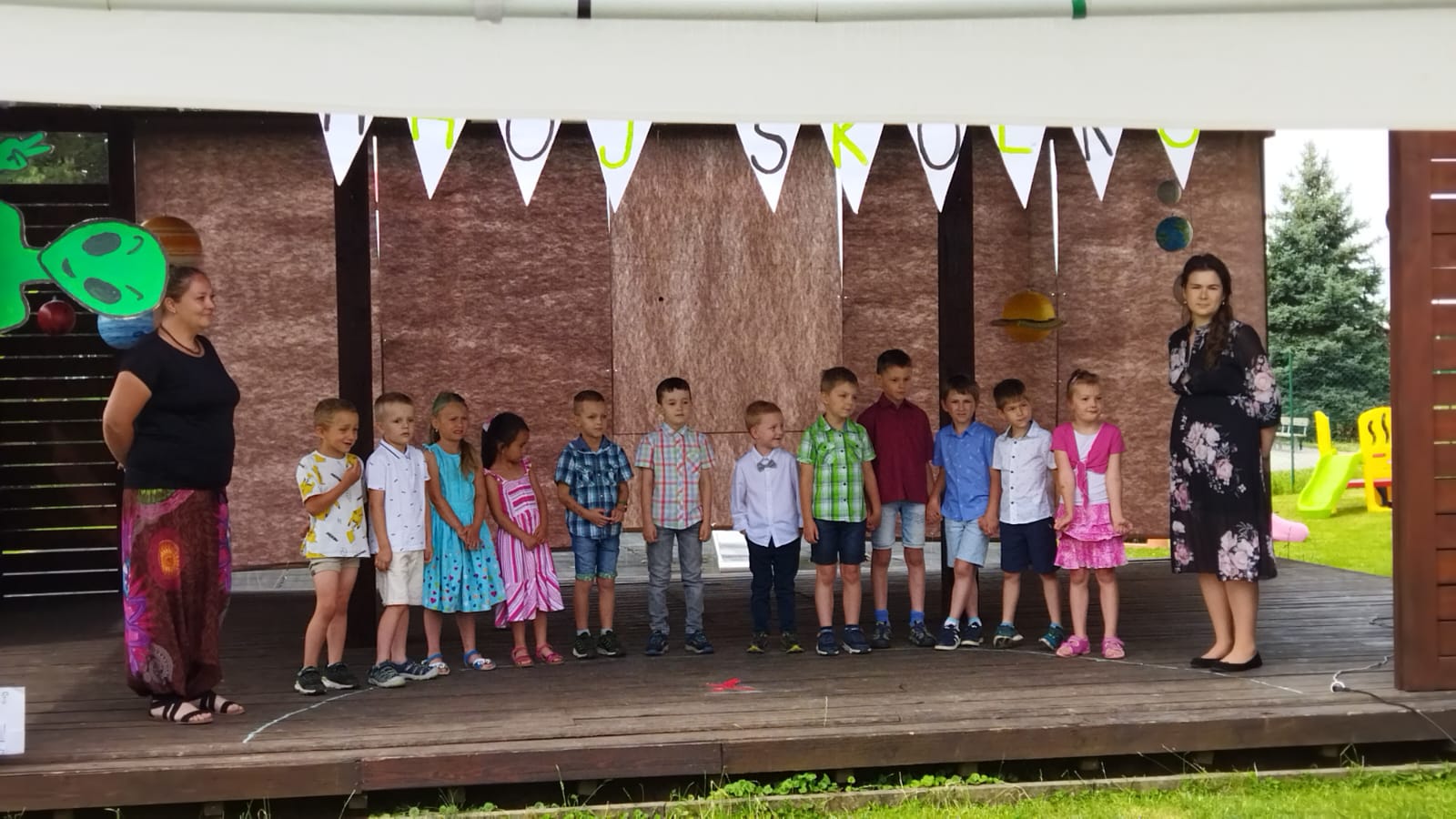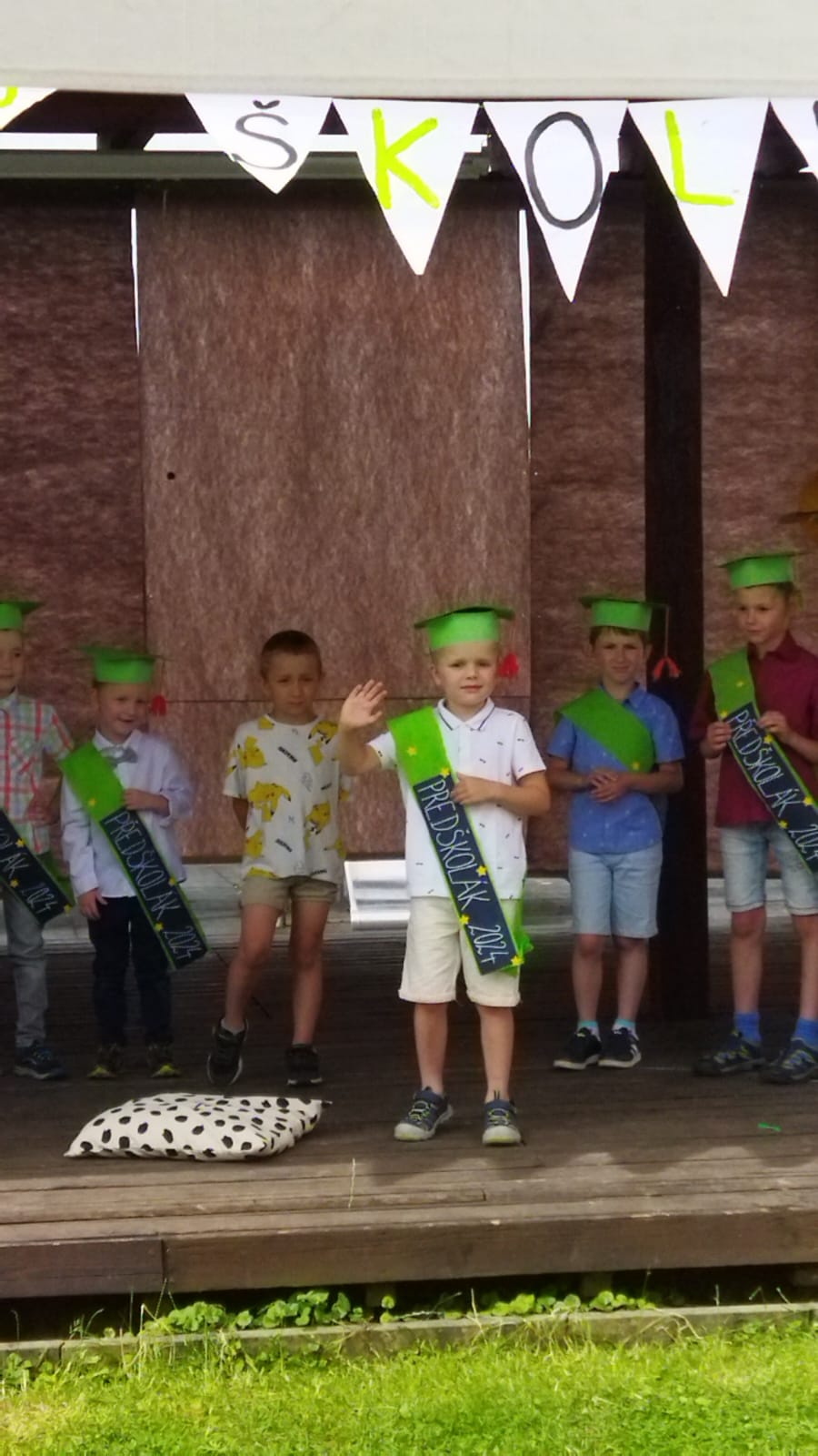 Slavnostní rozloučení s našimi předškoláky proběhlo na školní zahradě. Děti si pro své rodiče připravily hudební vystoupení na rozloučenou.