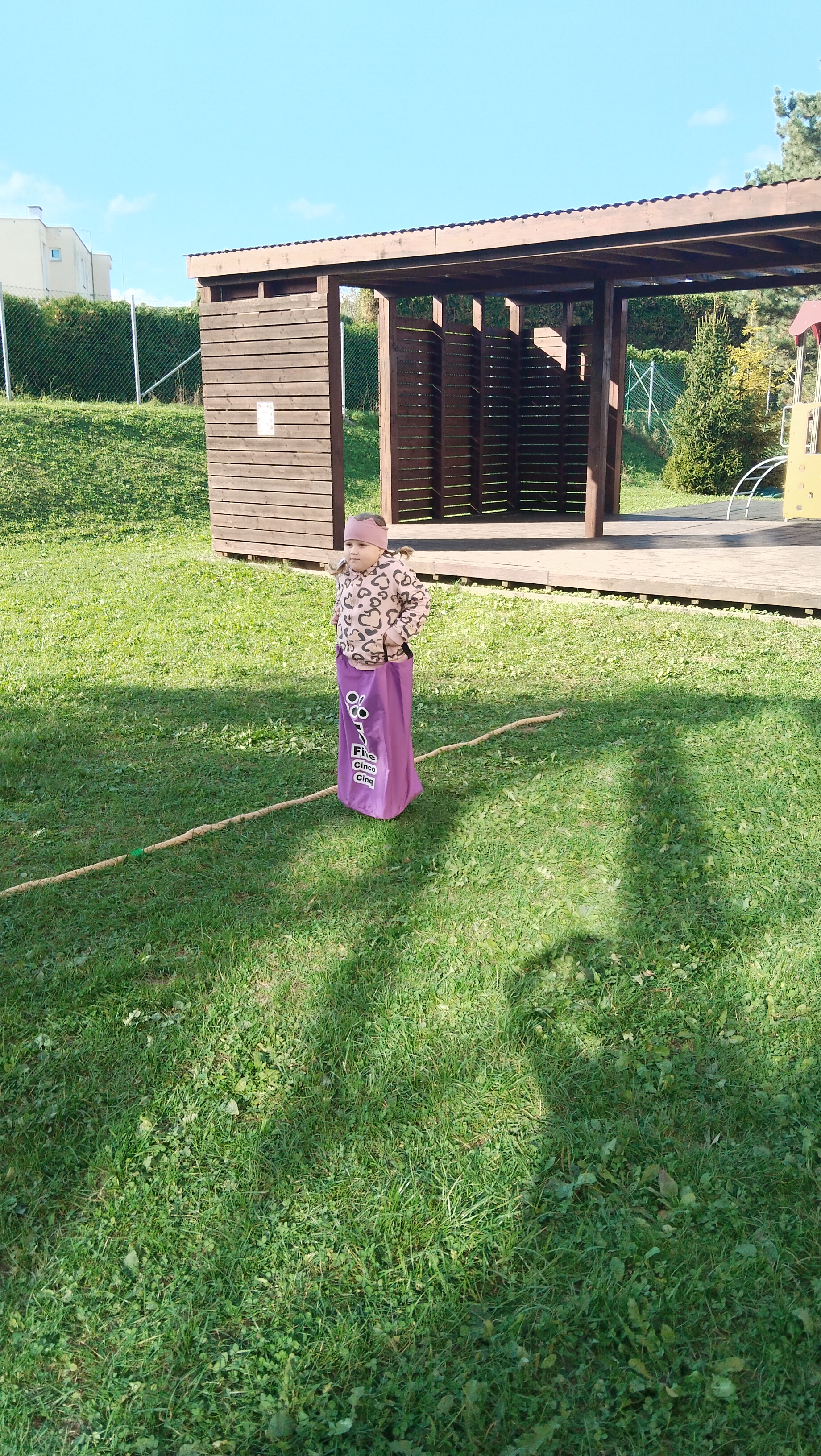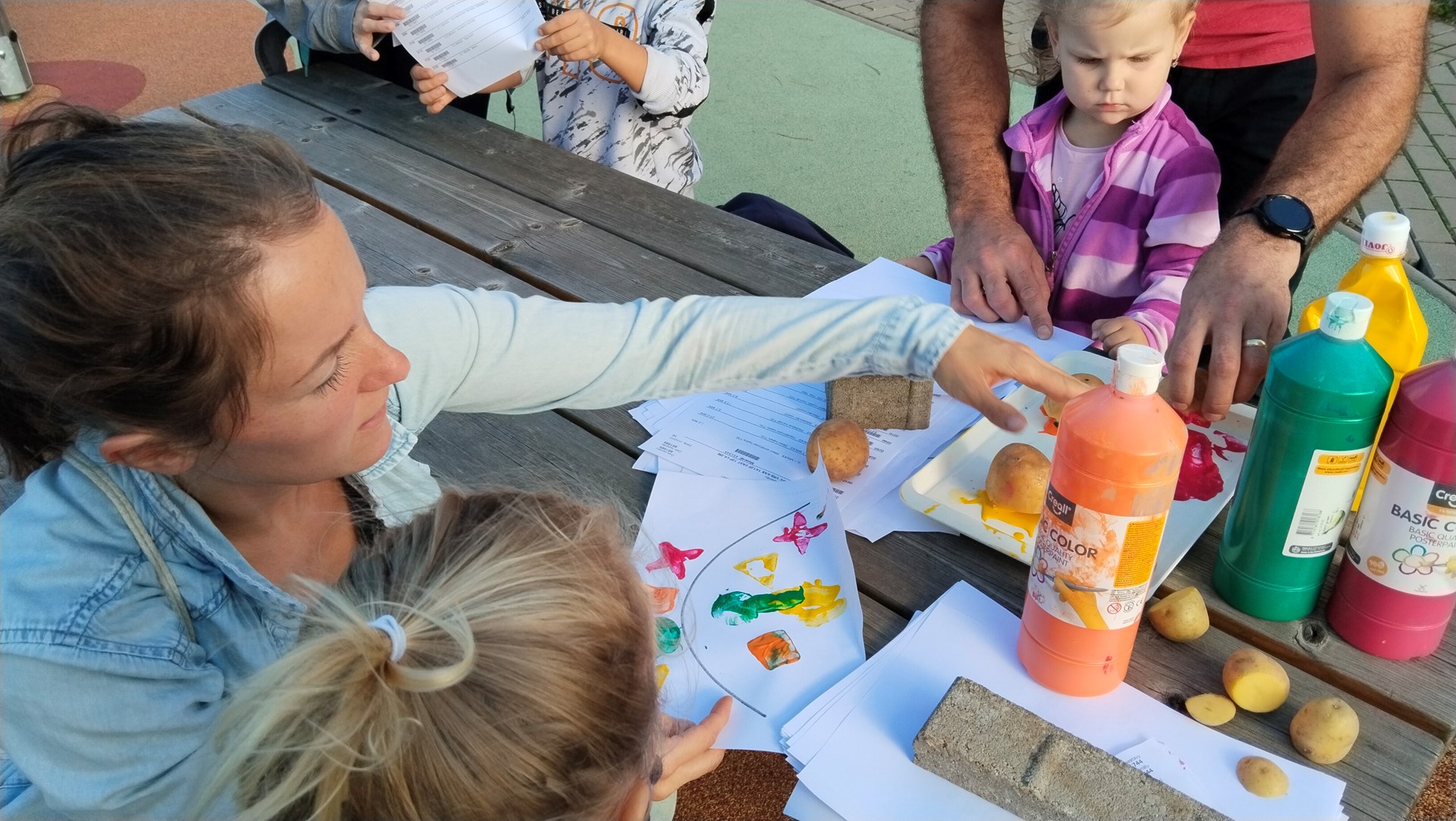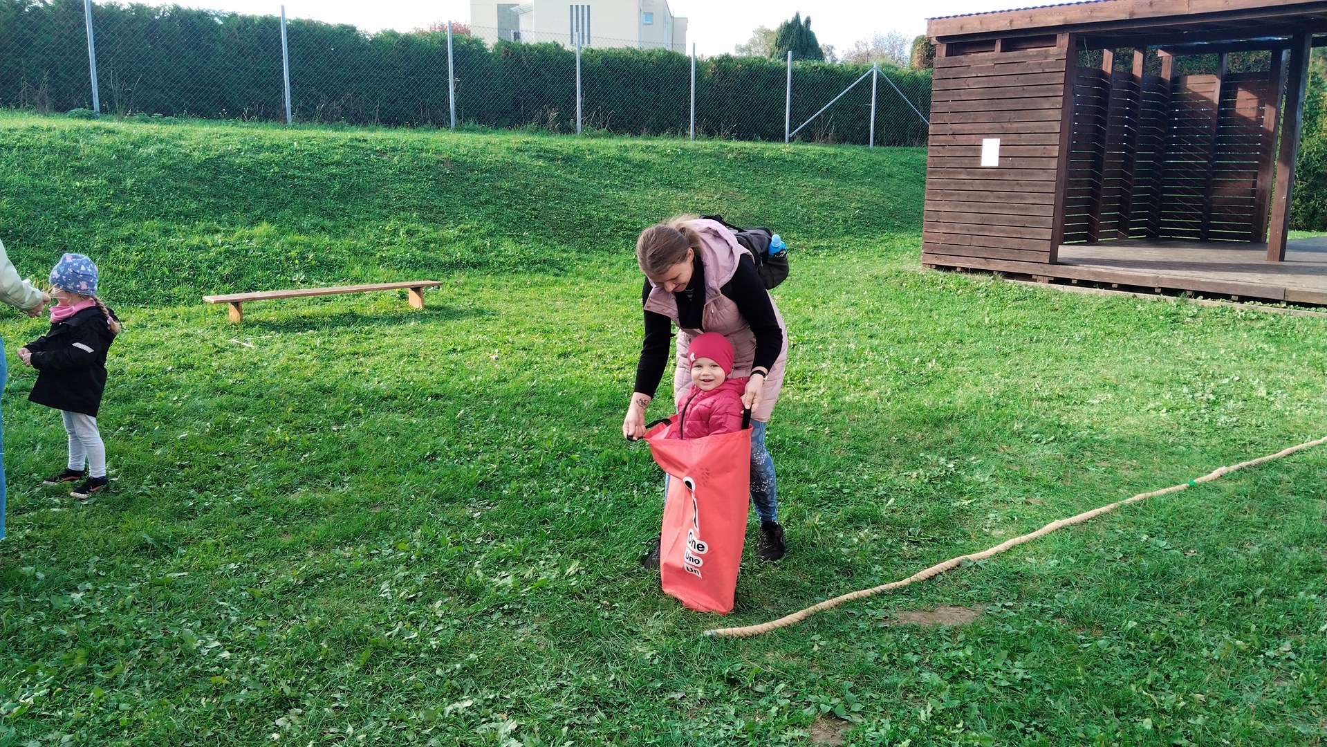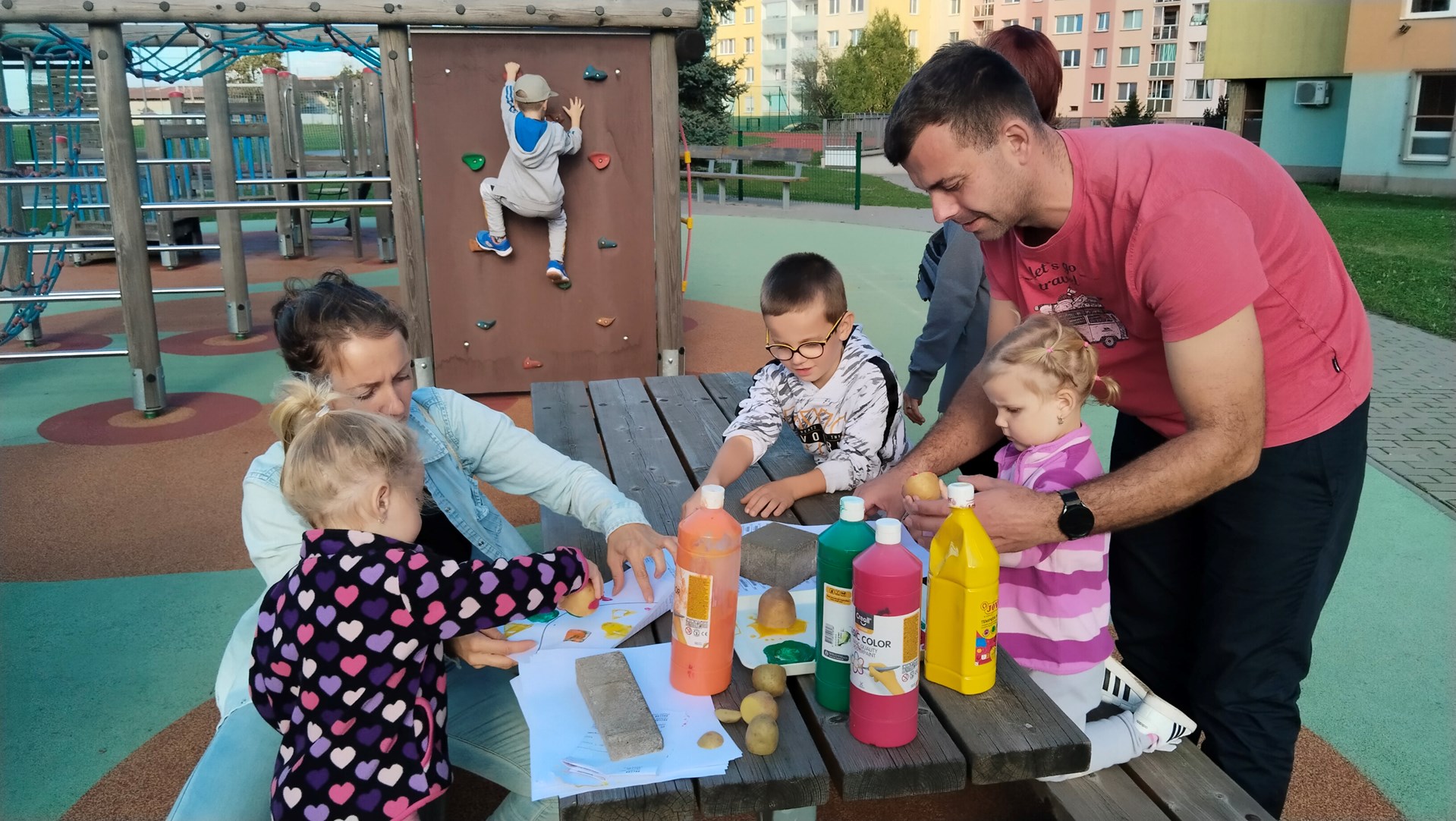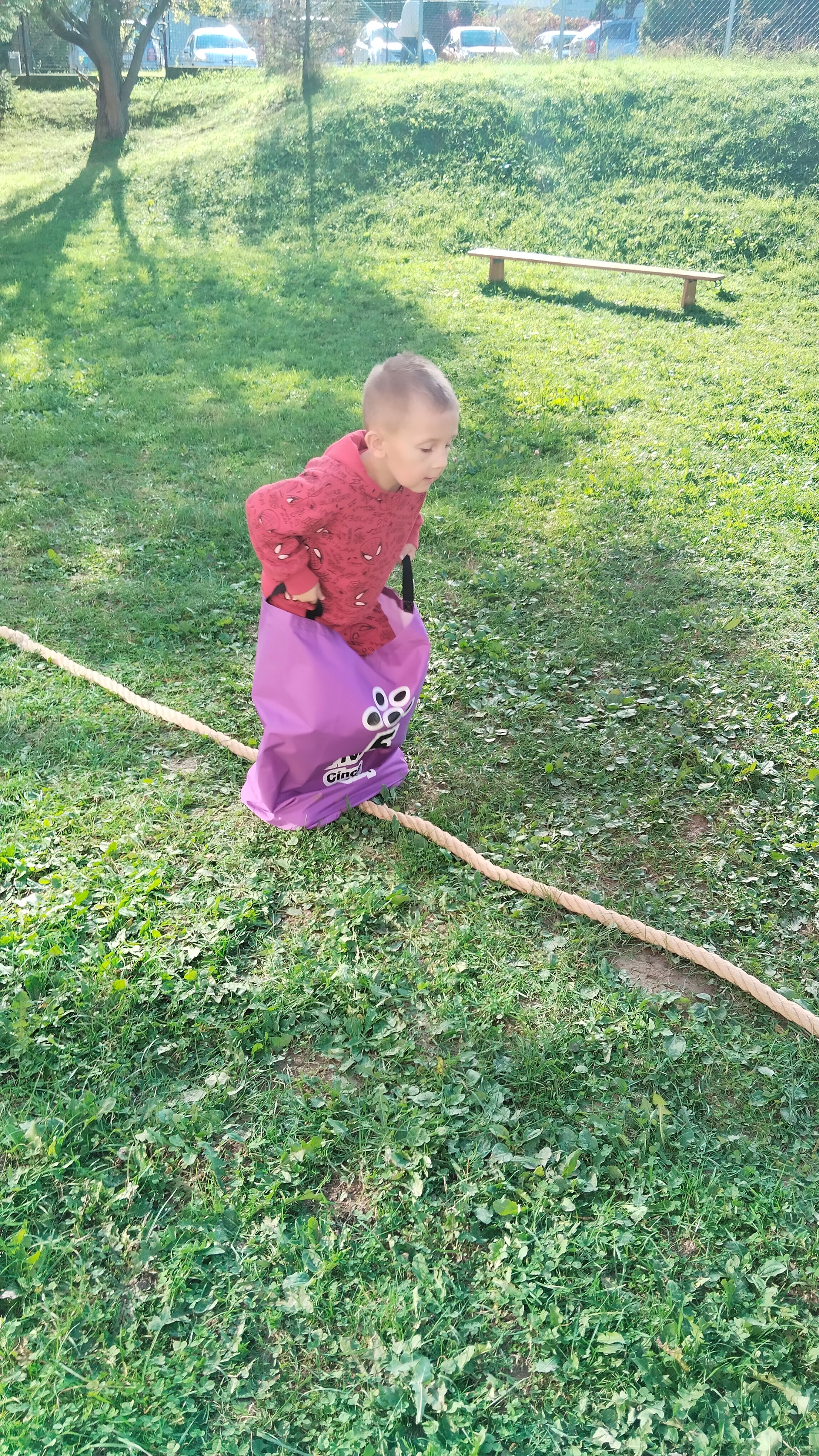 Počasí jako stvořené pro hry na zahradě nám krásně vyšlo pro uspořádání "Bramboriády." Tuto podzimní plodinu jsme využili na 8 stanovištích. Děti řadily brambory podle velikosti, házely s ní na koš, vykopávaly ji z písku, tvořily z ní ježka, nosily ji na vařečce a také skákaly v pytli. Na závěr jsme si pak pochutnali na výborné bramboračce, kterou uvařila naše paní kuchařka Marcelka.