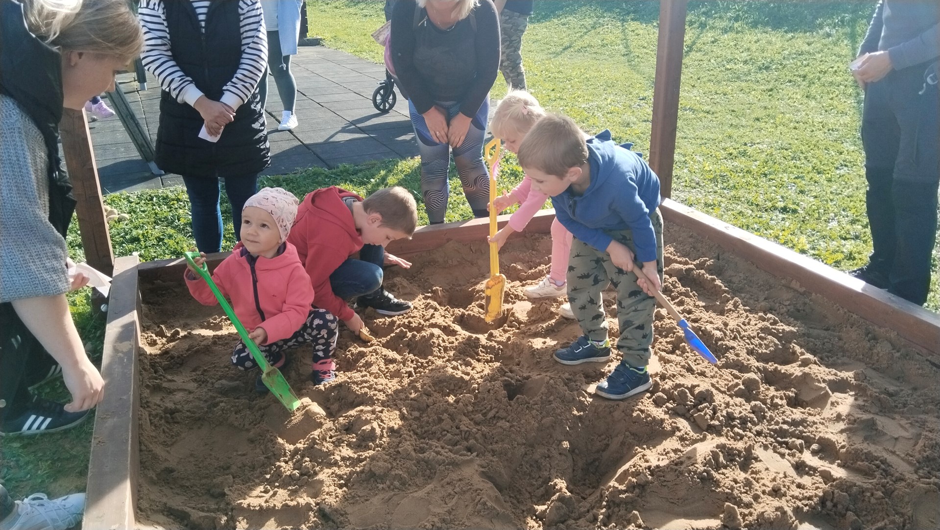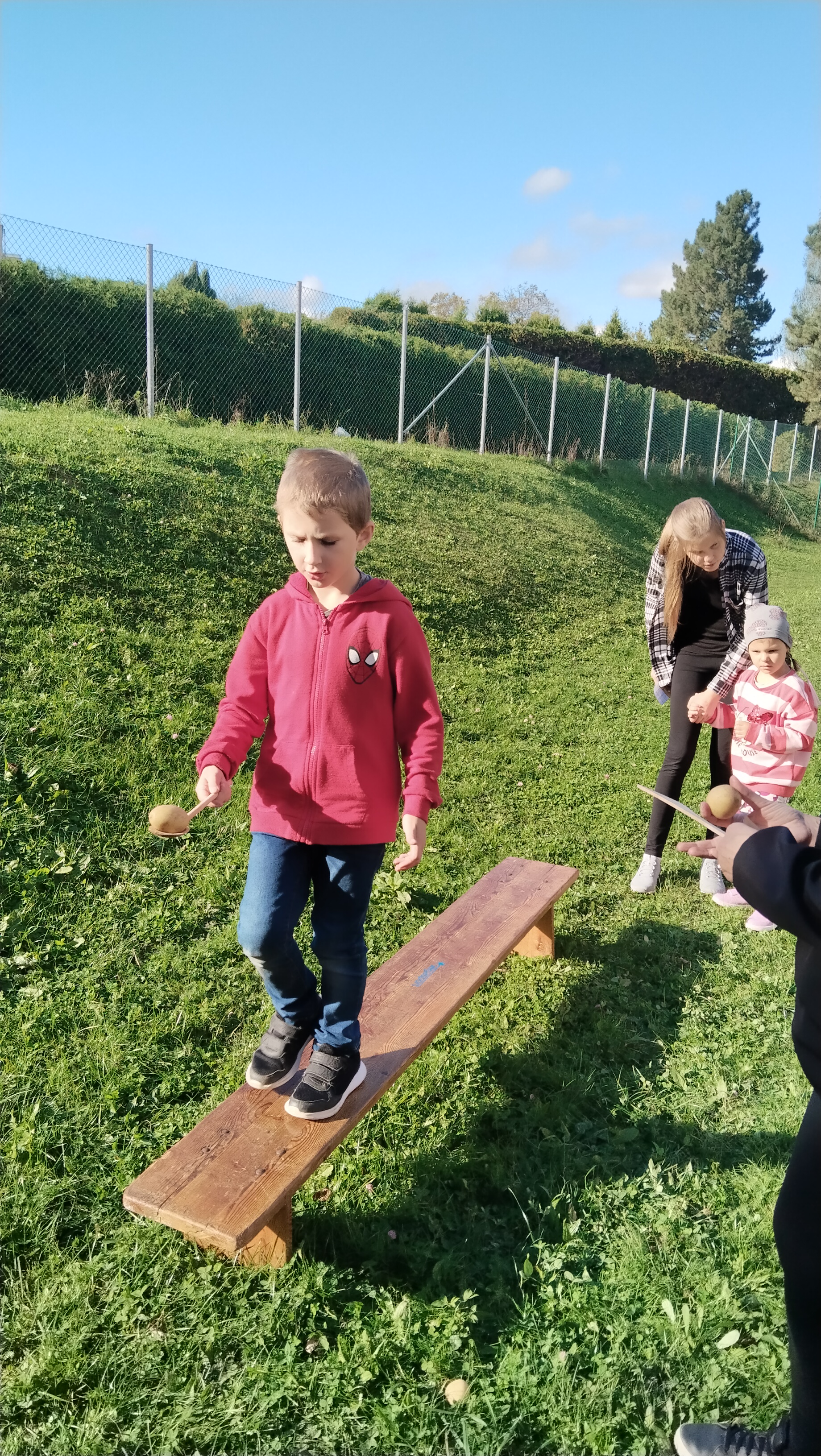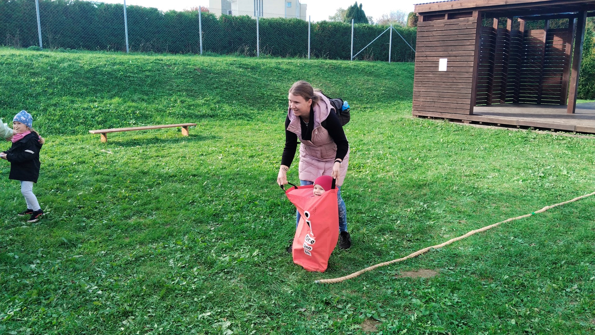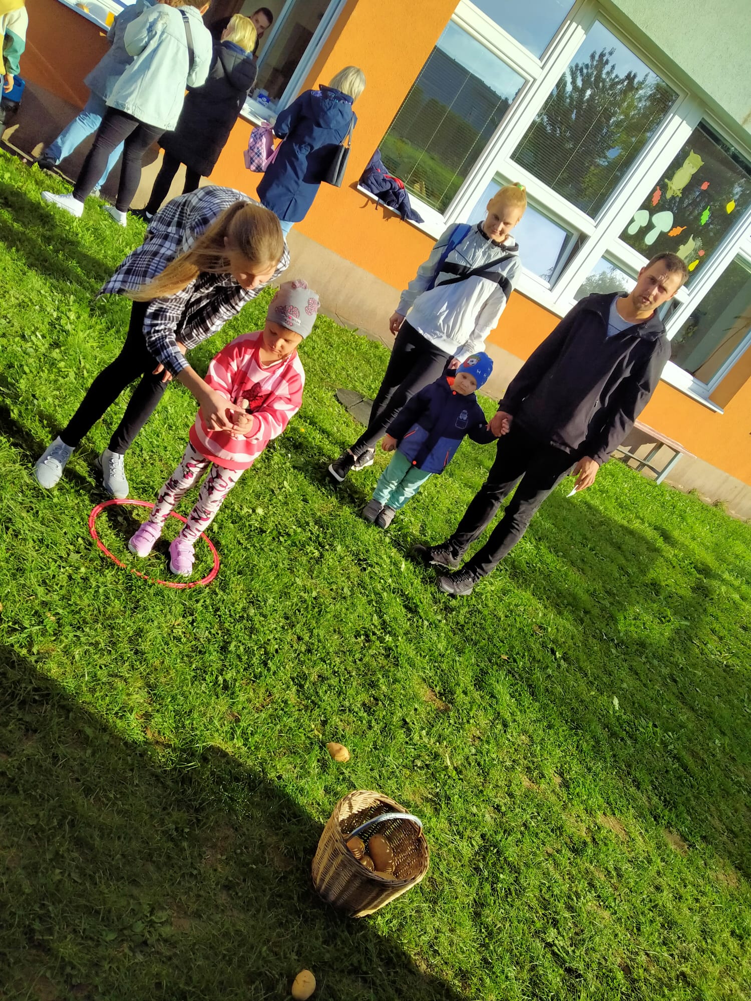 Počasí jako stvořené pro hry na zahradě nám krásně vyšlo pro uspořádání "Bramboriády." Tuto podzimní plodinu jsme využili na 8 stanovištích. Děti řadily brambory podle velikosti, házely s ní na koš, vykopávaly ji z písku, tvořily z ní ježka, nosily ji na vařečce a také skákaly v pytli. Na závěr jsme si pak pochutnali na výborné bramboračce, kterou uvařila naše paní kuchařka Marcelka.