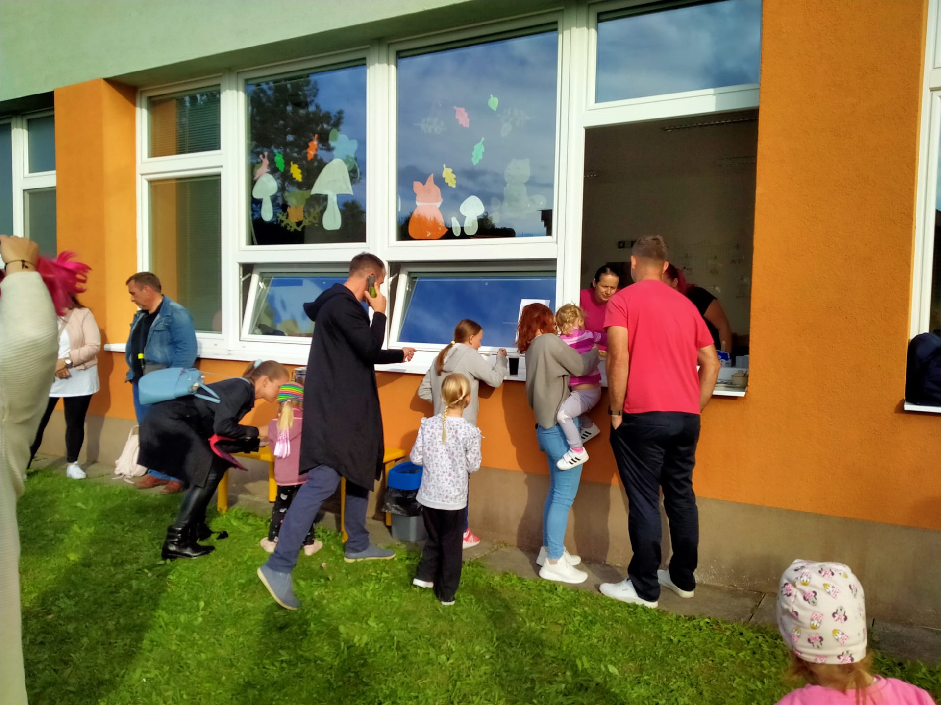 Odpolední akce na zahradě MŠ pro rodiče s dětmi.