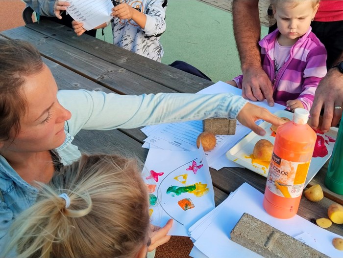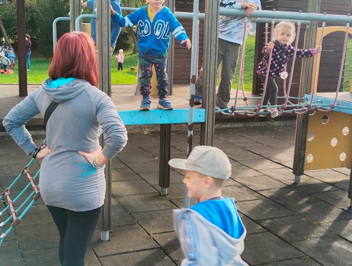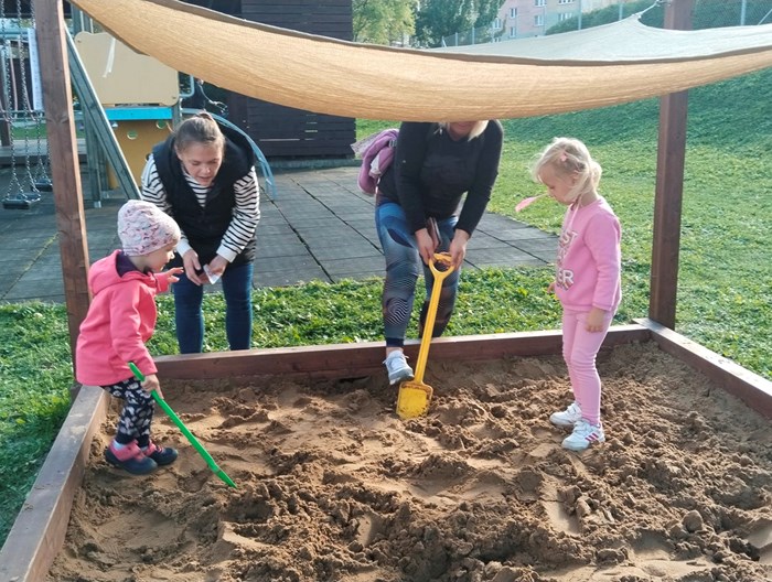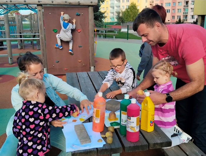 Odpolední akce na zahradě MŠ pro rodiče s dětmi.