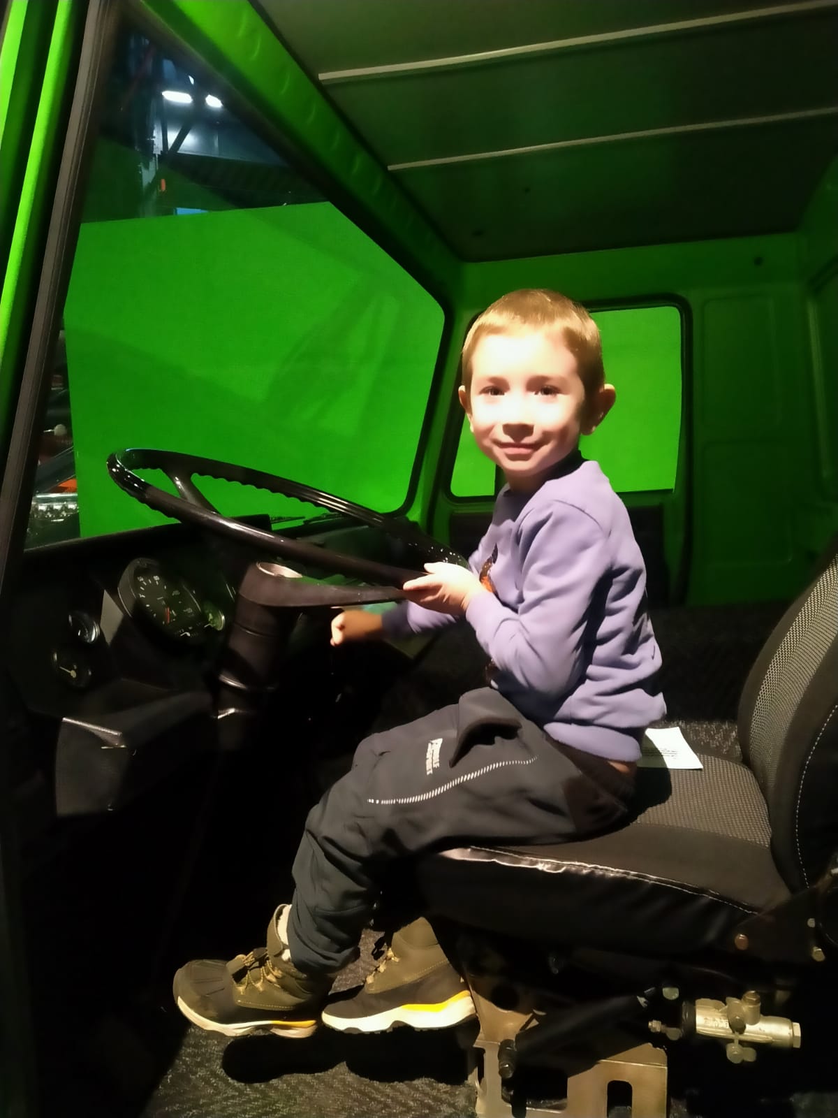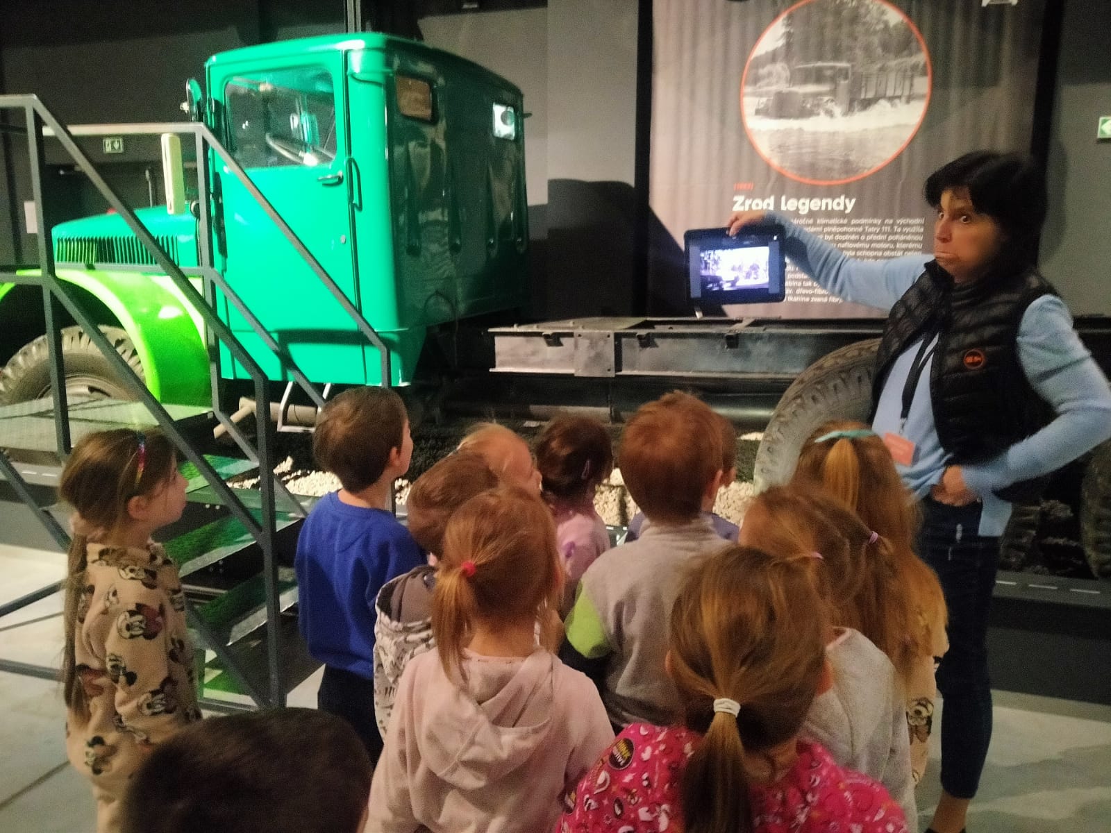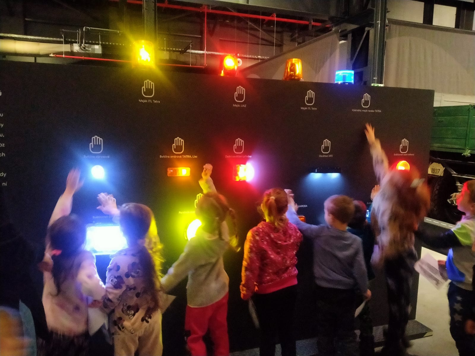 Vyzkoušely si nastartovat klikou auto, posadily se za volant nákladního vozu. Na závěr si vybarvily omalovánku.