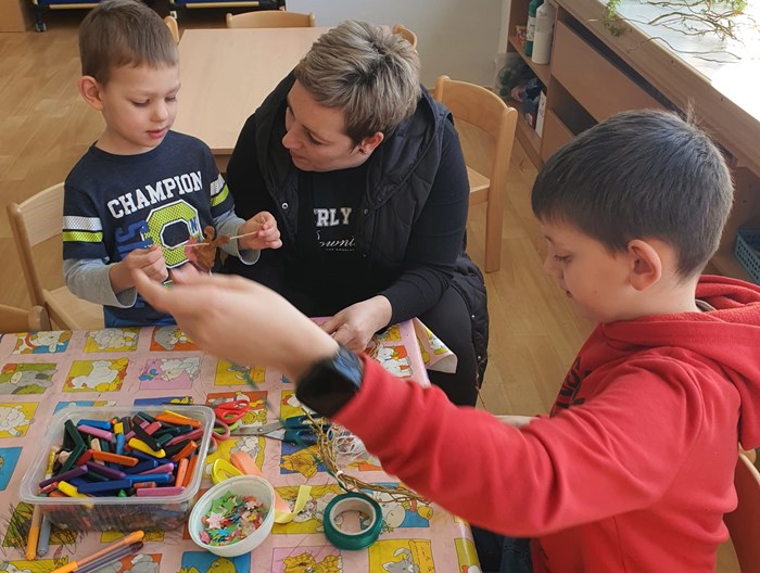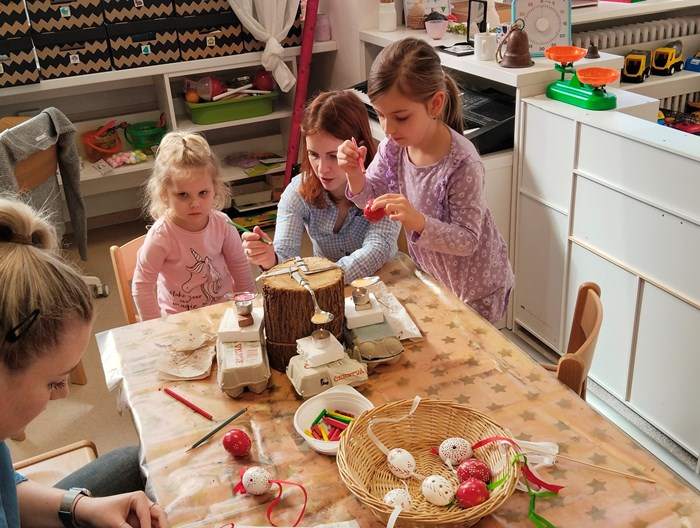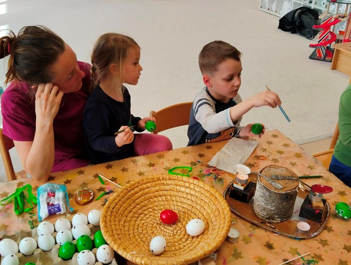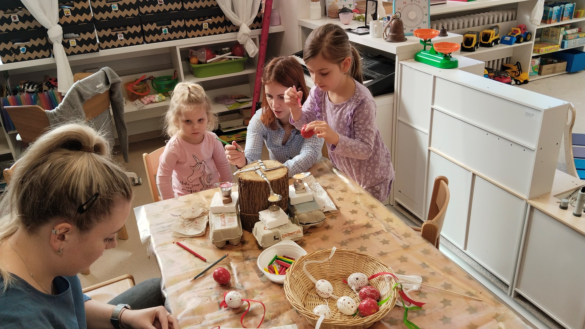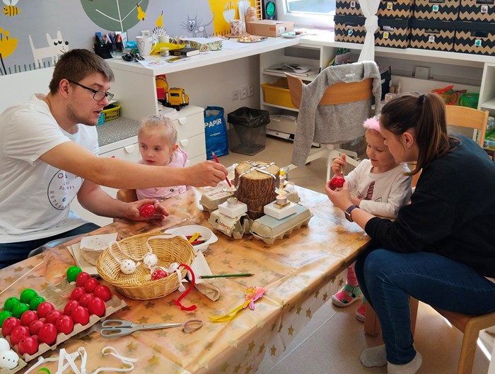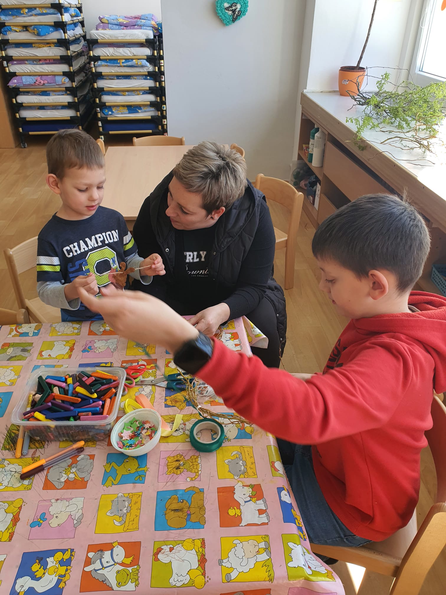 Společné vyrábění ozdob k blížícím se Velikonocům.