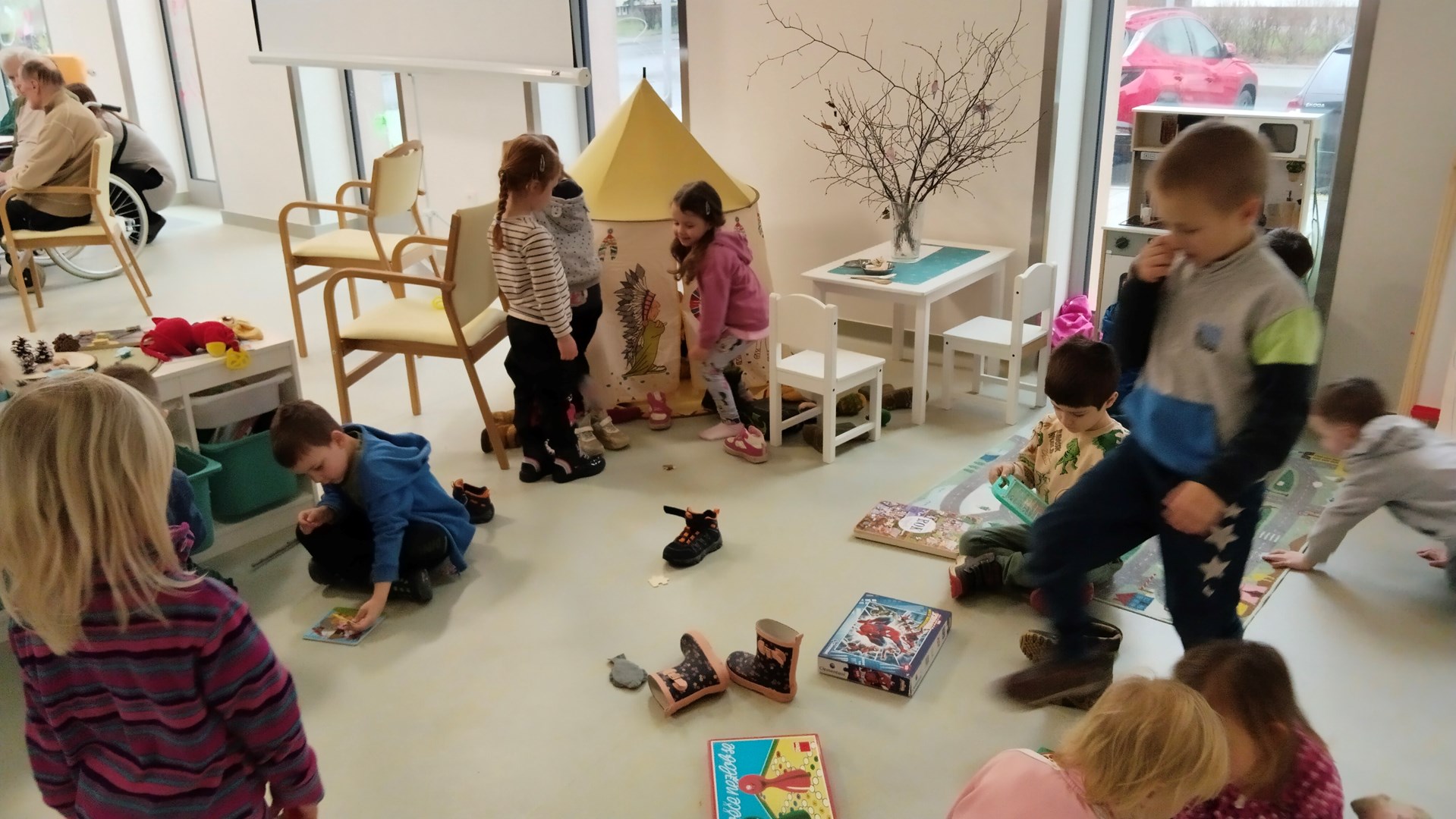 S dětmi jsme zavítali do Domova pod Bílou horou. Společně jsme nazdobili velikonoční věnec, malovali na okna a povídali si o všem co nás zajímalo.