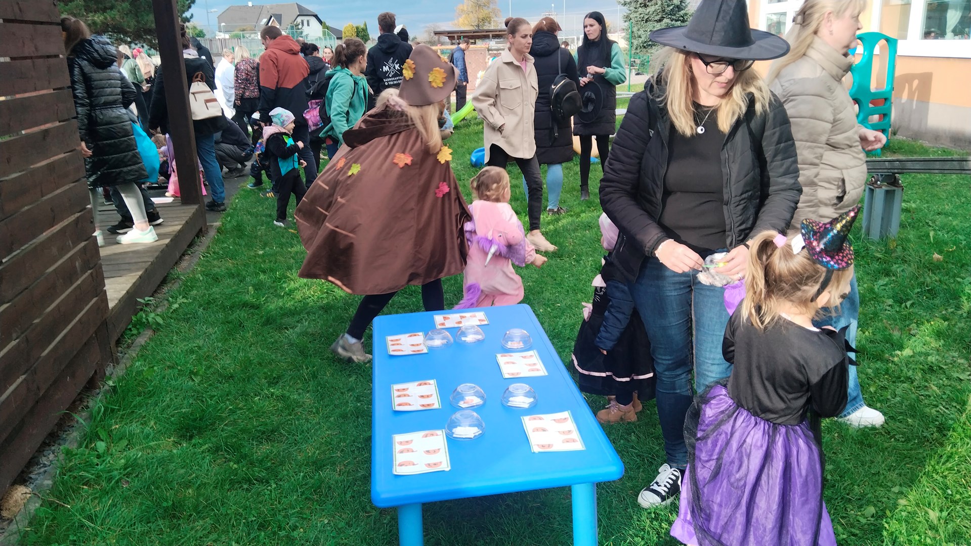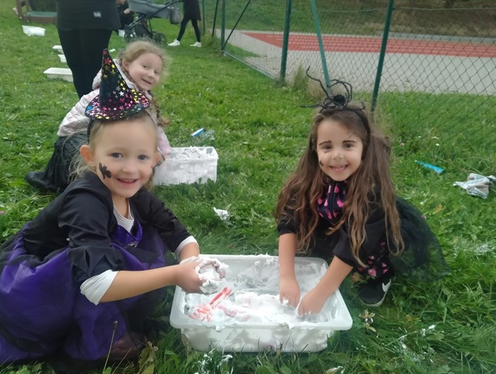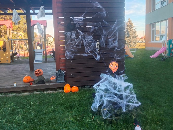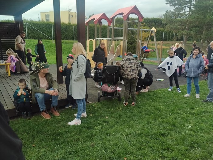V podzimním odpoledni se zahrada naší mateřské školy proměnila v kouzelné místo plné světýlek, masek a tajemné atmosféry. Konala se Halloweenská párty. Děti dorazily v rozmanitých kostýmech. Nechyběly čarodějnice, duchové, kostlivci….