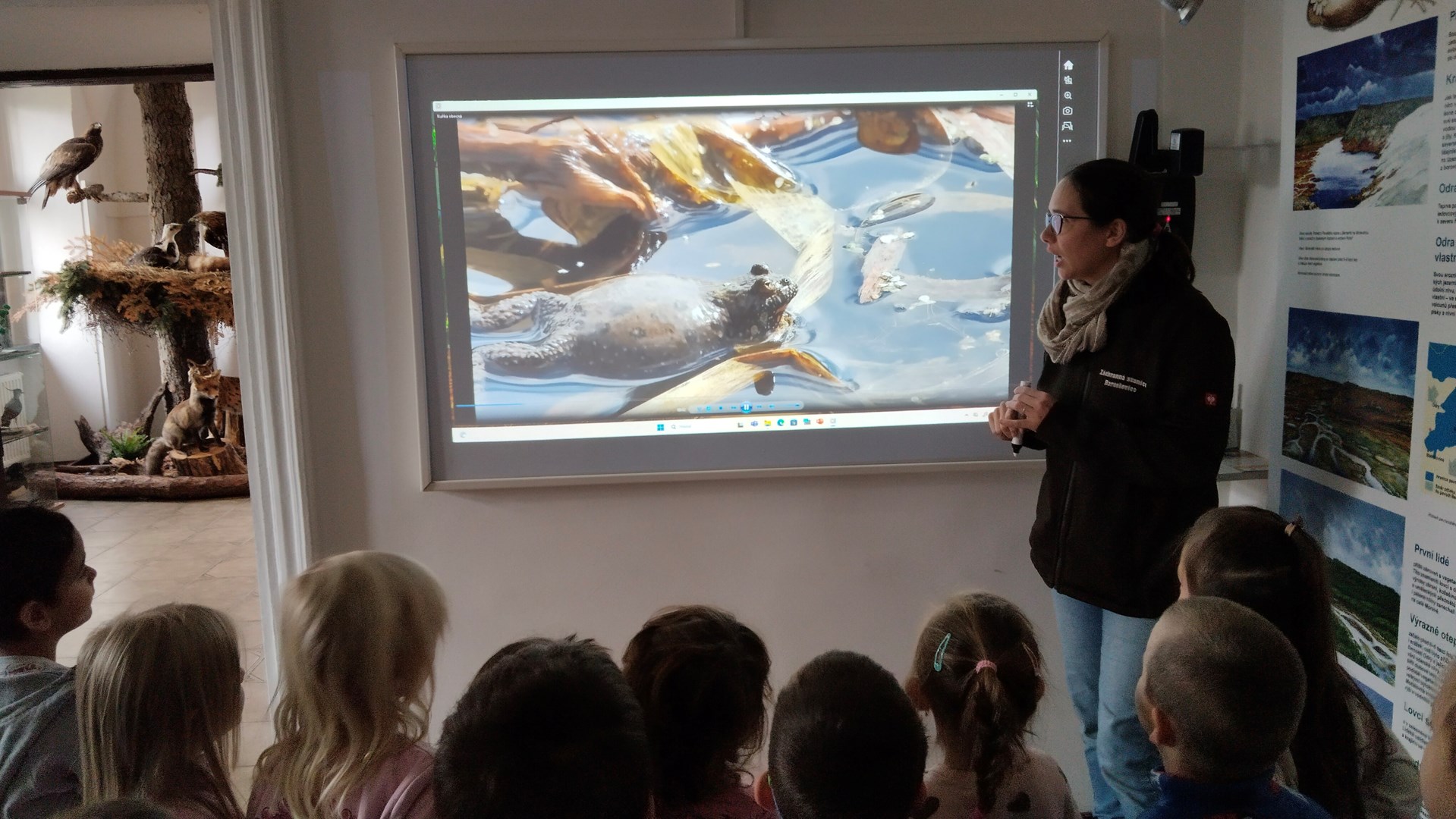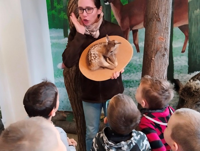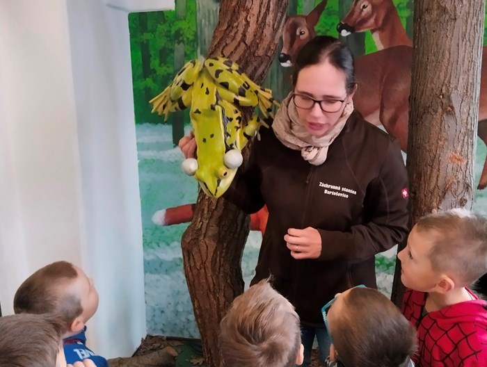 Následovala komentovaná prohlídka expozice živých zvířat. Děti měly možnost vidět zblízka různé druhy dravců, sov, vodních ptáků a dalších živočichů, kteří v zařízení zůstávají právě proto, že by ve volné přírodě měli malou šanci na přežití.