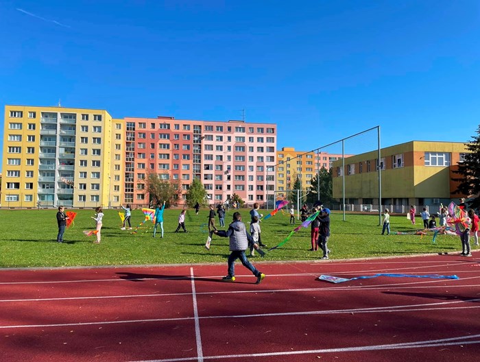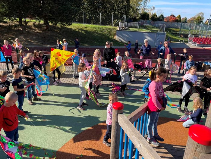 Děti čekalo nejen pouštění létajícího draka, ale i šifra mistra Drakolanda, skákání v pytlích, házení míčků do krabice, chůze s balónem ve dvojicích a v neposlední řadě drobné dárečky.