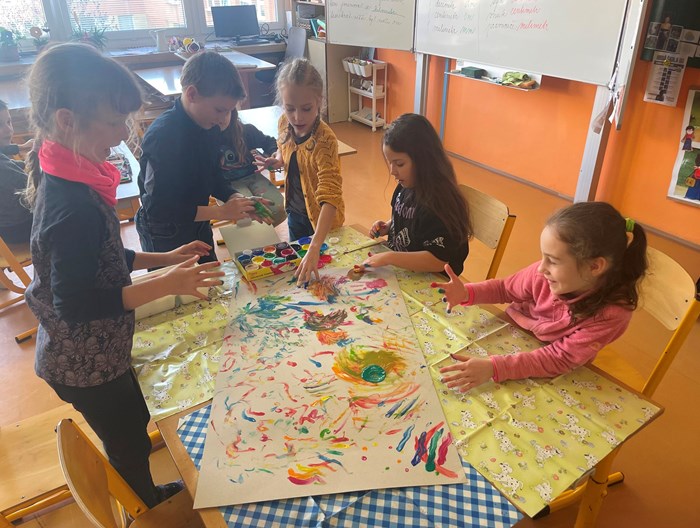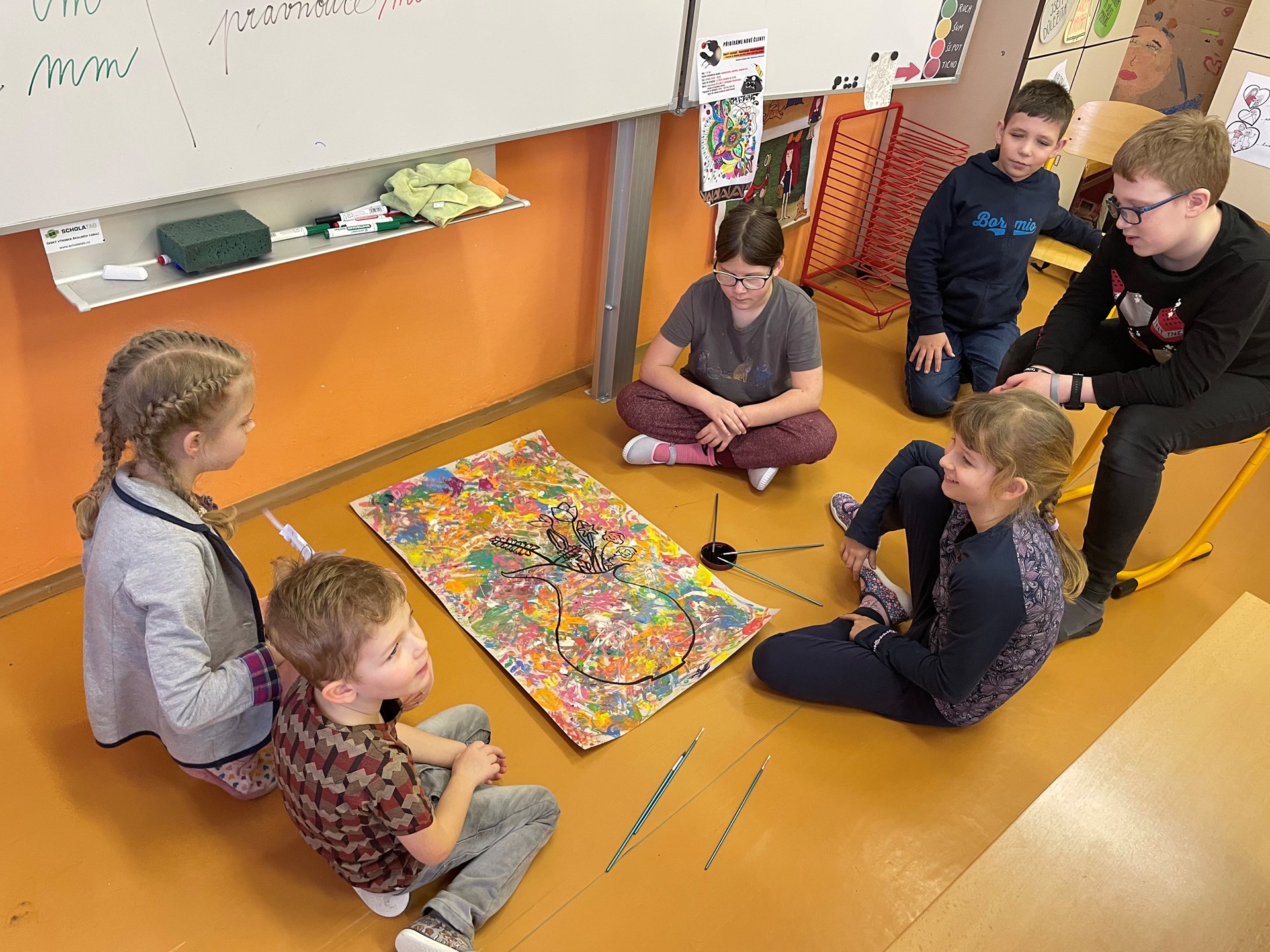 Včera si děti ze 4. oddělení ŠD vyzkoušely abstraktní malbu.