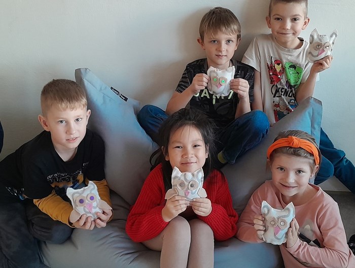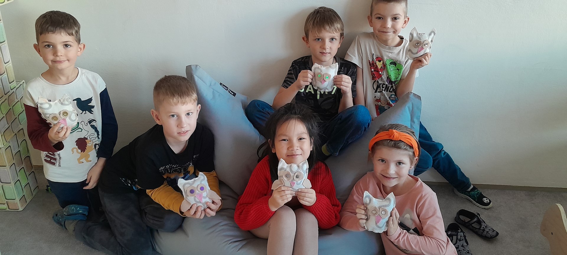 Děti z 5. oddělení družiny si celý týden povídaly o sově. Dozvěděly se, kde sovy žijí, čím se živí, které druhy sov známe. Vybarvovaly soví mandaly a nakonec si jednu látkovou sovičku vyrobily.