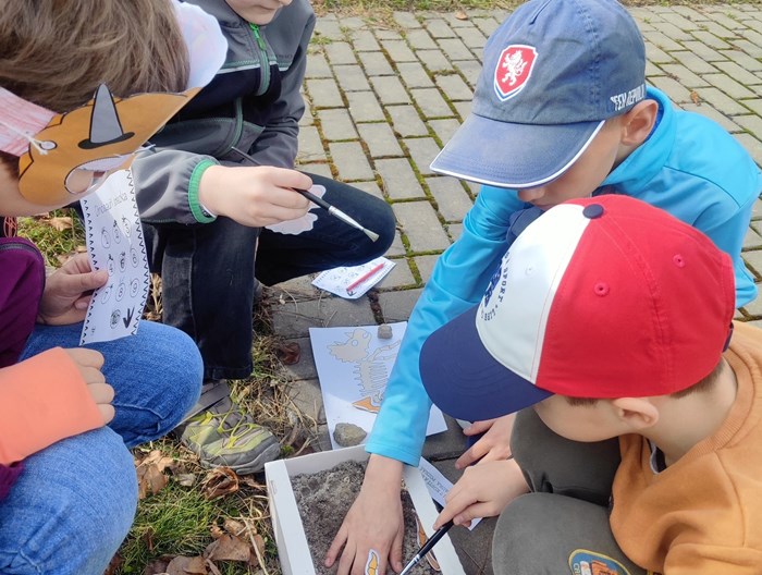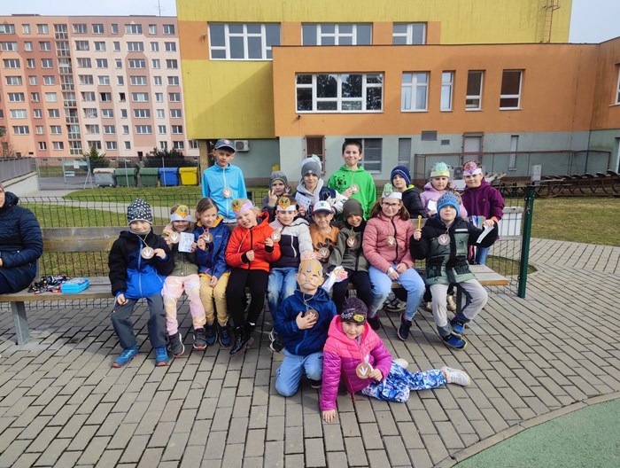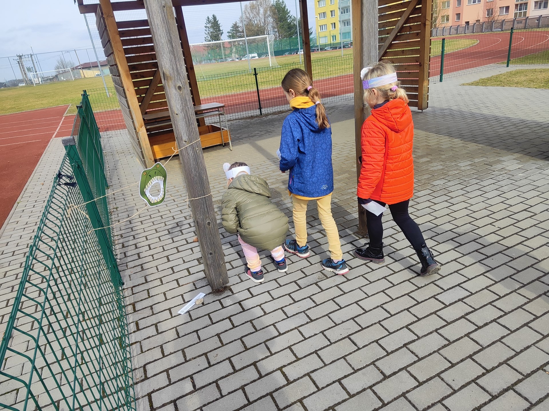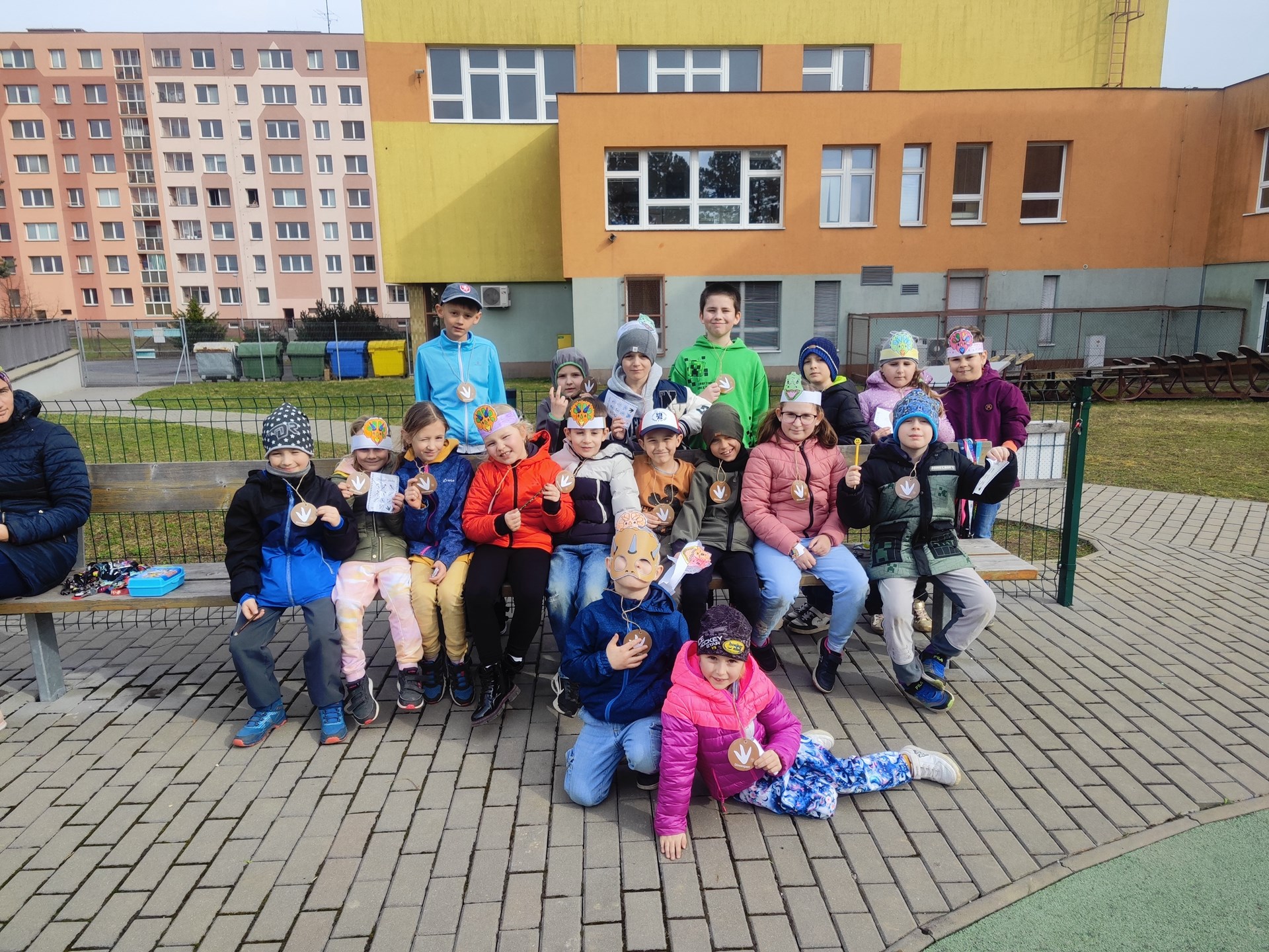 Celý první březnový týden jsme si v družině povídali o dinosaurech, vyráběli si dinosauří čelenky, náramky a masky, abychom mohli v úterý 11. 3. vyrazit na dinosauří stezku. Stezka měla deset úkolů. Museli jsme dinosaura nakrmit, vytrhnout mu zkažené zuby, rozpoznat druhy dinosaurů, najít jejich kosti v písku a složit je správně do kostry. Velice nás téma dinosaurů zaujalo, stezku jsme zdárně všichni dokončili a čekala nás medaile a sladká odměna. Už teď se těšíme na jarní stezku.
