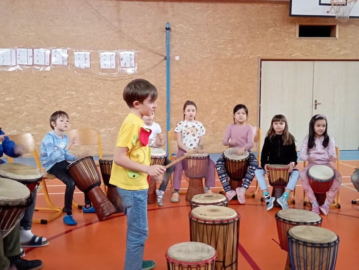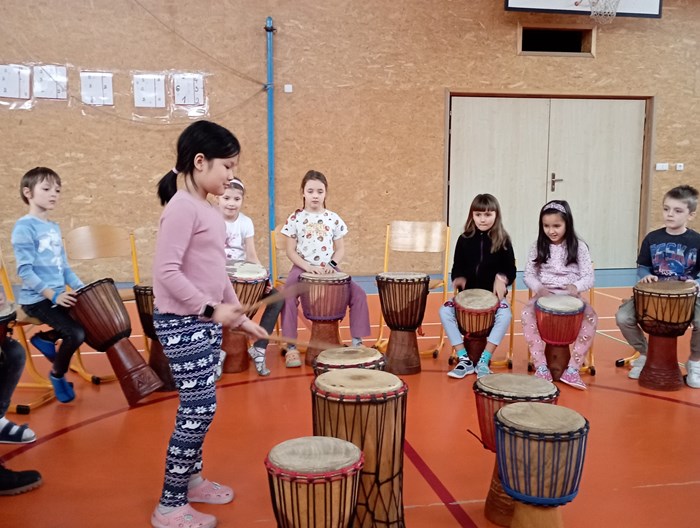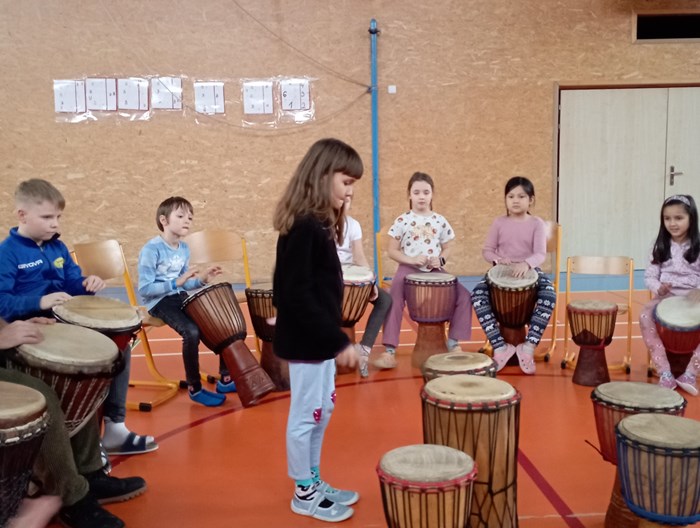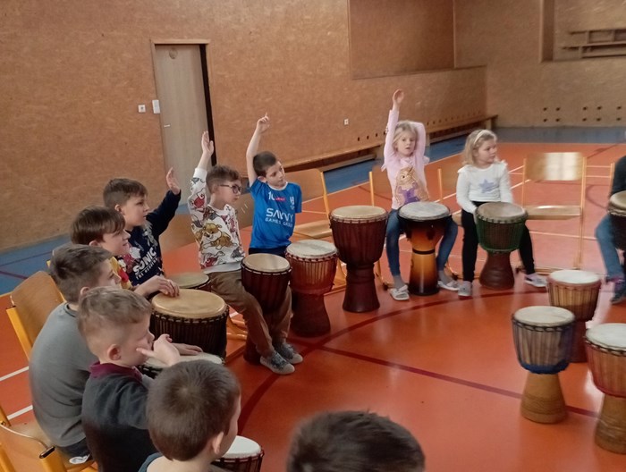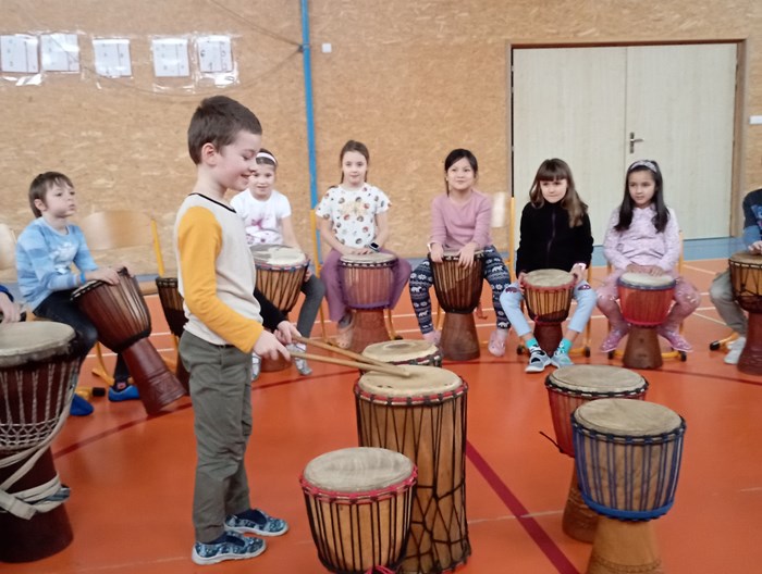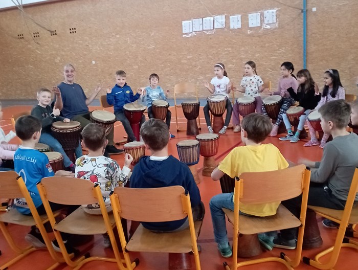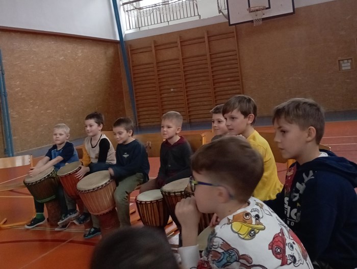 Z Ostravy k nám dorazil bubeník Pavel Nowak, který dětem osvětlil pojem rytmus. Zároveň jim povídal, odkud pochází nejlepší hráči na djembe a z čeho jsou bubny vyrobeny. Děti měly možnost vyzkoušet si základní rytmy nebo být kapelníkem celé skupinky a daný rytmus udávat. Jistě tato zkušenost všem účastníkům rozšířila obzor ve hře na hudební nástroje včetně bonusu, kterým se staly sdílené zeměpisné znalosti.