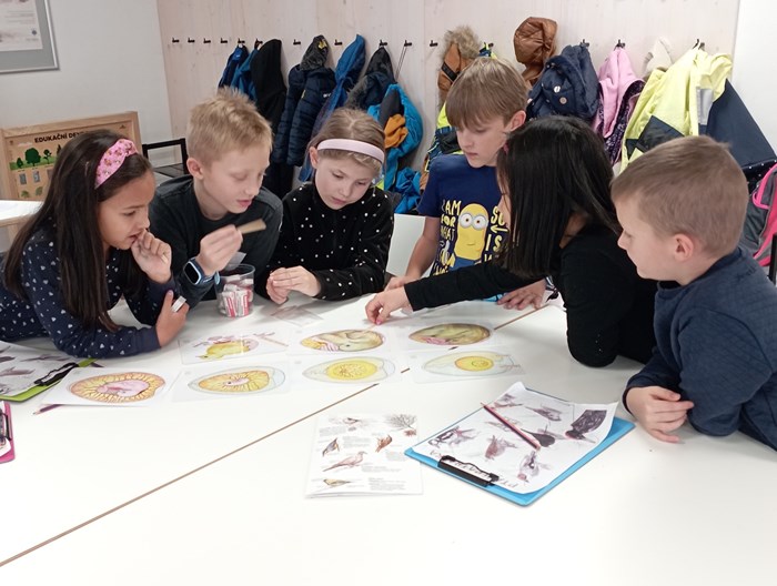 Ve středu 6. listopadu se 3. a 5. oddělení školní družiny vydalo na Hukvaldy do resortu Hubert. V krásném prostředí obklopeném oborou na děti čekal projektový den na téma „Ptáci“. Děti se dozvěděly, z čeho se skládá vajíčko, proč mají skořápky odlišnou barvu nebo kteří ptáci odlétají do teplých krajin. V přilehlém parku děti hledaly obrázky zástupců ptačí říše, přiřazovaly k nim jména a hrály běhací hry. Ve skupinách si zkusily práci s mikroskopem a pozorovaly pírko, což byla pro většinu premiéra a velice je to zaujalo. V závěru si každá skupina nabarvila sádrový odlitek ptáka, který si odvezla s sebou. Program byl velice poutavý, děti se vracely plné zážitků a nových poznatků.