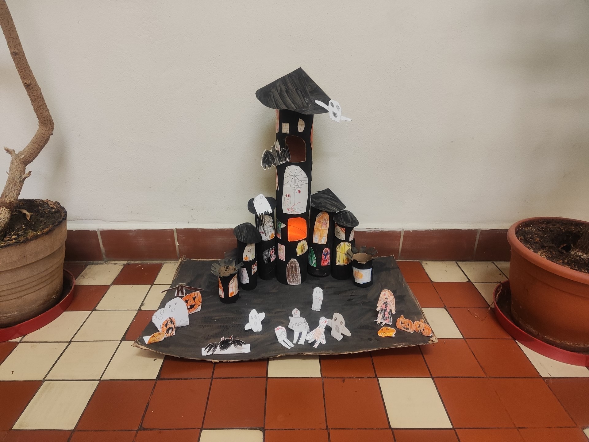 obrázky ale i chodbu v prvním patře. Společně jsme vyrobili Halloweenský