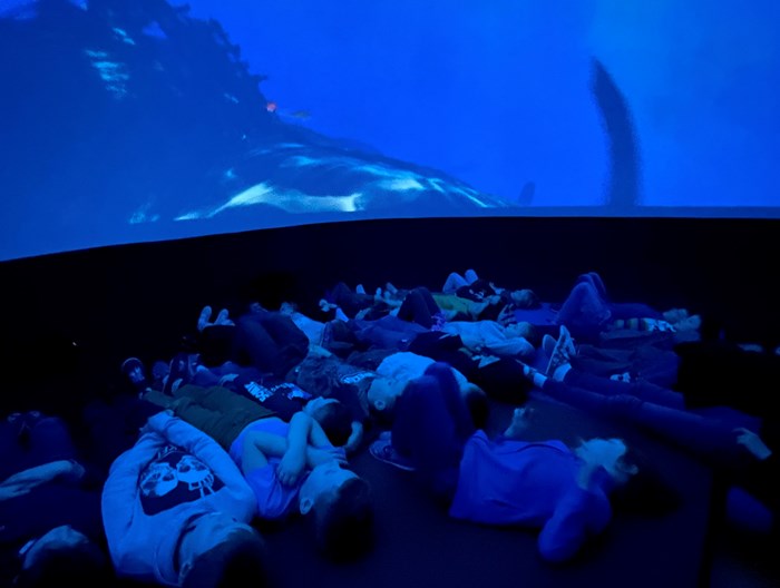 V pátek se v tělocvičně nafoukla velká kopule, ve které byl dětem promítán zvolený program. Témata byla pestrá - Stromy a broučci, Mořský svět a Astronomie pro děti. Dětem bylo zábavnou formou vysvětleno, co jsou to planety, co žije v moři a jakou roli hrají broučci na stromech. Kde jinde, pokud nejste venku, můžete pozorovat pozorovat noční oblohu a prožívat mořská dobrodružství než ve speciální kopuli, ke které se časem rádi vrátíme.