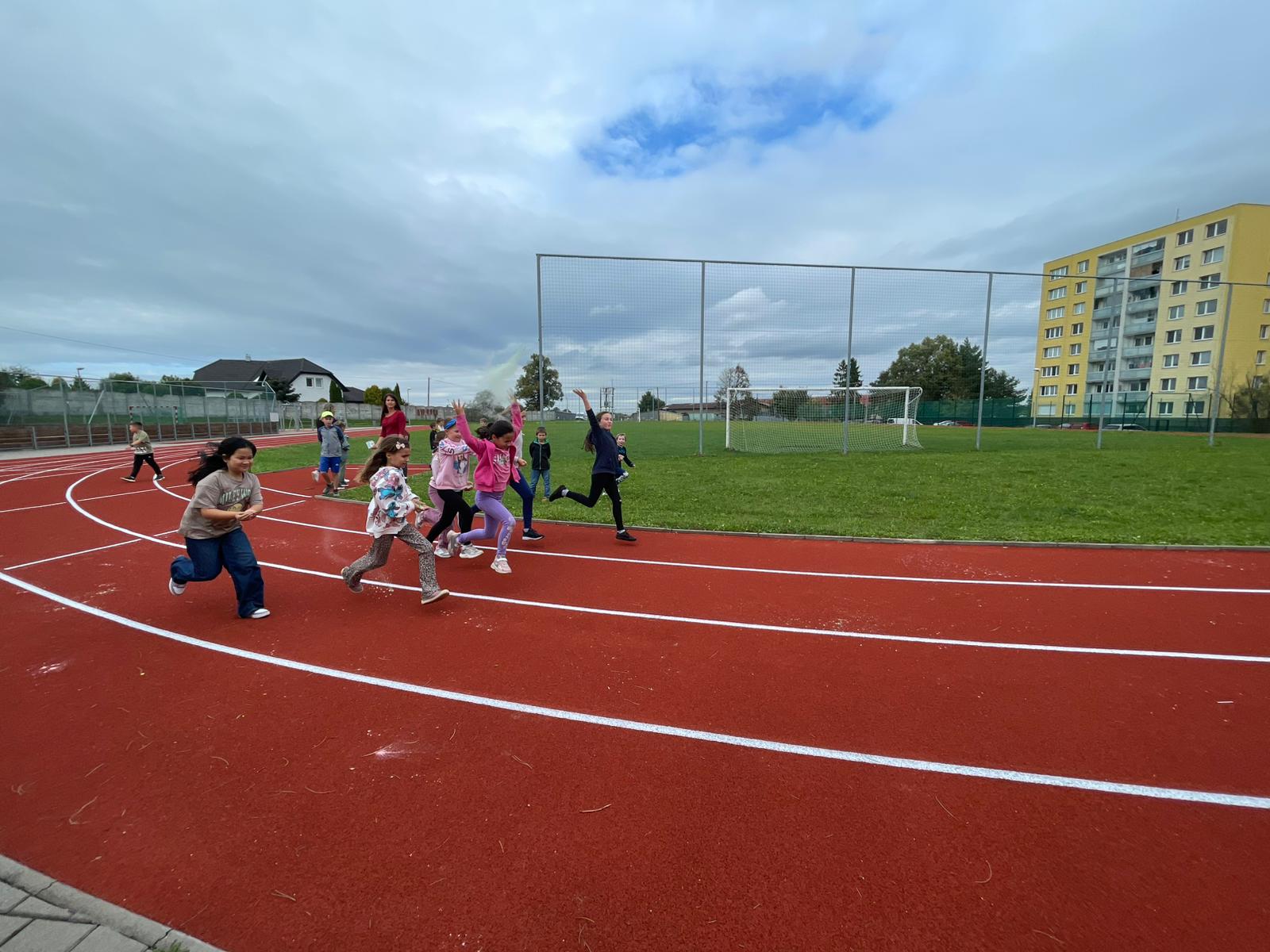 K barevnému běhu nám přálo počasí, jelikož nebylo ani horko ani zima. Žáci soutěžili po třídách, byli rozděleni na chlapce a dívky. Barevný prášek trousili po cestě, kdy jim byla vytyčena trasa tak, aby ji uběhli i ti nejmenší. Všichni tedy zvládli jedno kolo na hřišti. Užili si zábavu a zároveň utužovali své tělo i soutěžního ducha. Na konci je čekala sladká odměna v podobě nanuku.