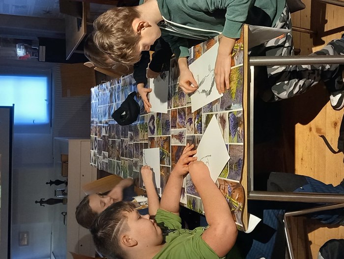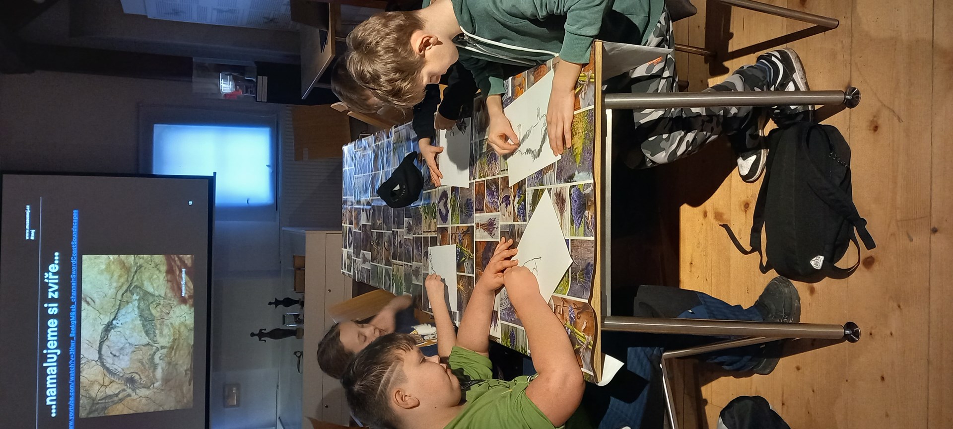 Dozvěděli jsme se, jak to bylo s objevením jeskyně a jak asi vypadal život jejích obyvatel. Mohli jsme si osahat věrné napodobeniny pravěkých nástrojů. Poté jsme navštívili Muzeum Šipka pod náměstím. Během vyprávění a projekce jsme malovali a tvořili jako pravěcí umělci. Své výtvory jsme si na památku odnesli domů.