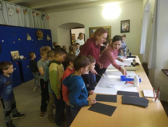 Vyzkoušeli si, jak se píše husím brkem a inkoustem, pomocí metody ex libris natiskli vlastní obrázkovou knihu s oblíbeným Krtečkem, kocourem Mikešem a Králíky z klobouku. Své výtvory si pak odnesli domů spolu se spoustou zážitků a nových informací.