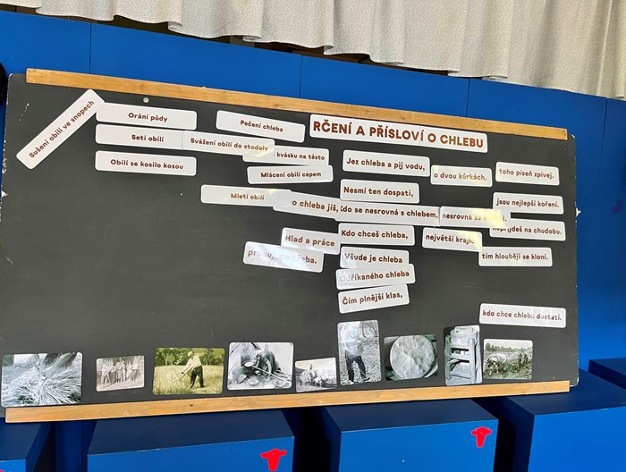 V dalším termínu navštívili sezónní program "Jak se peče chleba". Zde si všichni mohli prohlédnout různé druhy obilovin, seznámit se s nástroji, kterými se kdysi sklízelo a mlátilo obilí.