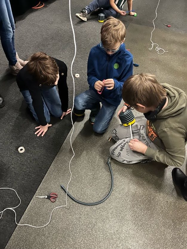Žáci 5. B se vydali na nezapomenutelnou exkurzi do Světa techniky, která se stala skutečnou odyseou objevování a učení. Cílem exkurze bylo nejen prostřednictvím filmové projekce poznat tajemství letu balónu, letadla a rakety, ale také se zapojit do praktických aktivit, které z žáků udělaly malé inženýry a astronauty. Celý zážitek začal emocionálním a edukačním filmem, který žákům otevřel bránu do fascinujícího světa techniky. Po projekci filmu následovala část, kdy se žáci sami stali tvůrci a průvodci vlastního technického dobrodružství. Sestavili odpalovací rampu z dostupných materiálů a nafukovacího balónku, který se stal jejich vlastní "raketou". Tato aktivita nejen podporovala týmovou práci, ale také pomáhala žákům pochopit základy aerodynamiky a principy letu. Nakonec přišel vrchol – vlastní malé vyslání raketové mise. Balónek, nyní proměněný v raketu, byl opatrně umístěn na odpalovací rampu. Napětí vystupňovalo vzrušení, když žáci sledovali, jak jejich "raketa" vyletěla do vzduchu s radostným hlaholem. Prožitky ze Světa techniky nekončily jen u rakety. Žáci se také dozvěděli zajímavosti o historii letu na Měsíc, sledovali prezentace a měli příležitost pokládat otázky. Exkurze do světa techniky tak nejen rozšířila jejich znalosti o technických zařízeních, ale také podnítila jejich zvědavost a zájem o vědu a techniku. Celá exkurze byla nejen zábavná, ale také vzdělávací. Každý krok na této cestě byl nejen krokem k vědeckému poznání, ale také zážitkem, který zanechává nezapomenutelné vzpomínky a podněcuje další objevování tajemství techniky.
