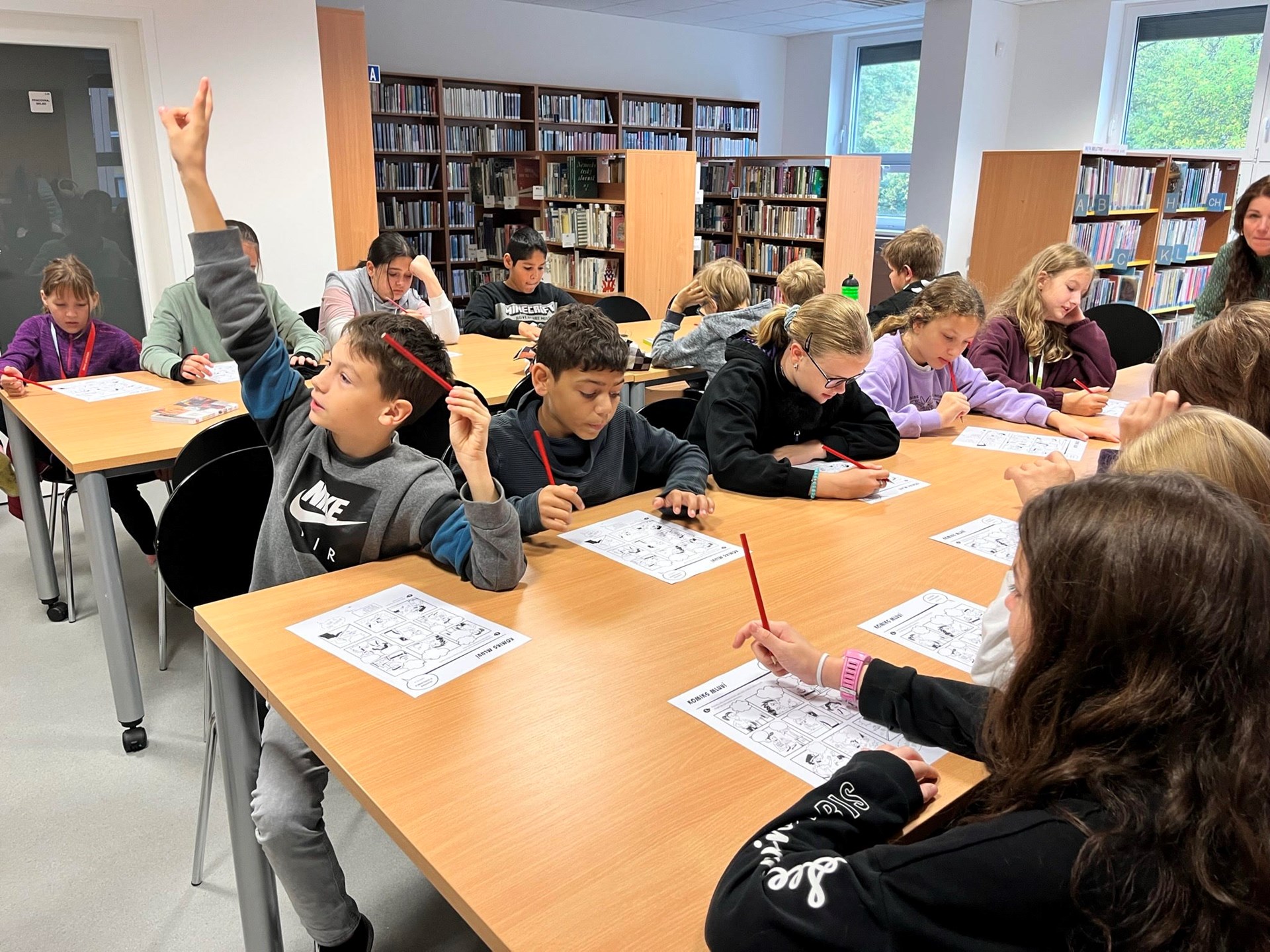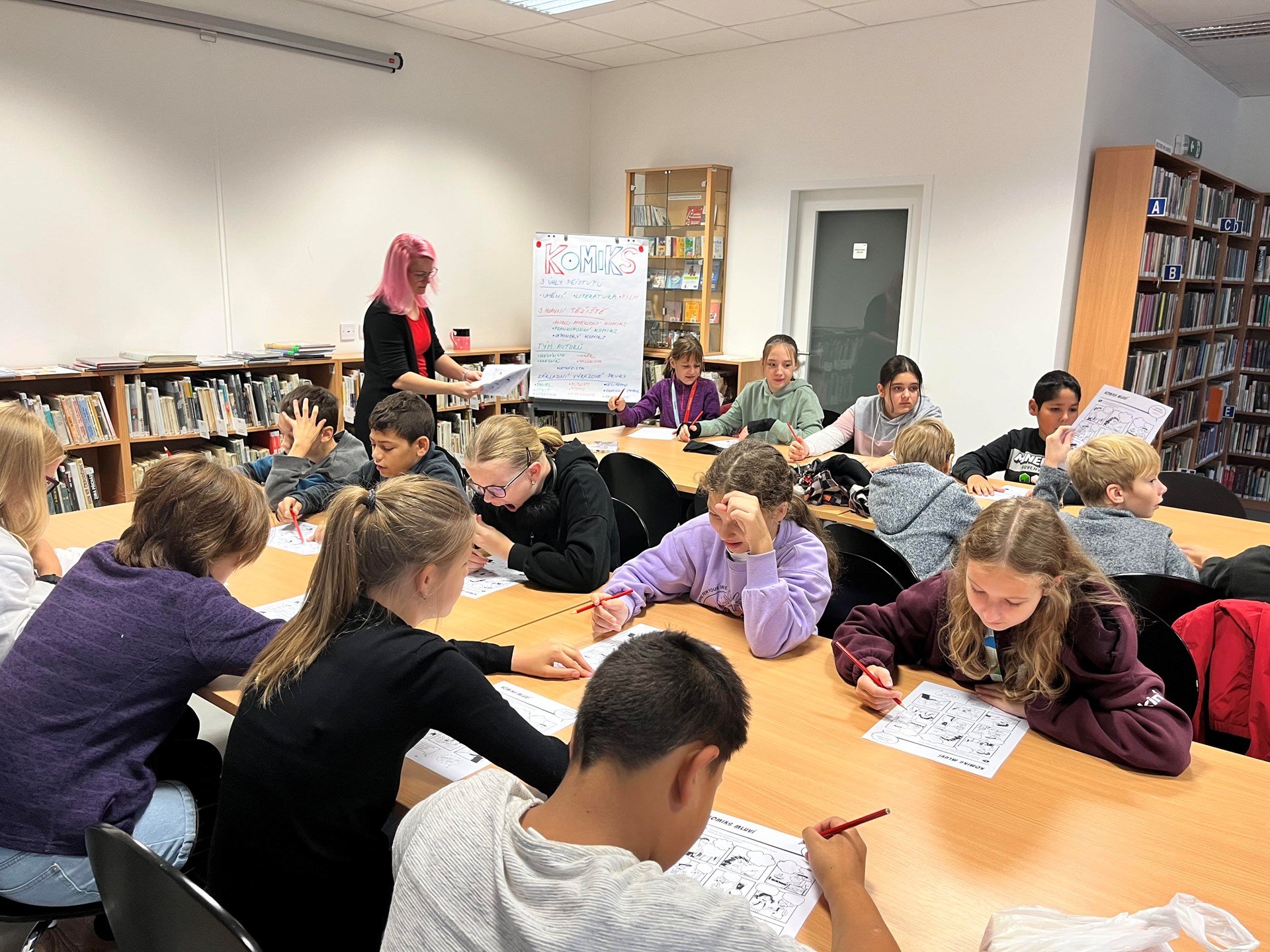 a poučnou formou žáci 5. B na zajímavé besedě v místní knihovně na téma „Komiks“.