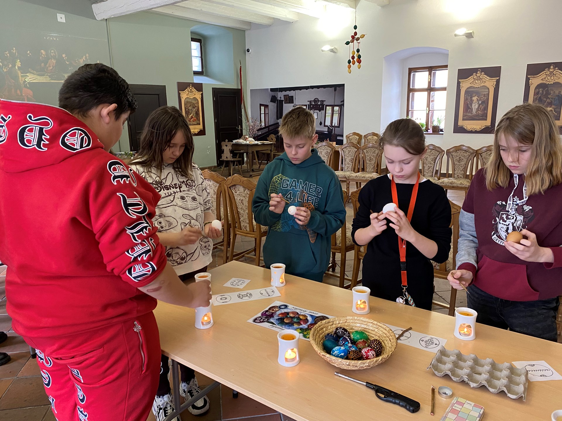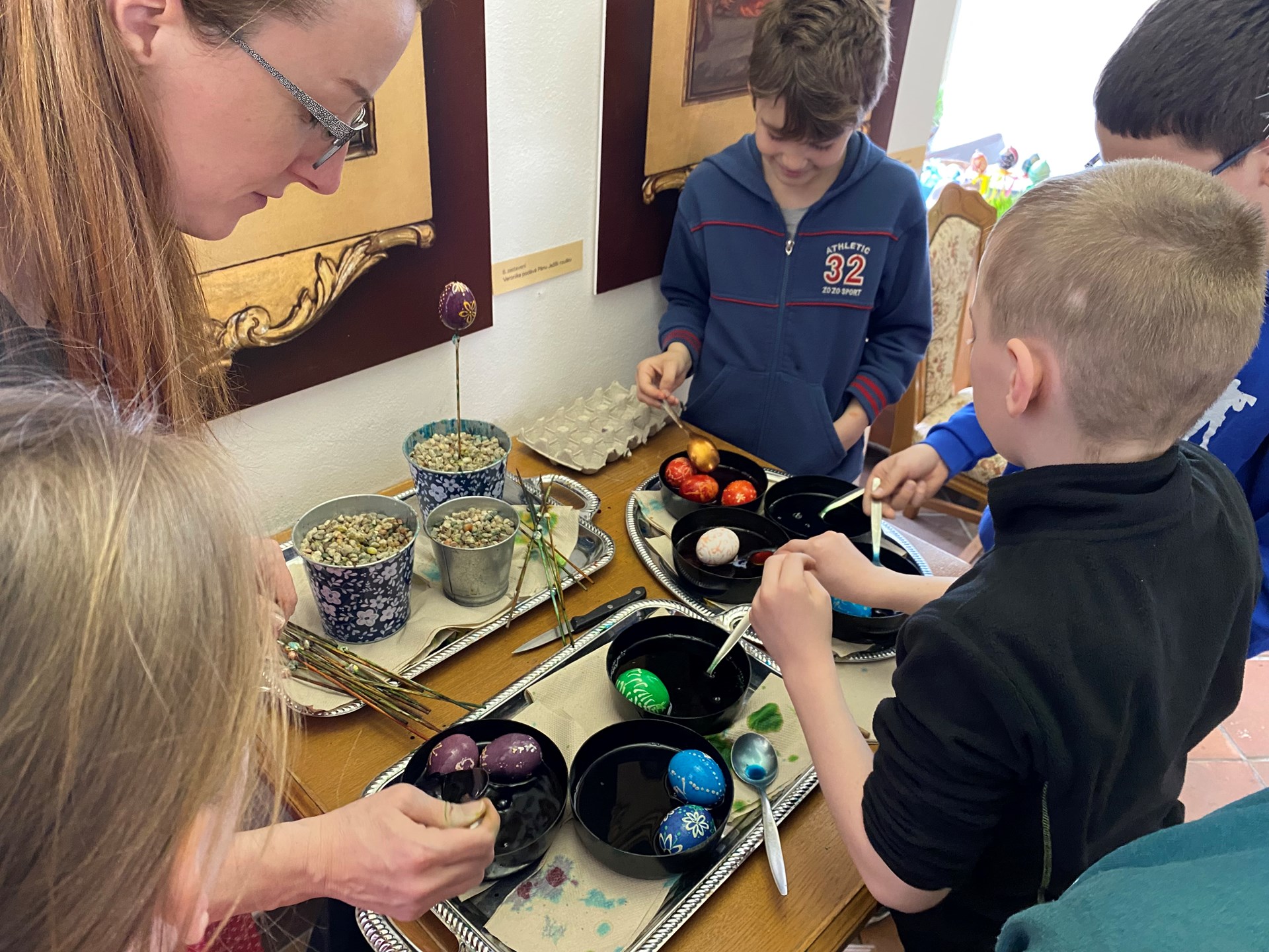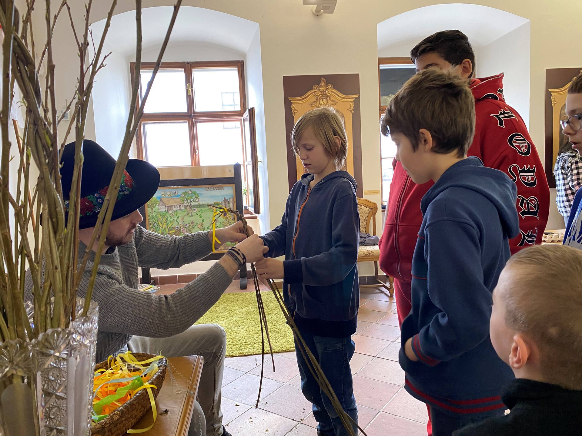 Velikonoce už klepou na dveře, a tak se žáci 5.A vydali v pondělí 25.3.2024 navštívit muzeum Žerotínský zámek v Novém Jičíně. Zde byl pro ně připraven krásný velikonoční program Davajtě červené vajco. Děti si vyzkoušely zdobení vajíček voskem či barvení bylinkami, pletení tatarů, vyzkoušely si i výrobu tradiční Mařeny. Také se dozvěděly informace o různých zvyklostech tohoto období, jako je vynášení Mařeny na konci zimy, přinášení májky, svěcení kočiček nebo pečení beránka či jidášů.