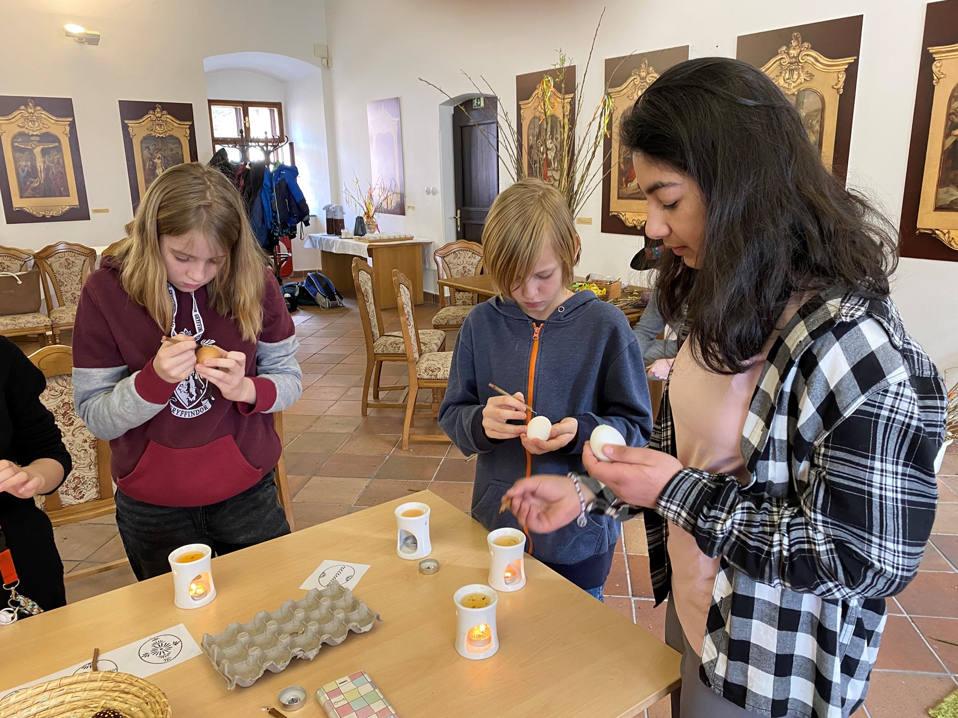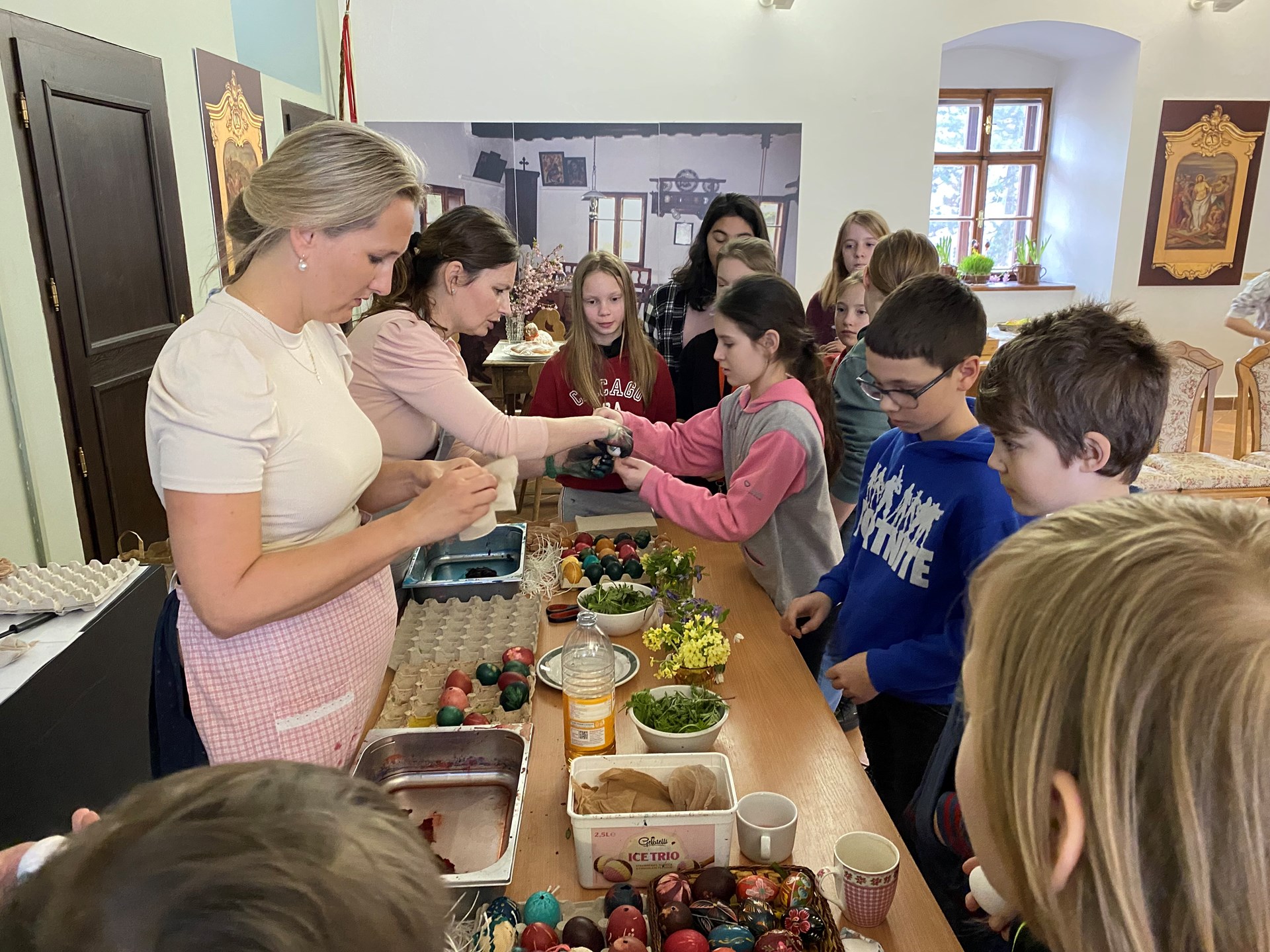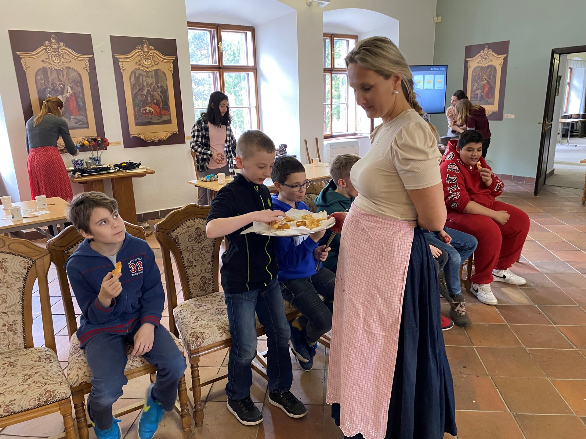 Velikonoce už klepou na dveře, a tak se žáci 5.A vydali v pondělí 25.3.2024 navštívit muzeum Žerotínský zámek v Novém Jičíně. Zde byl pro ně připraven krásný velikonoční program Davajtě červené vajco. Děti si vyzkoušely zdobení vajíček voskem či barvení bylinkami, pletení tatarů, vyzkoušely si i výrobu tradiční Mařeny. Také se dozvěděly informace o různých zvyklostech tohoto období, jako je vynášení Mařeny na konci zimy, přinášení májky, svěcení kočiček nebo pečení beránka či jidášů.