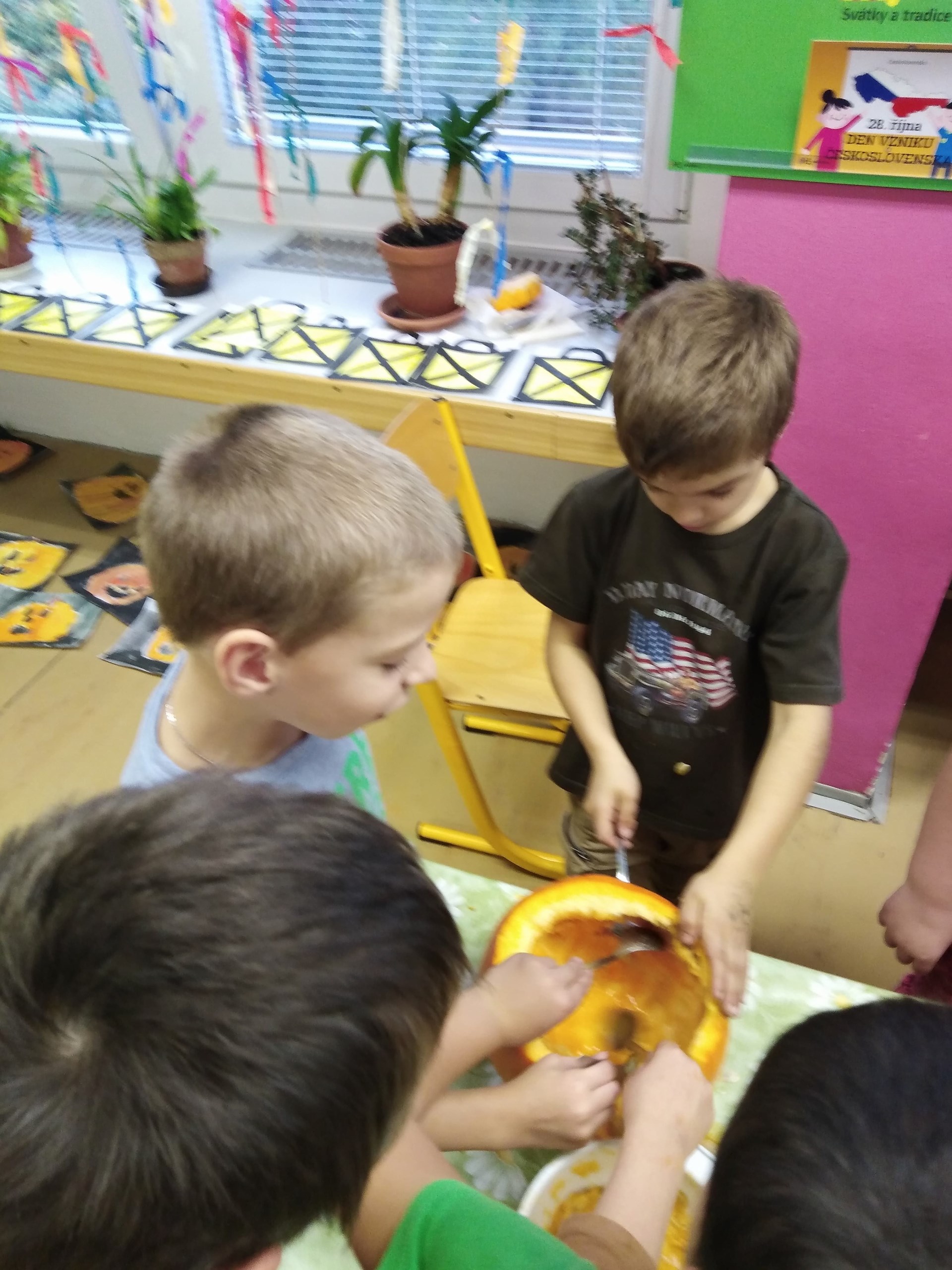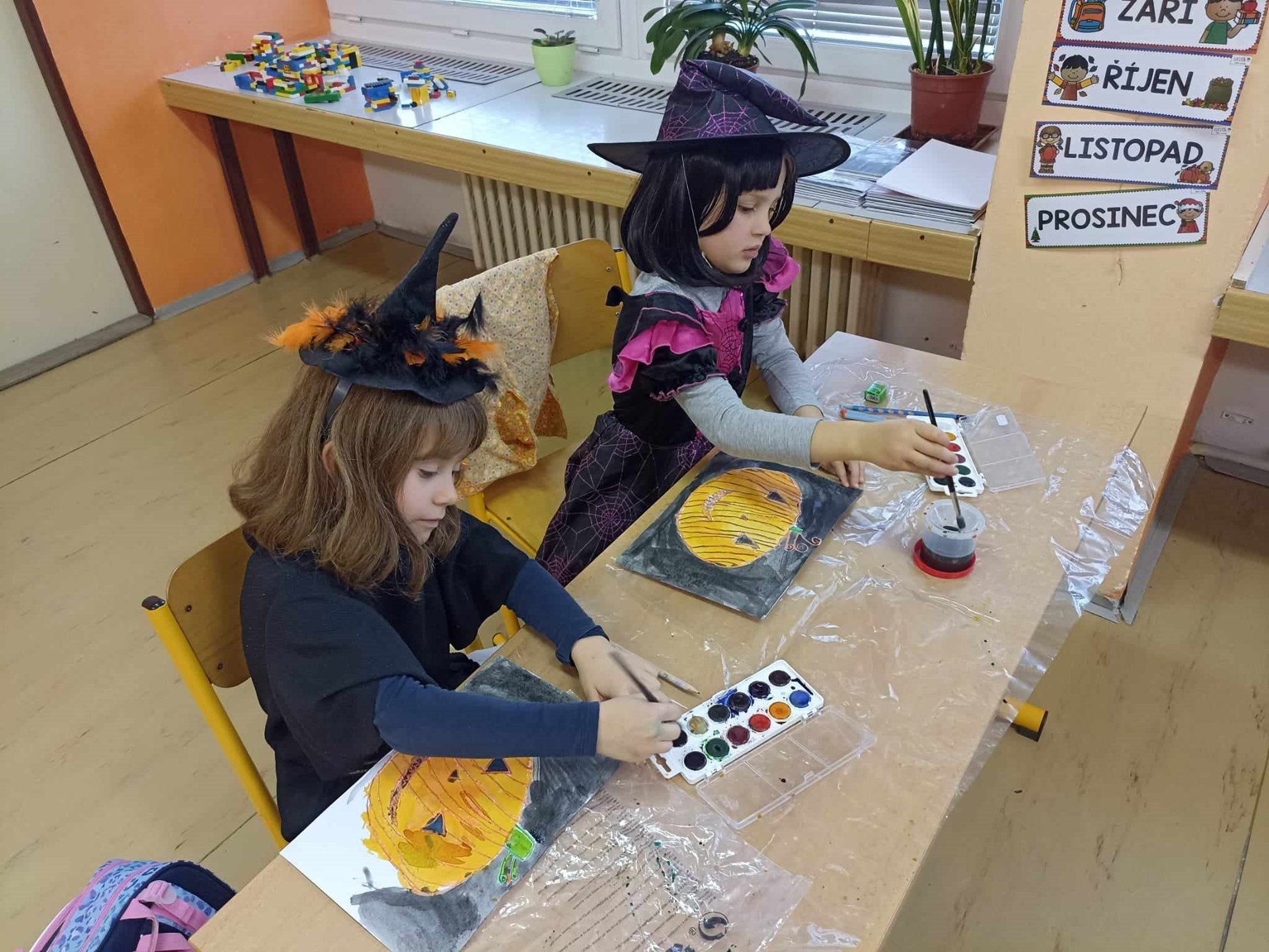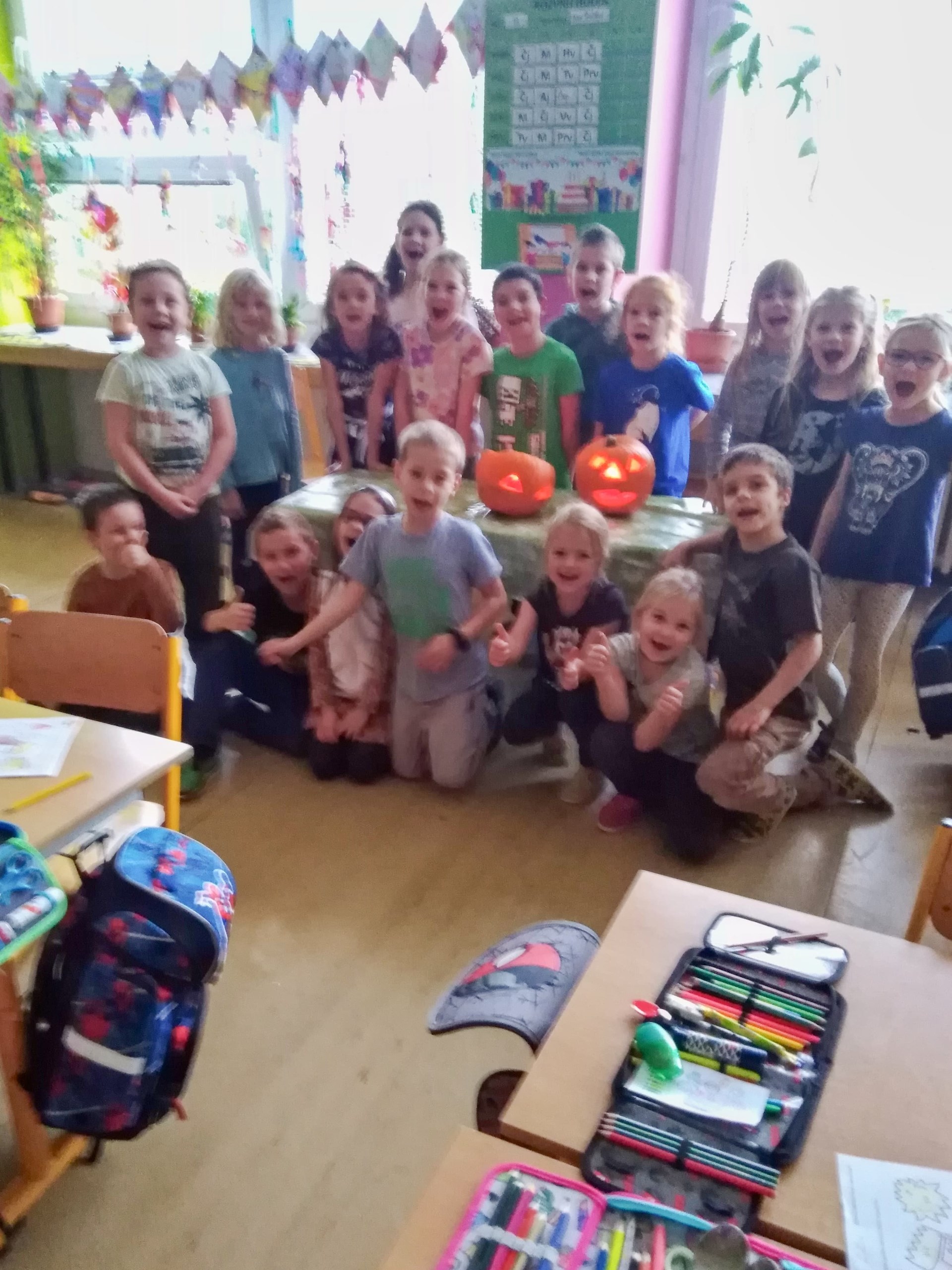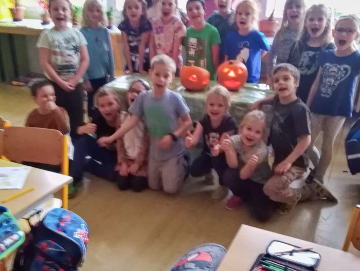 V minulém týdnu se třídy 1.A, 1.B i 1.C měly možnost seznámit s tradičními zvyky, ale i pověrami, které se pojí k Dušičkám. Při vyhledávání písmenek jim pomáhal duch Ducháček, v matematice se jim ukázal hodný upír. Prvňáčci si zkusili vlastní dýně namalovat, někteří dokonce i vydlabat - a že to nebyla lehká práce!