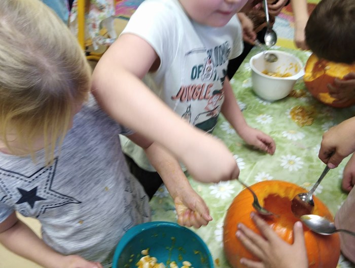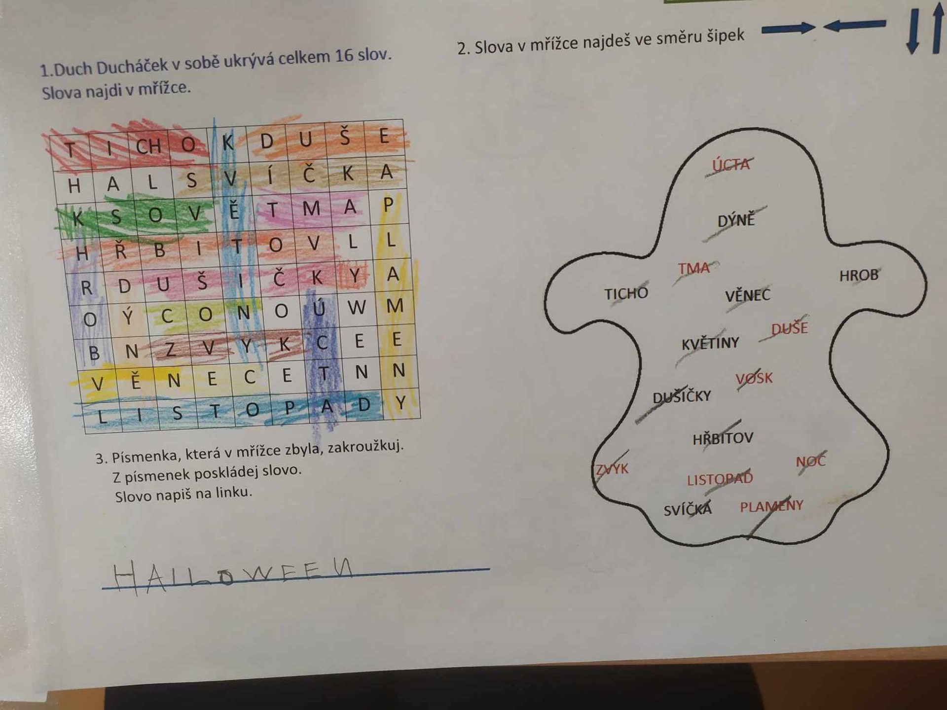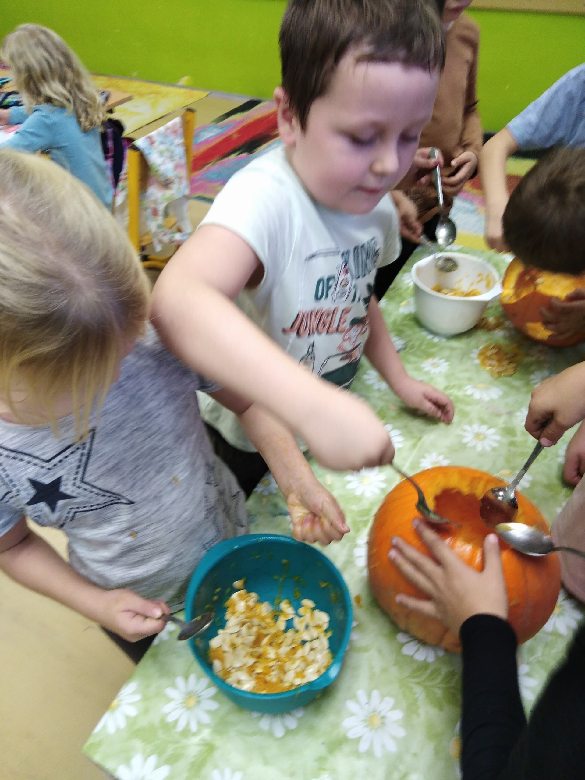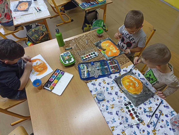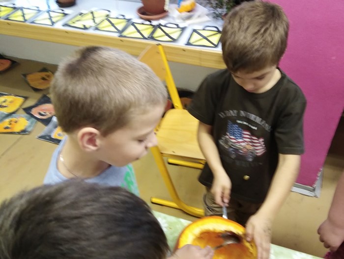 V minulém týdnu se třídy 1.A, 1.B i 1.C měly možnost seznámit s tradičními zvyky, ale i pověrami, které se pojí k Dušičkám. Při vyhledávání písmenek jim pomáhal duch Ducháček, v matematice se jim ukázal hodný upír. Prvňáčci si zkusili vlastní dýně namalovat, někteří dokonce i vydlabat - a že to nebyla lehká práce!