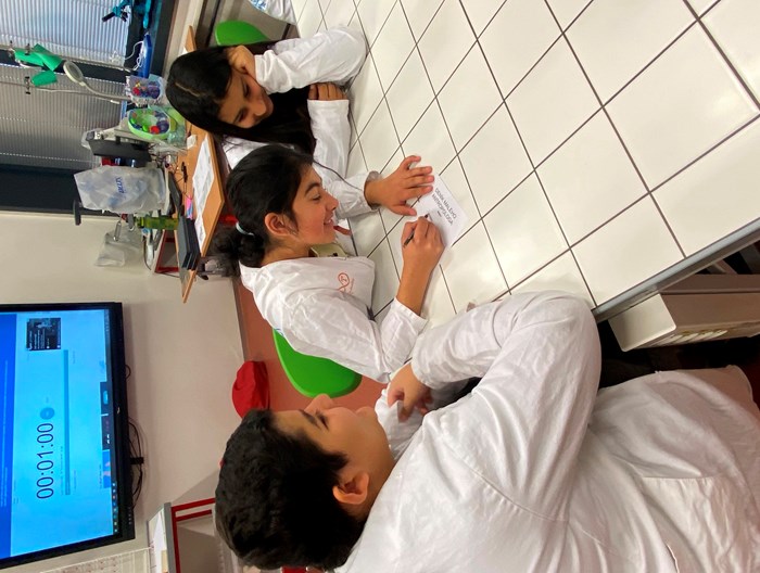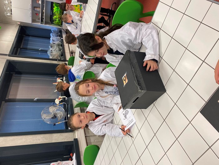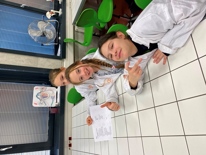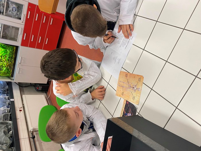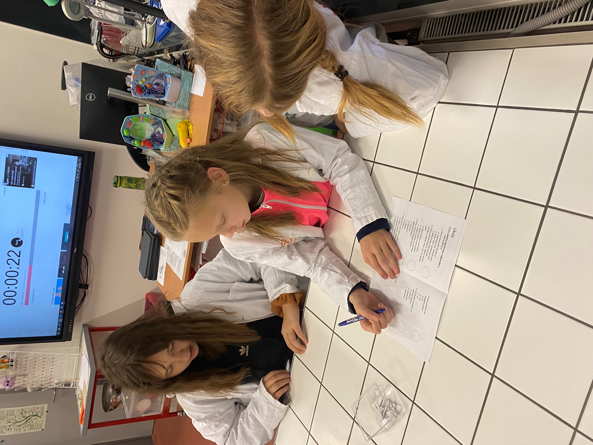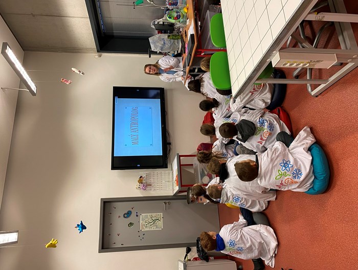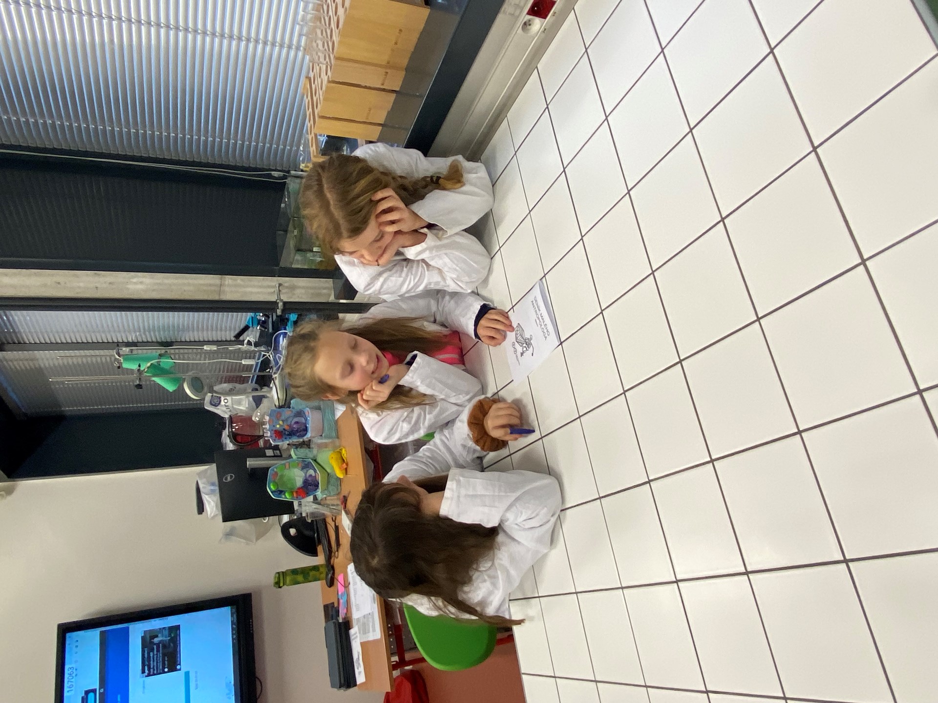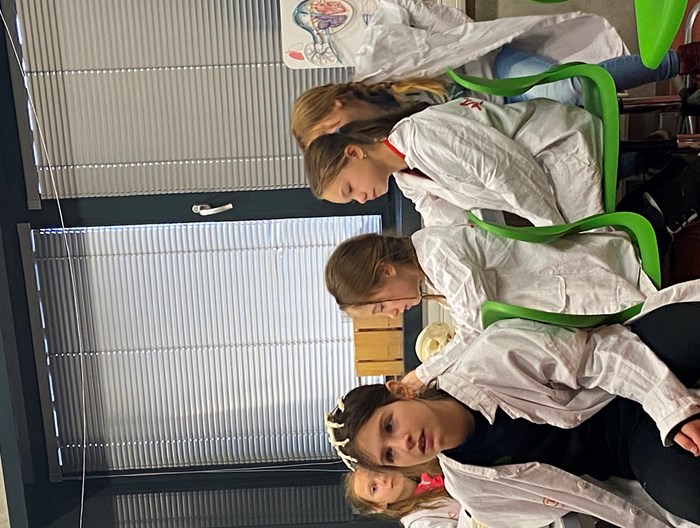Tématem dnešního objevování bylo lidské tělo. Kluci a holky naší třídy se na hodinu a půl proměnili v malé antropology. Oblékli si bílé pláště a v laboratoři pod vedením lektorky Alžběty Perischové sestavovali