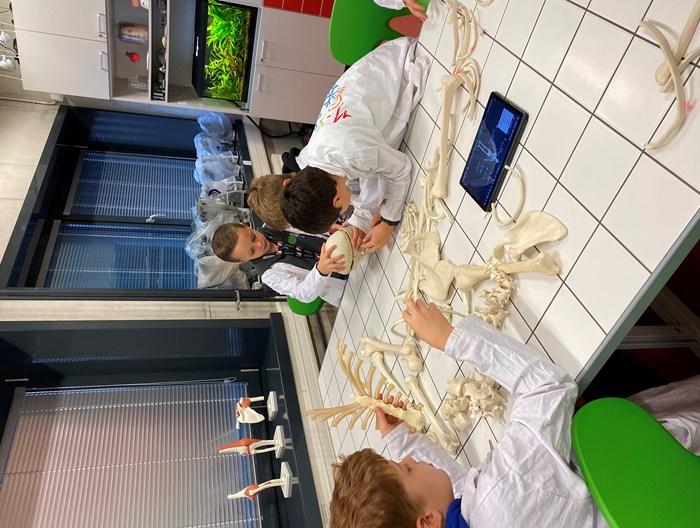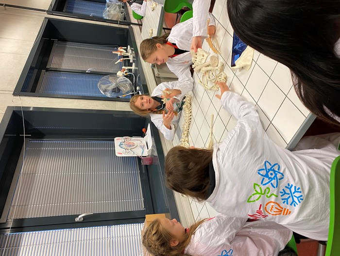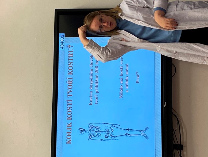z jednotlivých lidských kostí "kostíka Karla". Výukový program byl velmi zábavný, nechyběly vědomostní soutěže v družstvech ani práce s aplikacemi v tabletech, díky kterým se děti dozvěděly mnoho nových a zajímavých informací.