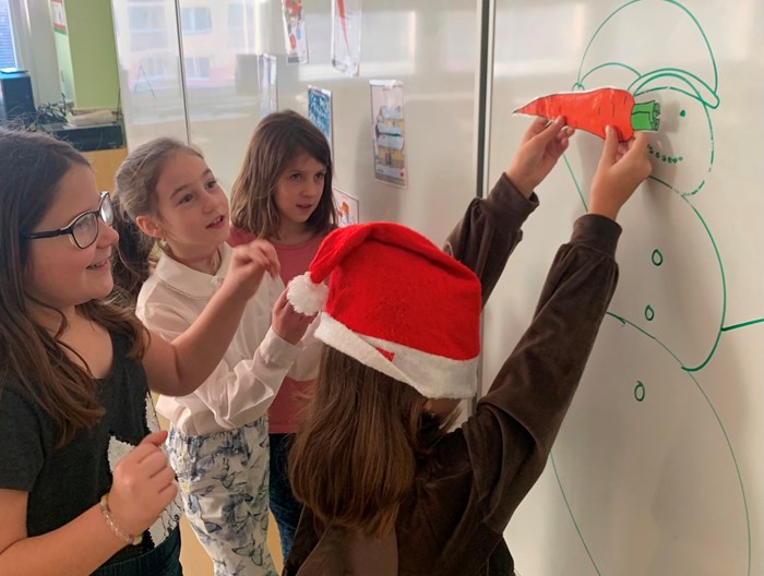 Ve třídách Světa vzdělání se učíme se Stevem, Maggie, jejich zábavnými videi a taky se zábavnými aktivitami. Vánoce klepou na dveře, proto nesmí chybět Vánoční lekce se speciálními hrami. Tento týden hrajeme například “Pin the carrot!”. Dokázali byste se zakrytými oči, pouze za pomocí kamarádů a jejich instrukcí “Up! Down! Left! Right! Stop!” nasadit sněhulákovi správně nos? Vypadá to snadno, ale mrkev někdy končí na nečekaných místech.