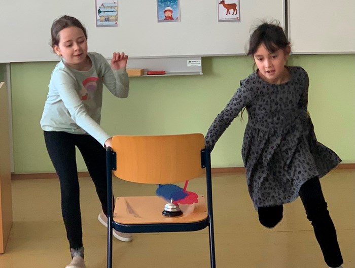 A co teprve závod s plácačkami. Nesmí Vám chybět mrštnost šelmy a postřeh leoparda. Kdo zvládne dříve plácnout na správnou kartičku, zazvonit na zvonek a posadit se na židli? Často týmy fandí tak, že o nás ví celá škola a rozhoduje jen setina sekundy!
