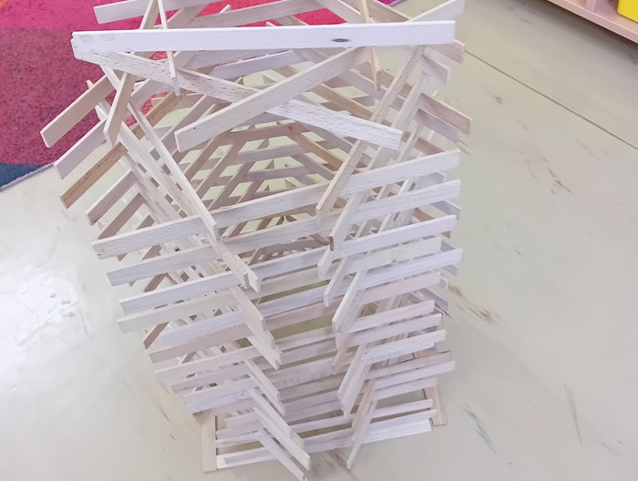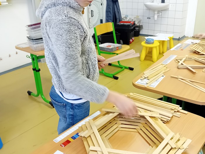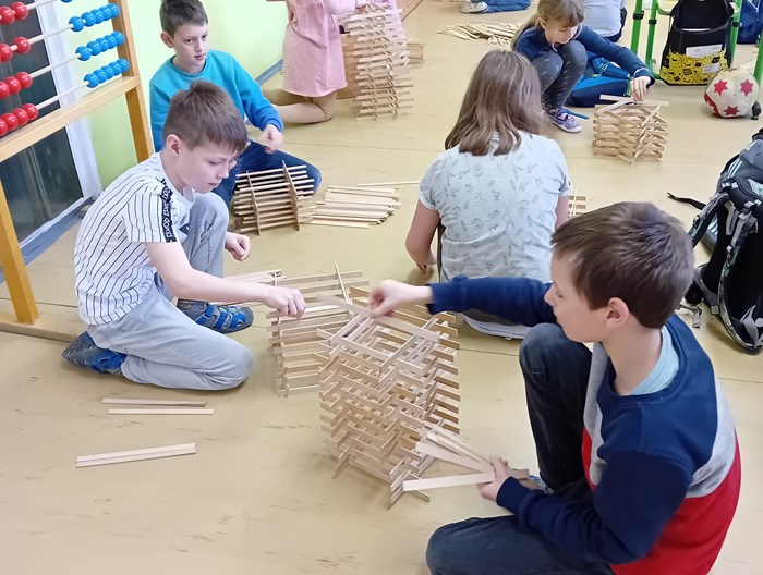 Žáci ze 3. A zažili jedno nevšední páteční dopoledne. Do třídy zavítal pan Samuel Fojtů s krabicemi plnými dřevěných lišt.