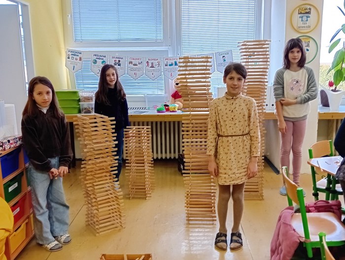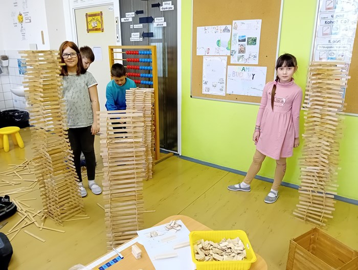 Žáci ze 3. A zažili jedno nevšední páteční dopoledne. Do třídy zavítal pan Samuel Fojtů s krabicemi plnými dřevěných lišt. Během výborně připraveného programu dětem vysvětlil, jak se zpracovává dřevo a pak již nastalo sestavování a lepení autíček - bugatek podle plánu. Ukázalo se, že jsou naši třeťáci velmi zruční, proto ještě vyrobili šperkovnici. Největší výzva však byla stavba věží a také jejich následné bourání. Děti byly z celého programu nadšené a radostně si domů odnášely vlastnoručně slepené modely.