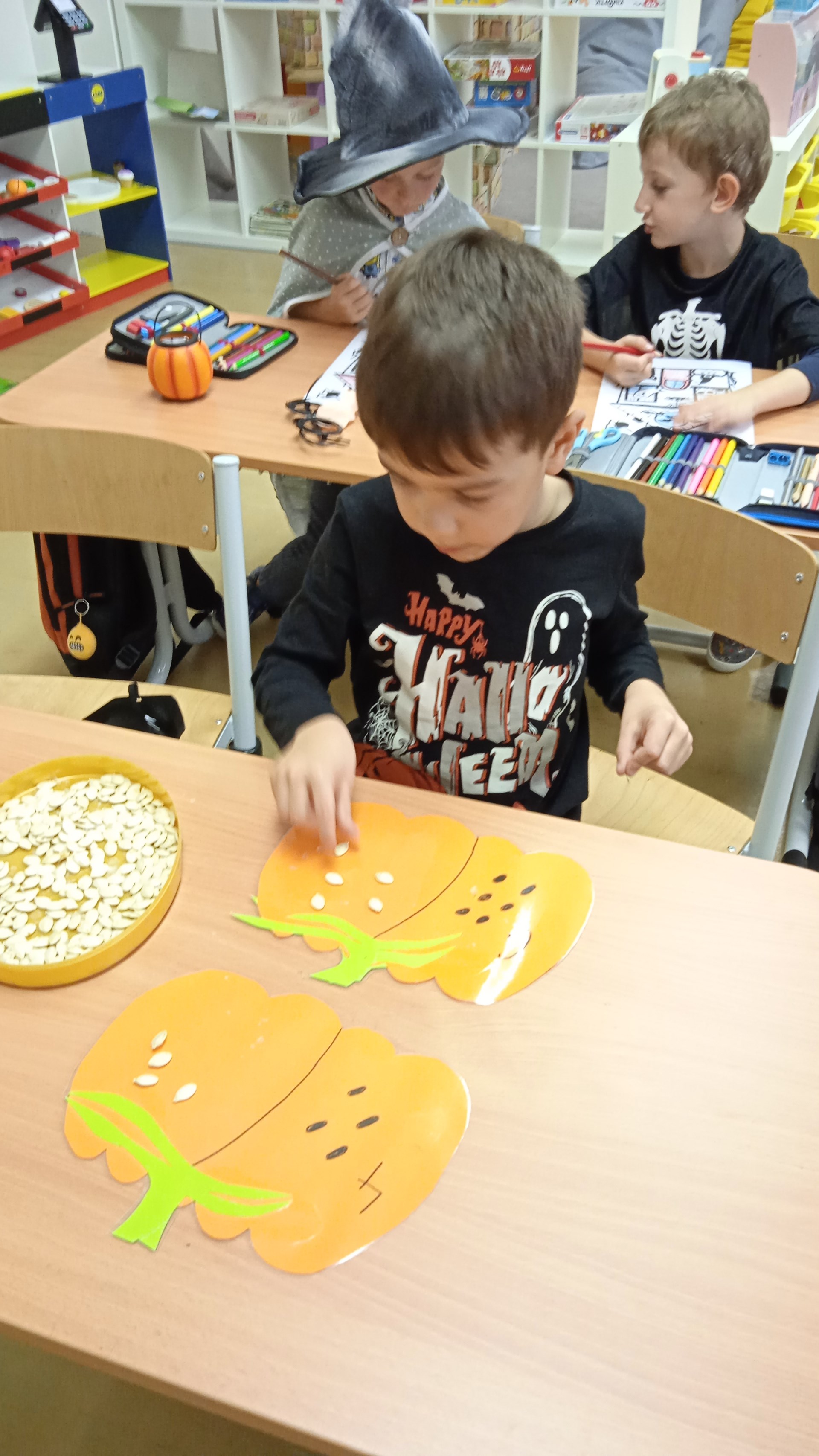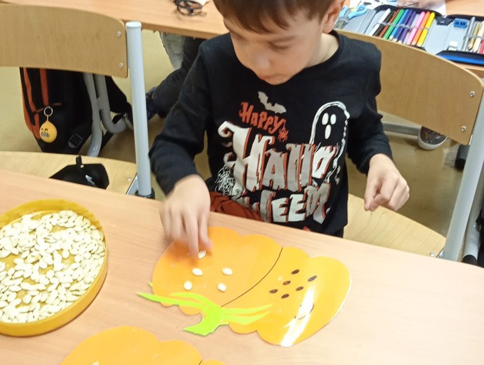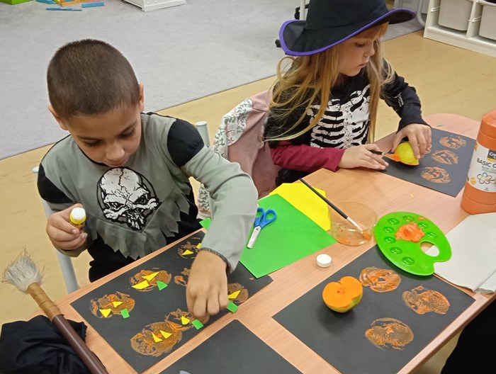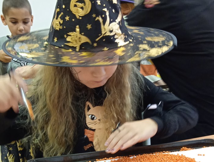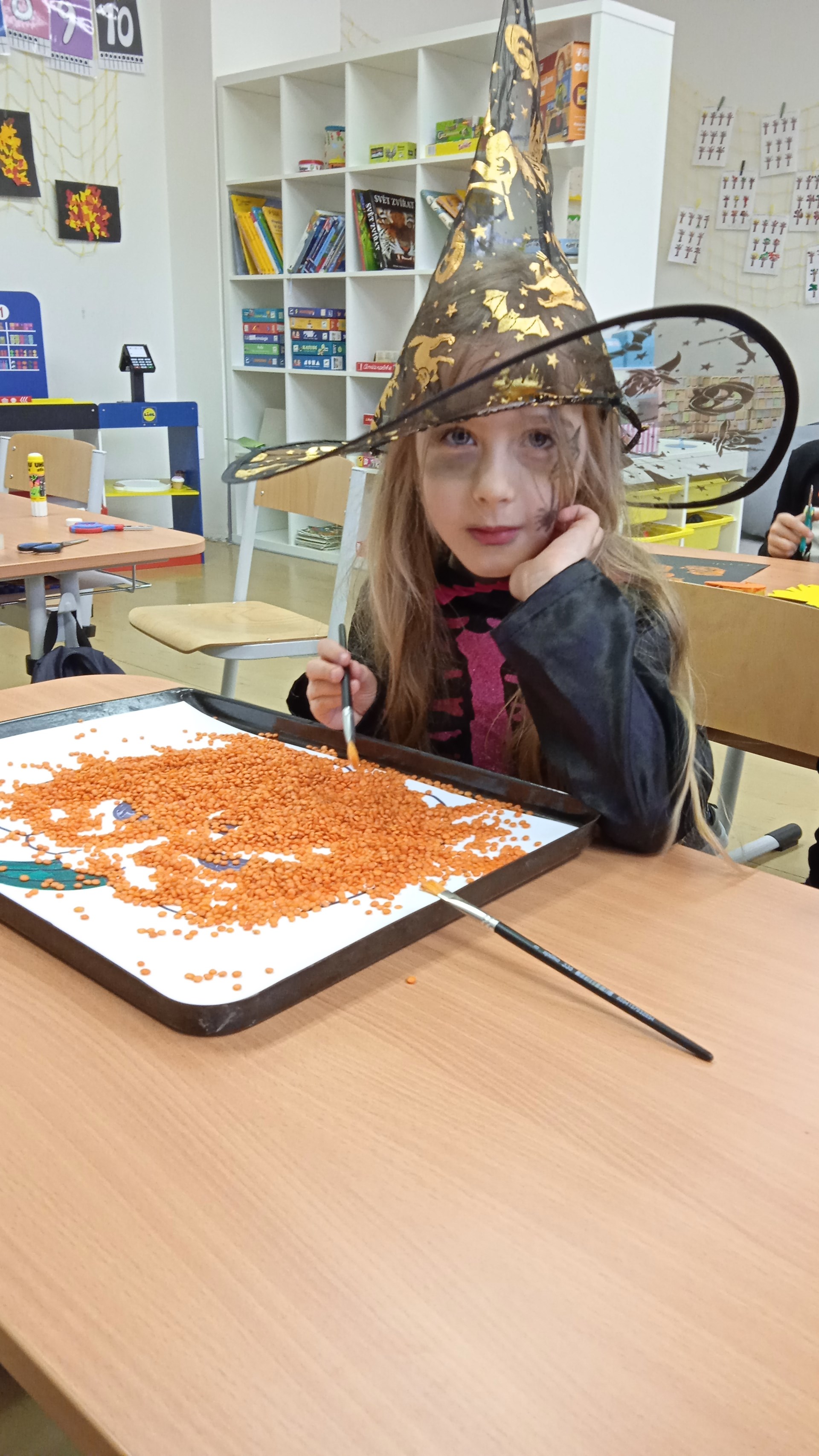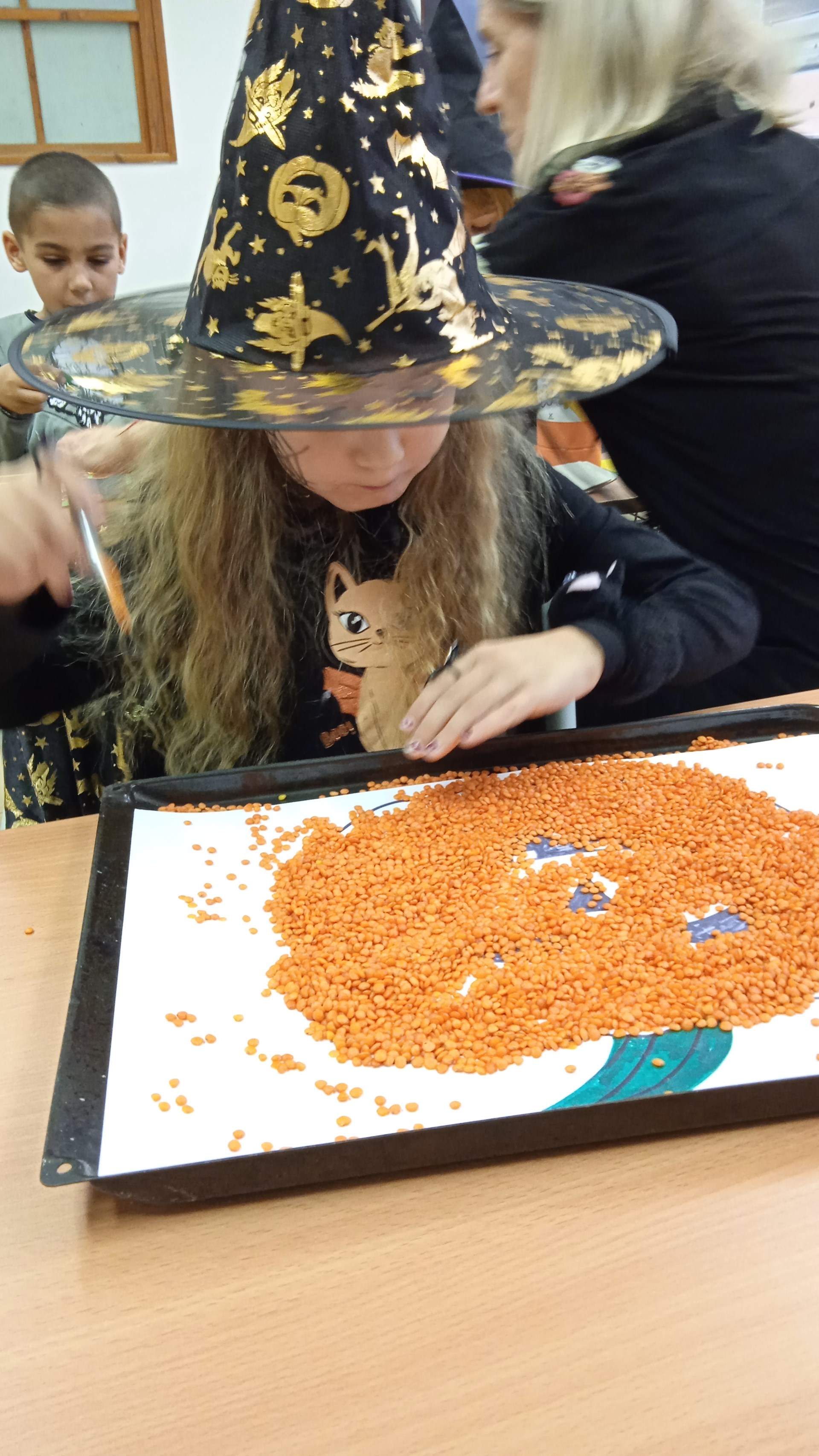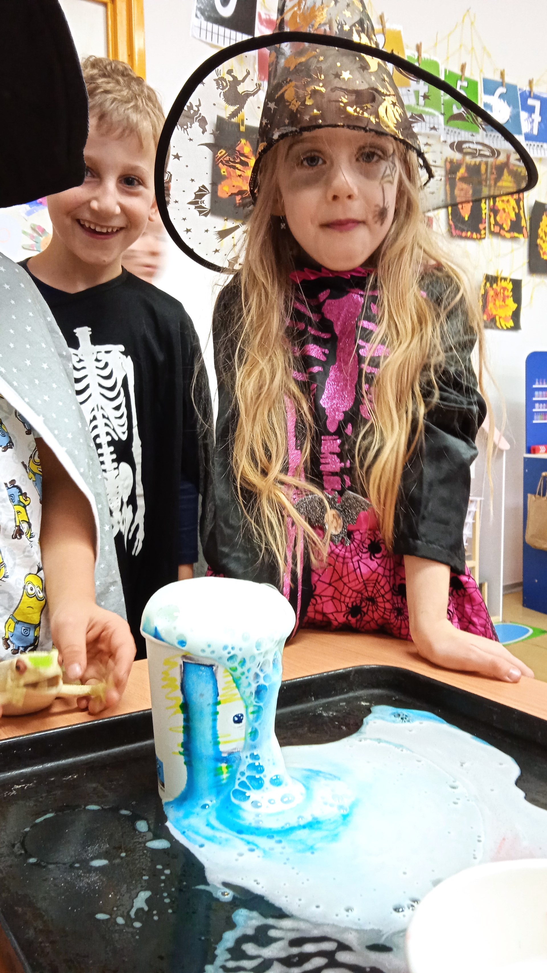 Obtiskem jsme vytvořili dýně, pomocí statické elektřiny jsme roztančili kostlivce, červenou čočkou jsme vyplnili obrázky, uvařili jsme barevné čarodějnické lektvary a mnoho dalšího.