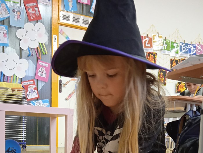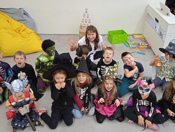 V úterní pochmurné ráno se do přípravné třídy začaly scházet různé podivné bytosti. Kostlivci s batohy na zádech, čarodějnice na koštěti, hrůzostrašný Hulk, duchové nesoucí si svačinu v pytlíku… až jsem nevěřila svým očím. Když mě strašidla ujistila, že jsou přátelská a nemusím se jich bát, mohli jsme se pustit do plnění úkolů v rámci projektového dne.