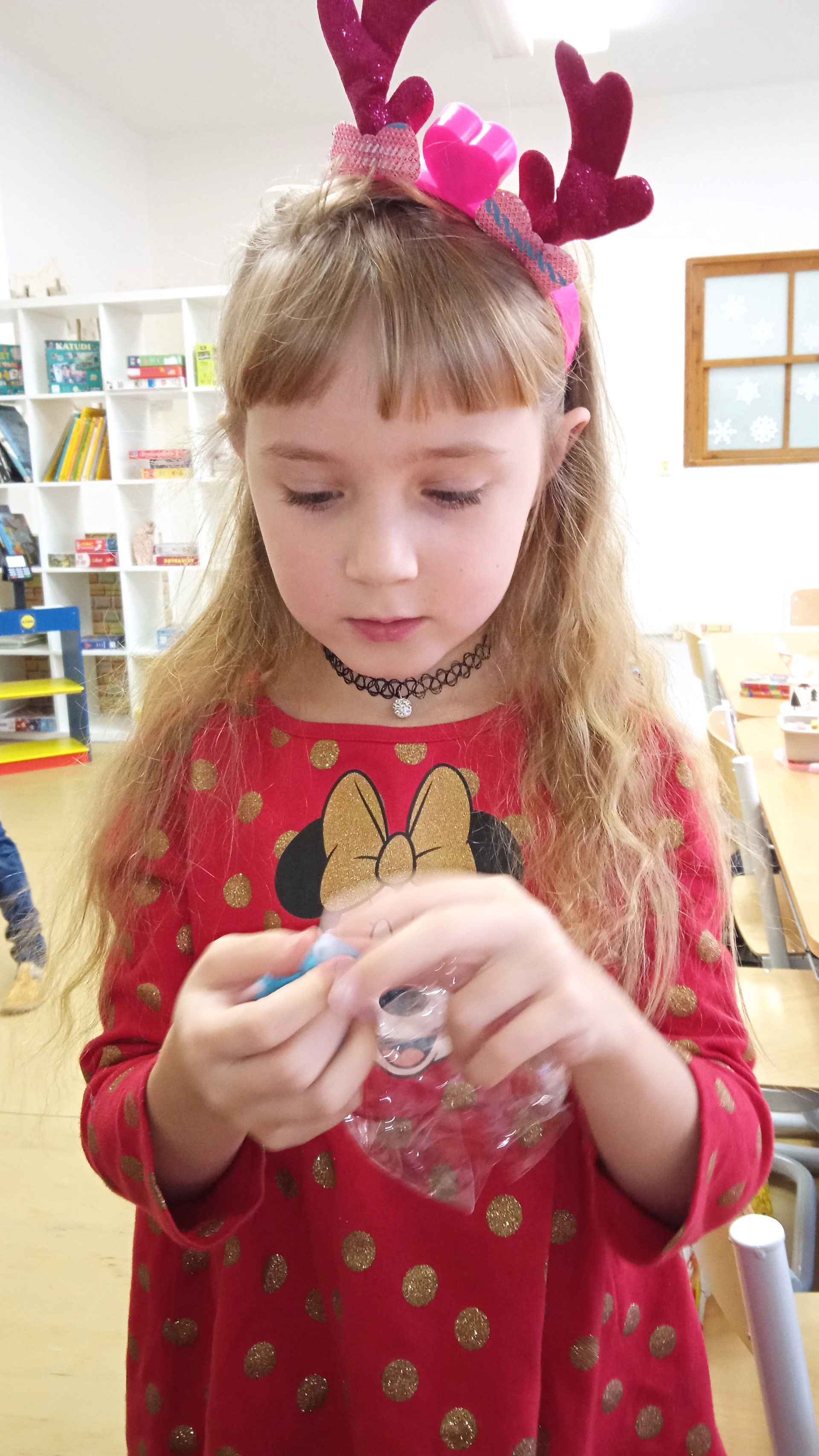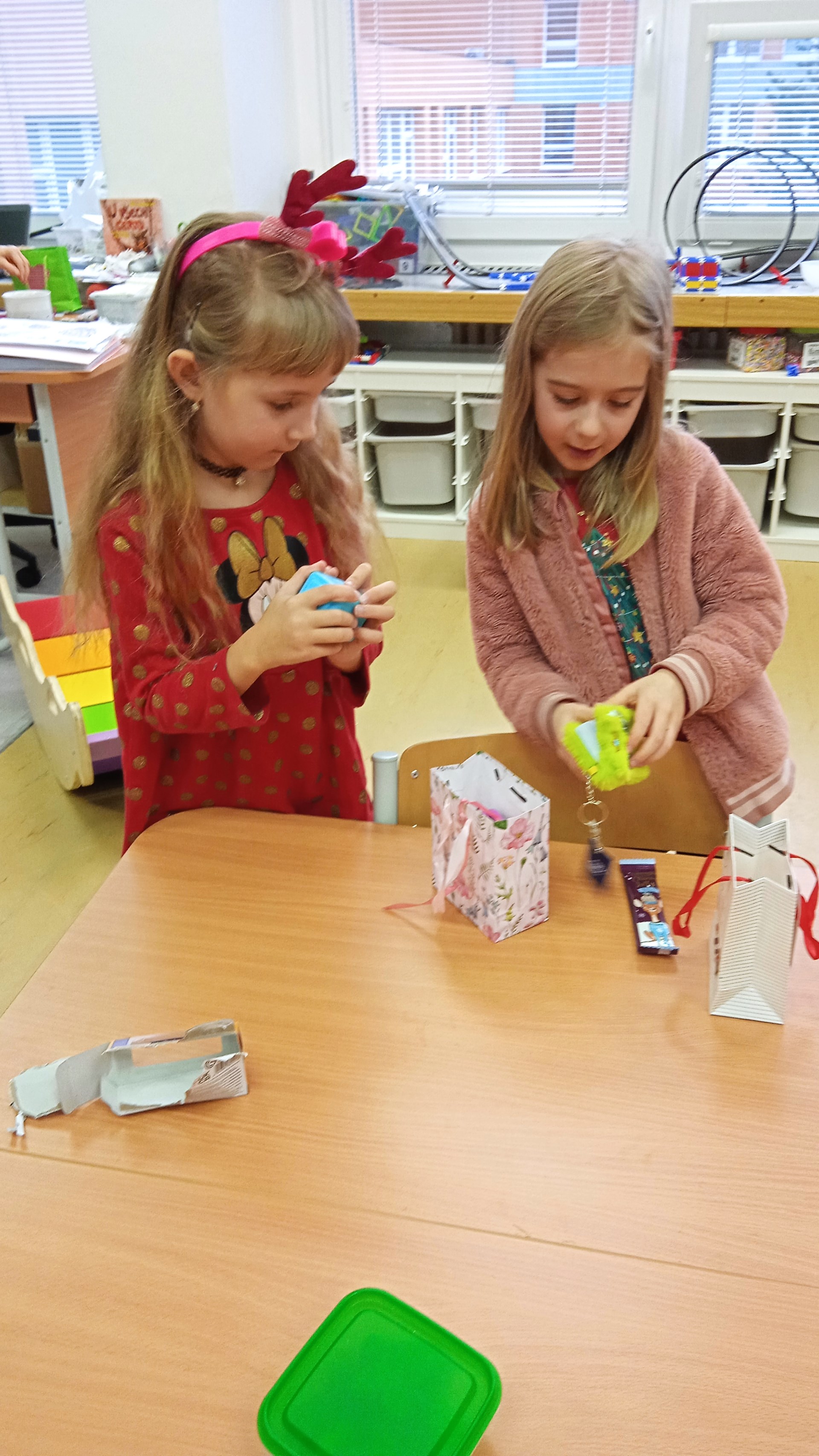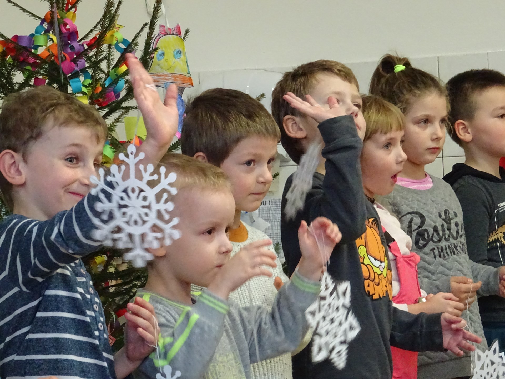 Prosinec v přípravné třídě byl opravdu pestrý. Na začátku měsíce nás navštívil Mikuláš se svou družinou, společně jsme si zazpívali několik písní a děti byly obdarovány drobnou sladkostí. Čert si naštěstí nikoho neodnesl, všechny děti slíbily, že se polepší. Čekání na Ježíška jsme si zkrátili návštěvou kina, kde jsme prožili úžasné dobrodružství s Tlapkovou patrolou. V kulturním domě jsme si zase vyslechli koncert nádherných vánočních písní v provedení sborů kopřivnických základních škol a díky tomu jsme domů odcházeli se sváteční náladou. Poslední prosincový týden nás v odpoledních hodinách navštívili rodiče a společně s dětmi si vytvořili krásný betlém. Děti měly pro maminky a tatínky připraveno drobné překvapení v podobě přednesu písní Vánoce přicházejí a Vánoce na míru. Nálada byla skvělá a loučili jsme se neradi. Poslední školní den před Vánoci se třídou rozezněly koledy, linula se vůně vánočního cukroví a živého nazdobeného stromečku. Kamarádi si navzájem předali dárky a radost byla slyšet snad až na chodbu.
