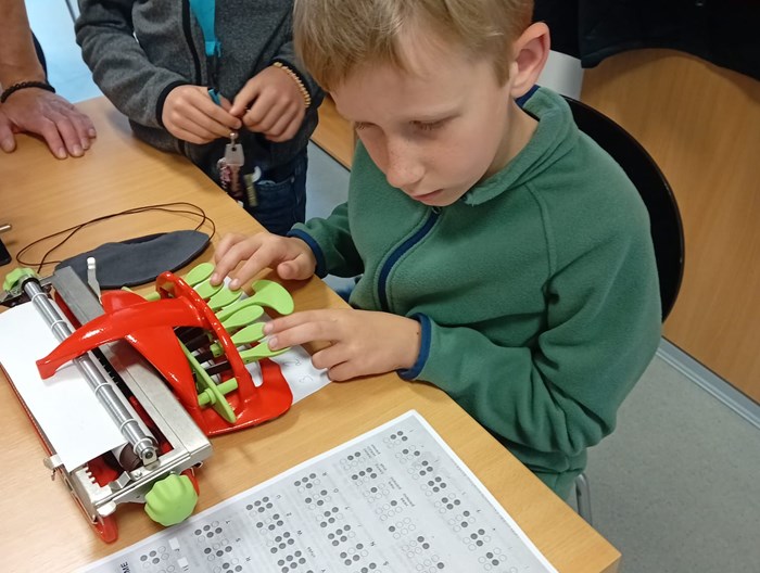 Beseda byla velice naučná a děti si odnesly zajímavý zážitek a své jméno napsané Braillovým písmem.